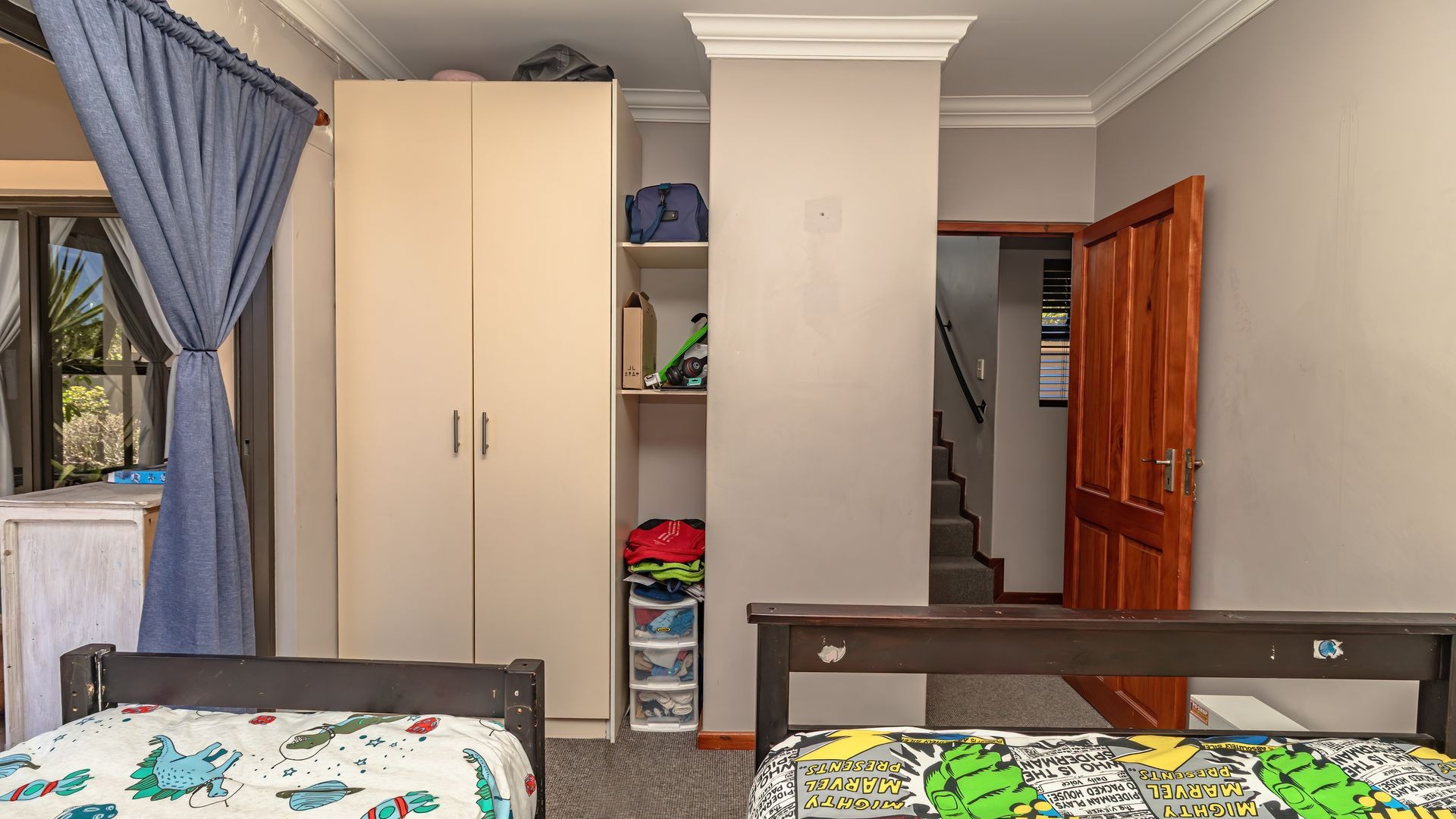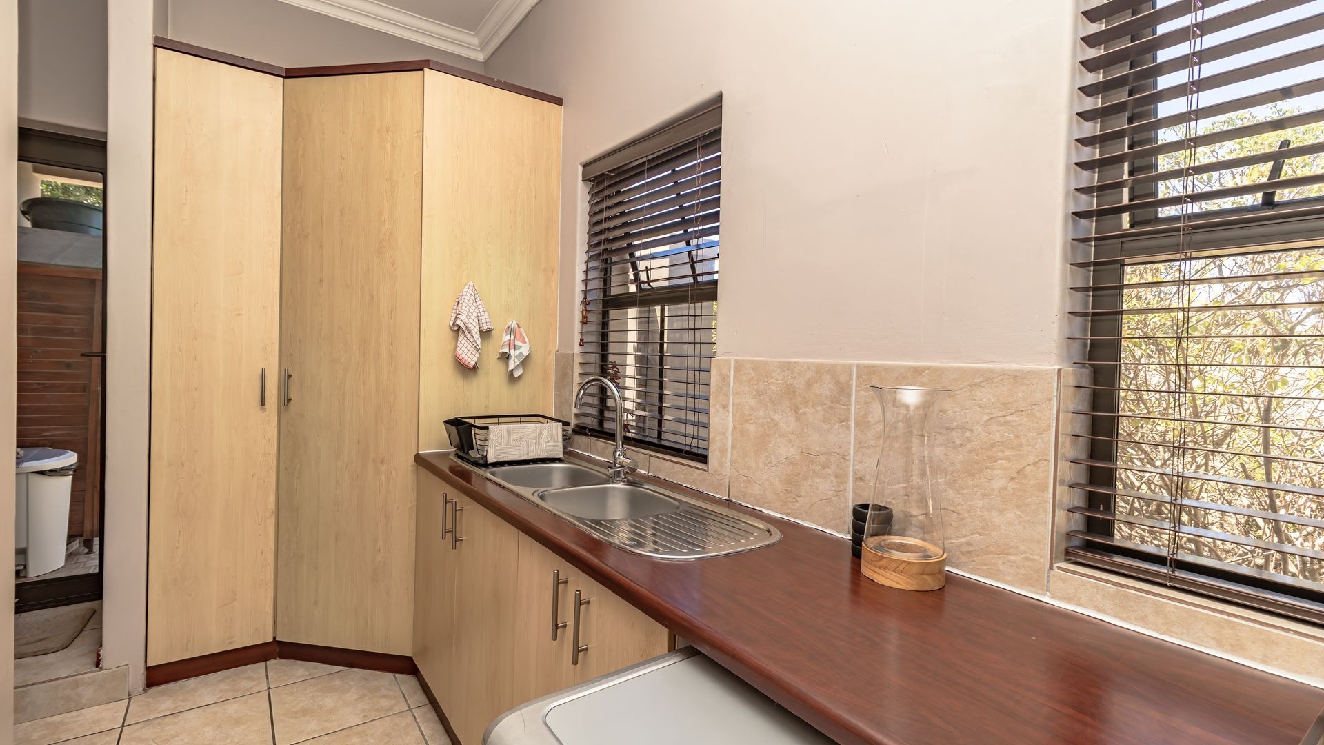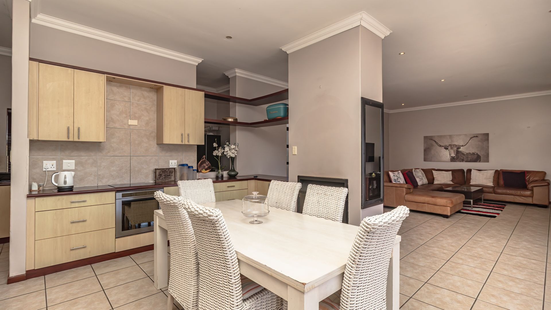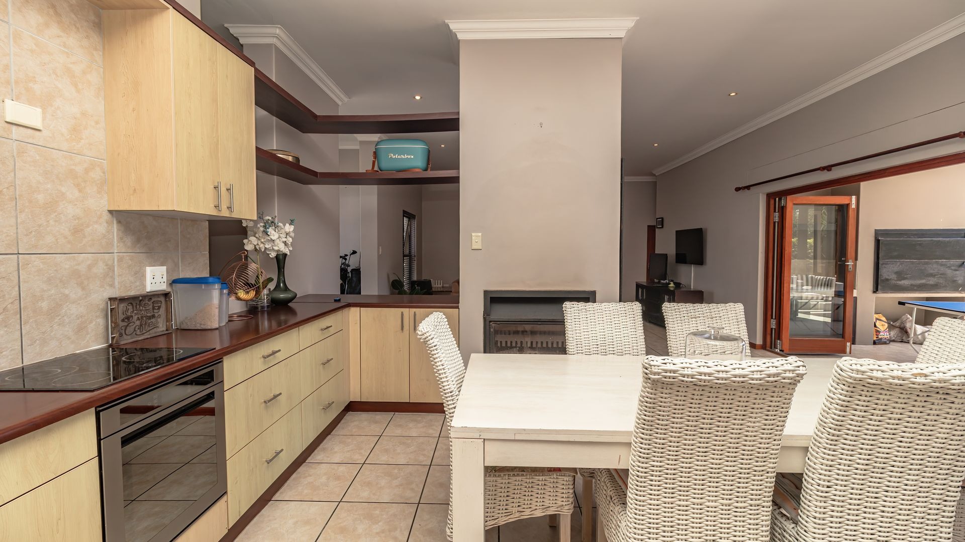 If you’re searching for a secure haven in a beautiful estate with 24-hour access control, this property is the perfect fit. Solidly built and full of potential, it offers timeless features such as wooden doors and stacker doors that open onto a sunny, north-facing entertainment area. Here you’ll find a spacious patio with a built-in braai, flowing seamlessly into a generous garden and sparkling pool—ideal for family gatherings and relaxed weekends.