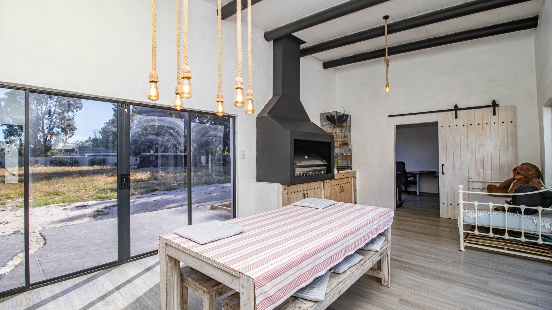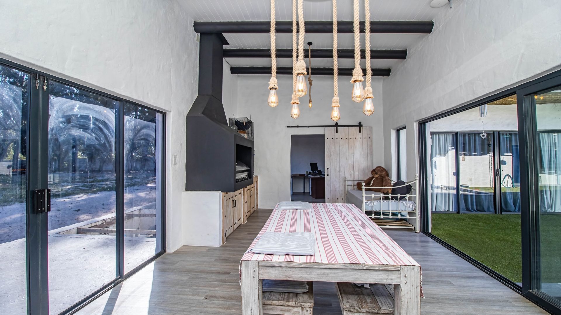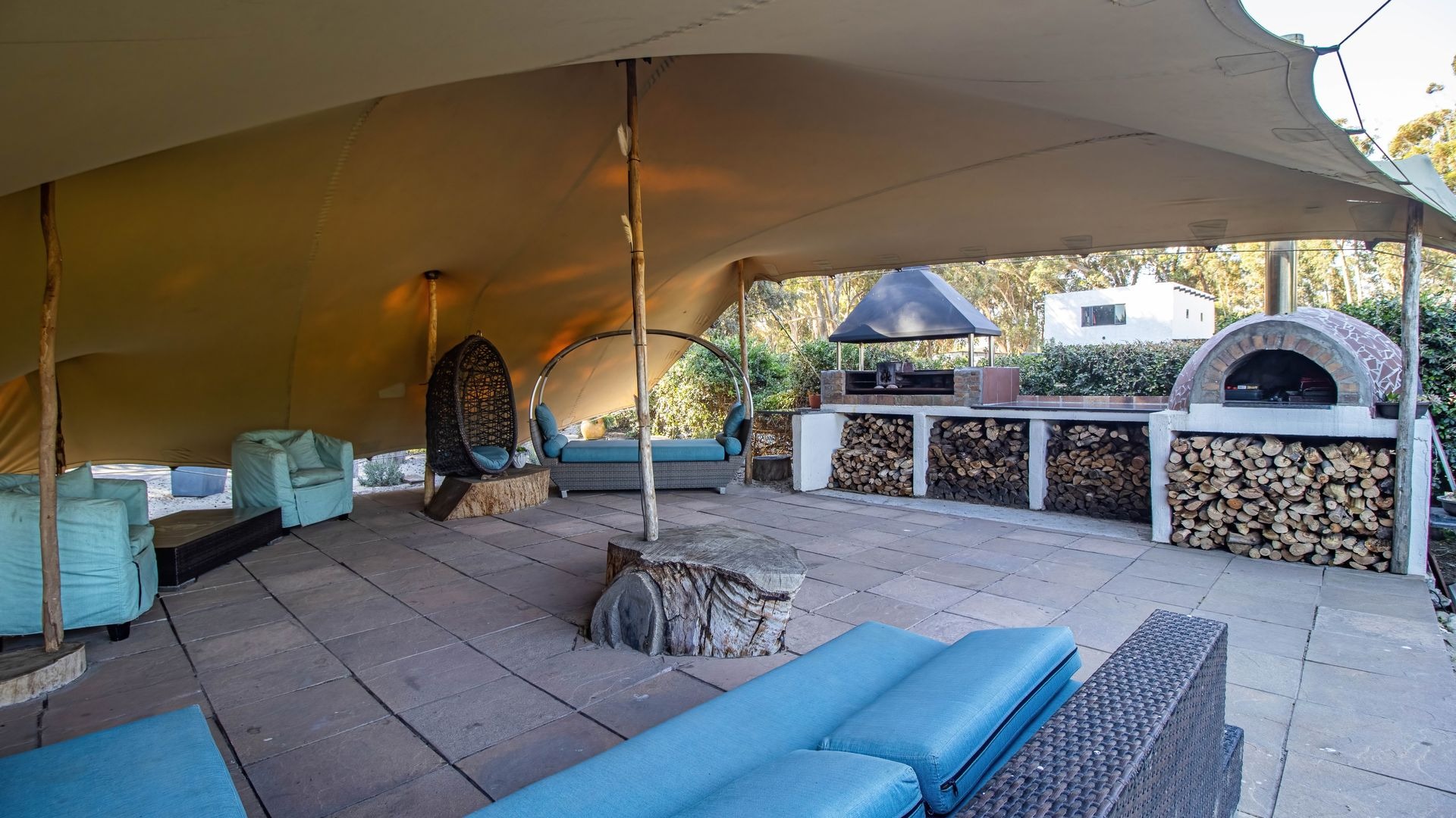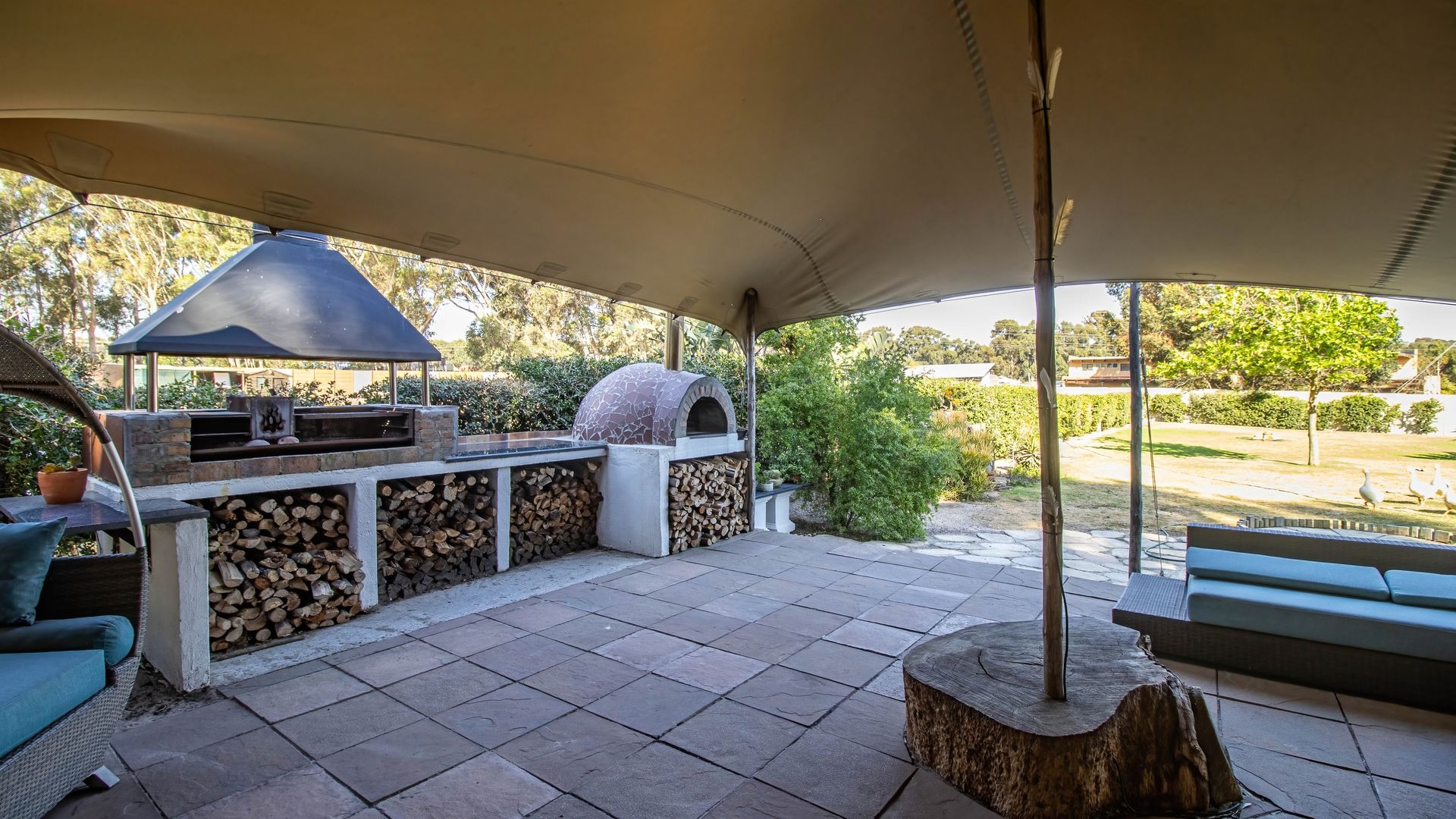 The outdoor area, includes a Fixed Bedouin tent and a built in braai and pizza oven. Great for the outdoor entertainment! There too is a indoor area which is ideal for the windy days if you just want to lay at the pool and relax. This is ideal as it is very private and too has a koi pond to add to the mood. The inside braai room is large and ideal as a games room as well.