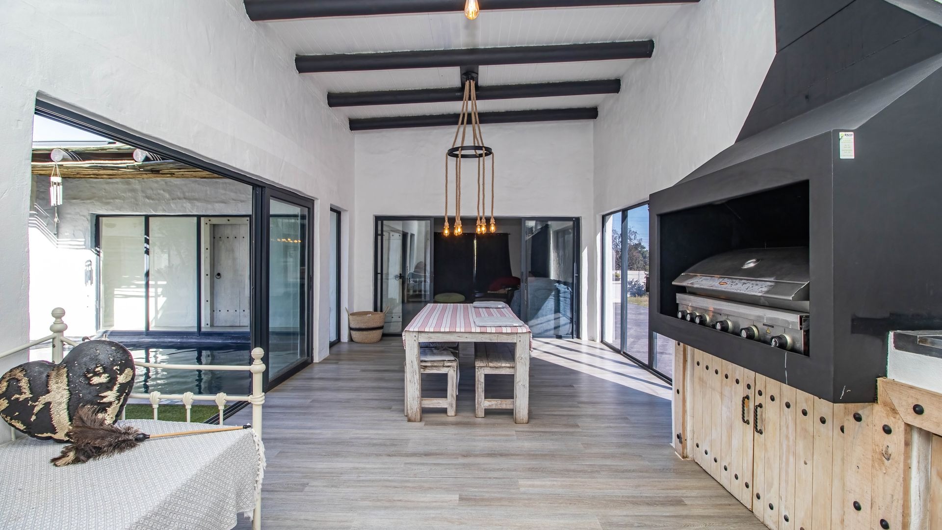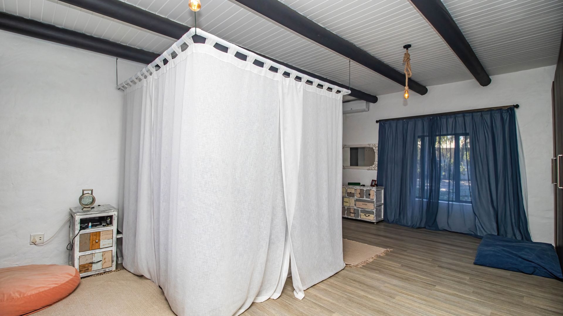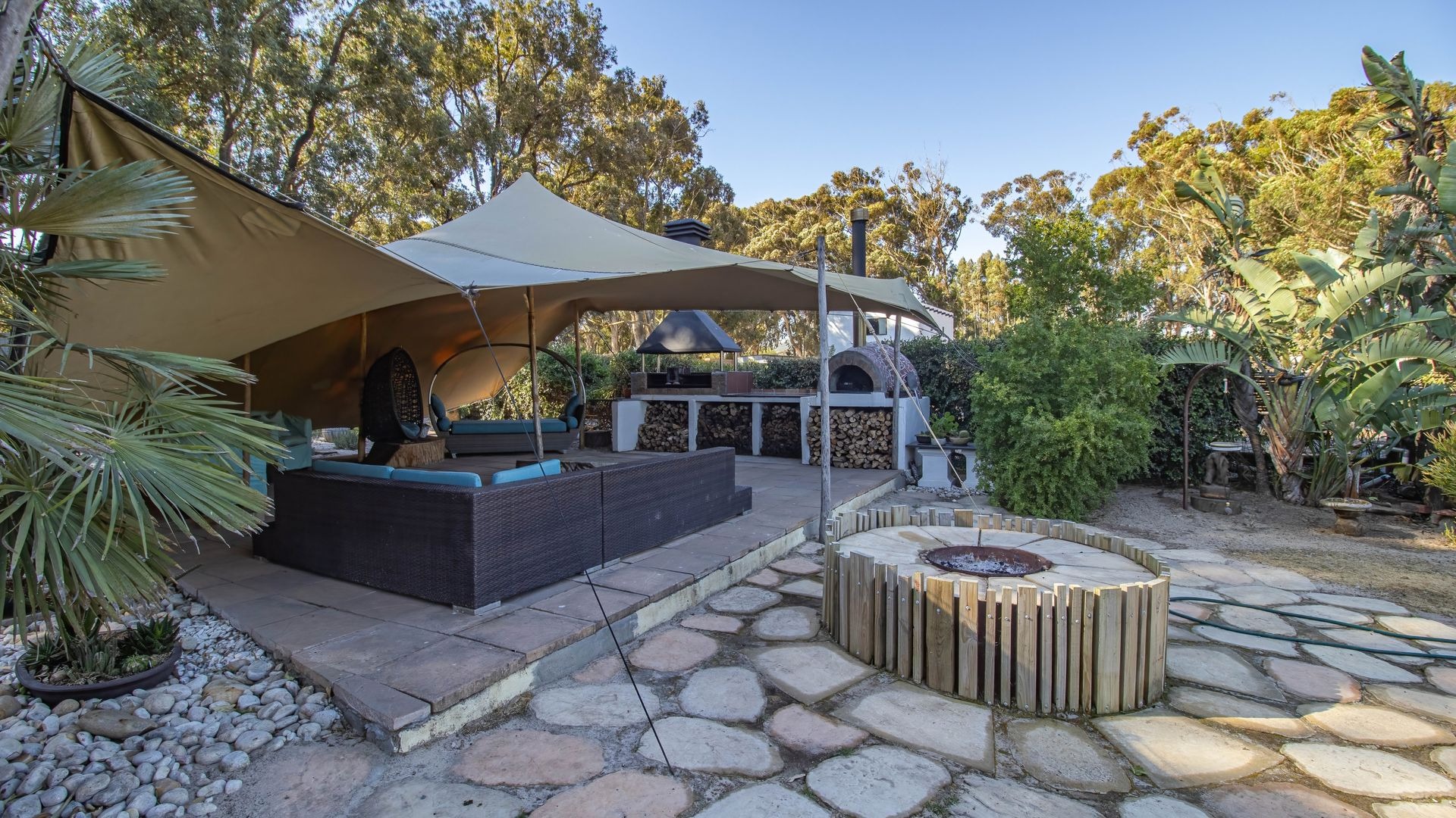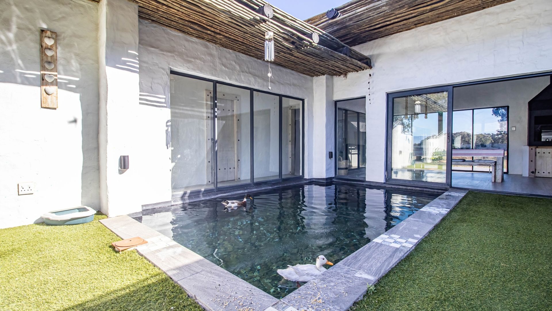 The outdoor area, includes a Fixed Bedouin tent and a built in braai and pizza oven. Great for the outdoor entertainment! There too is a indoor area which is ideal for the windy days if you just want to lay at the pool and relax. This is ideal as it is very private and too has a koi pond to add to the mood. The inside braai room is large and ideal as a games room as well.