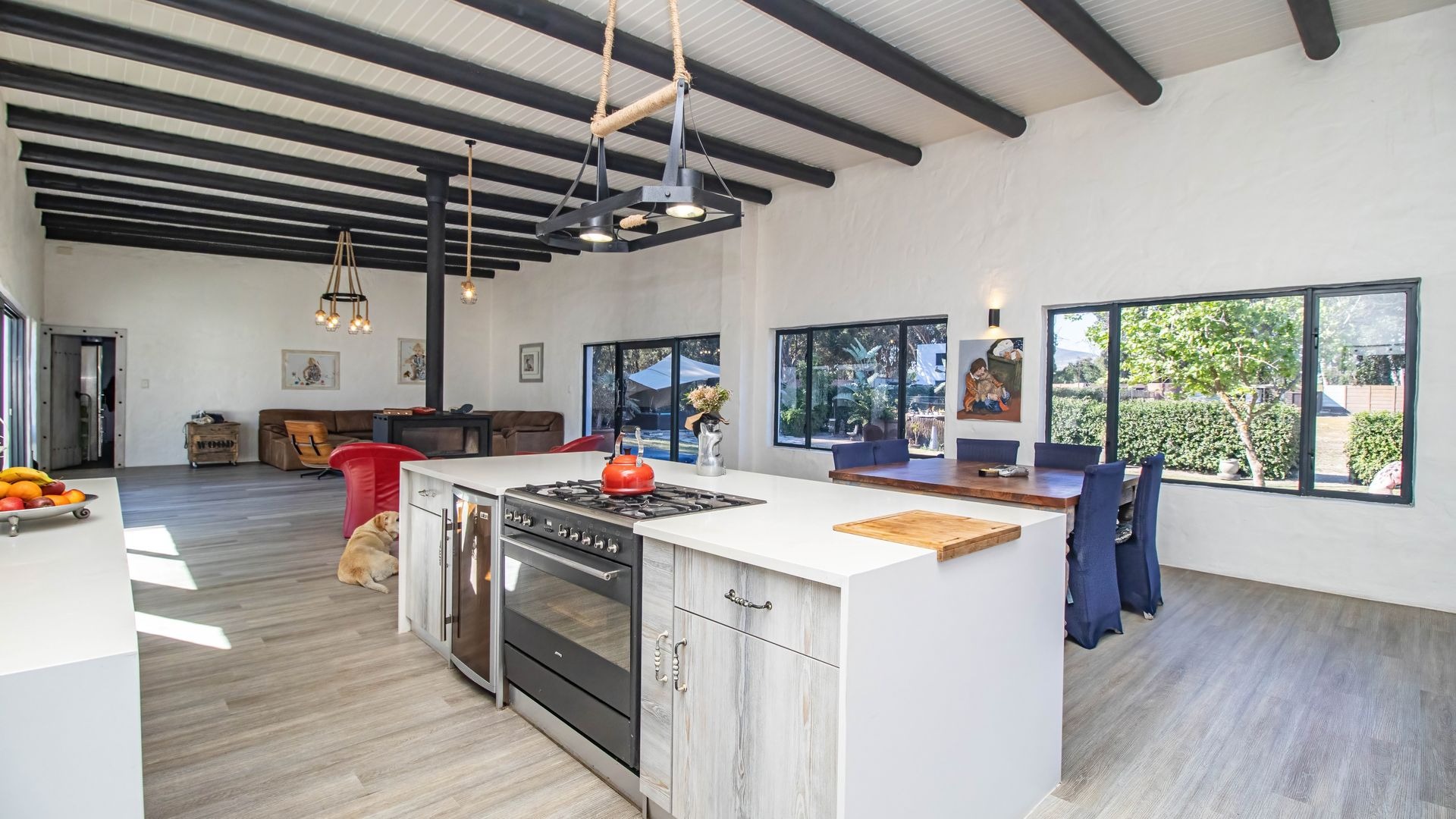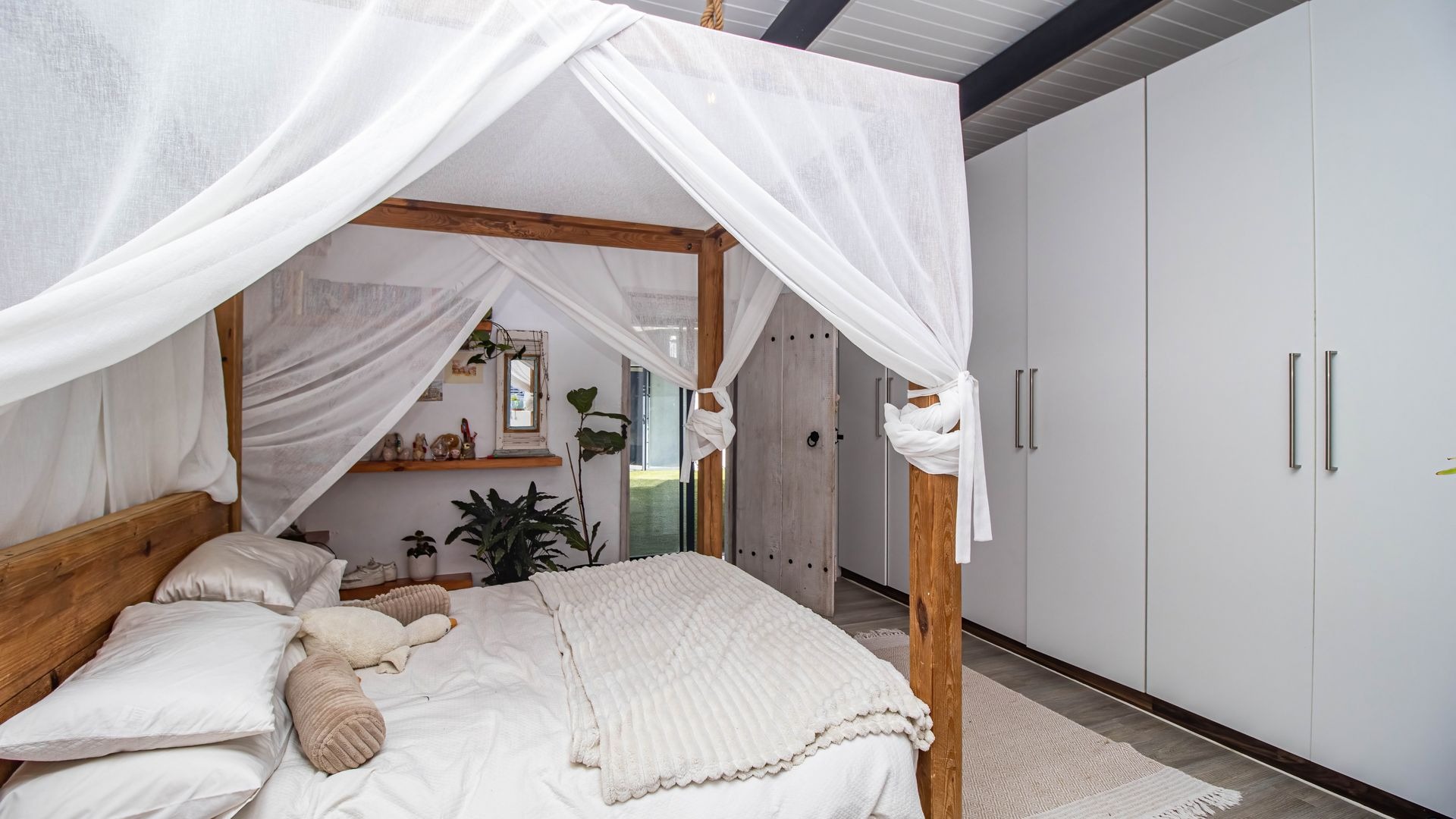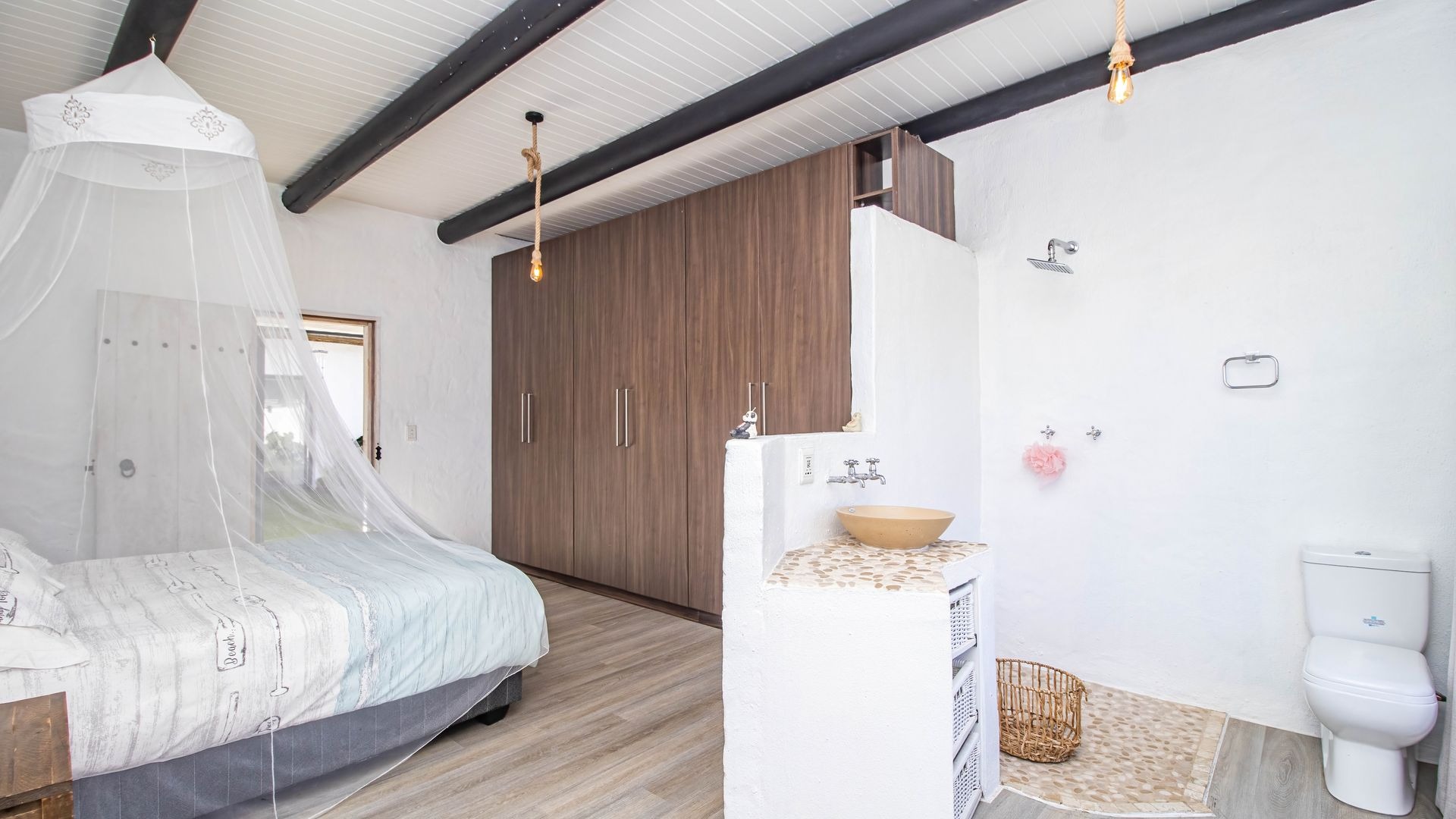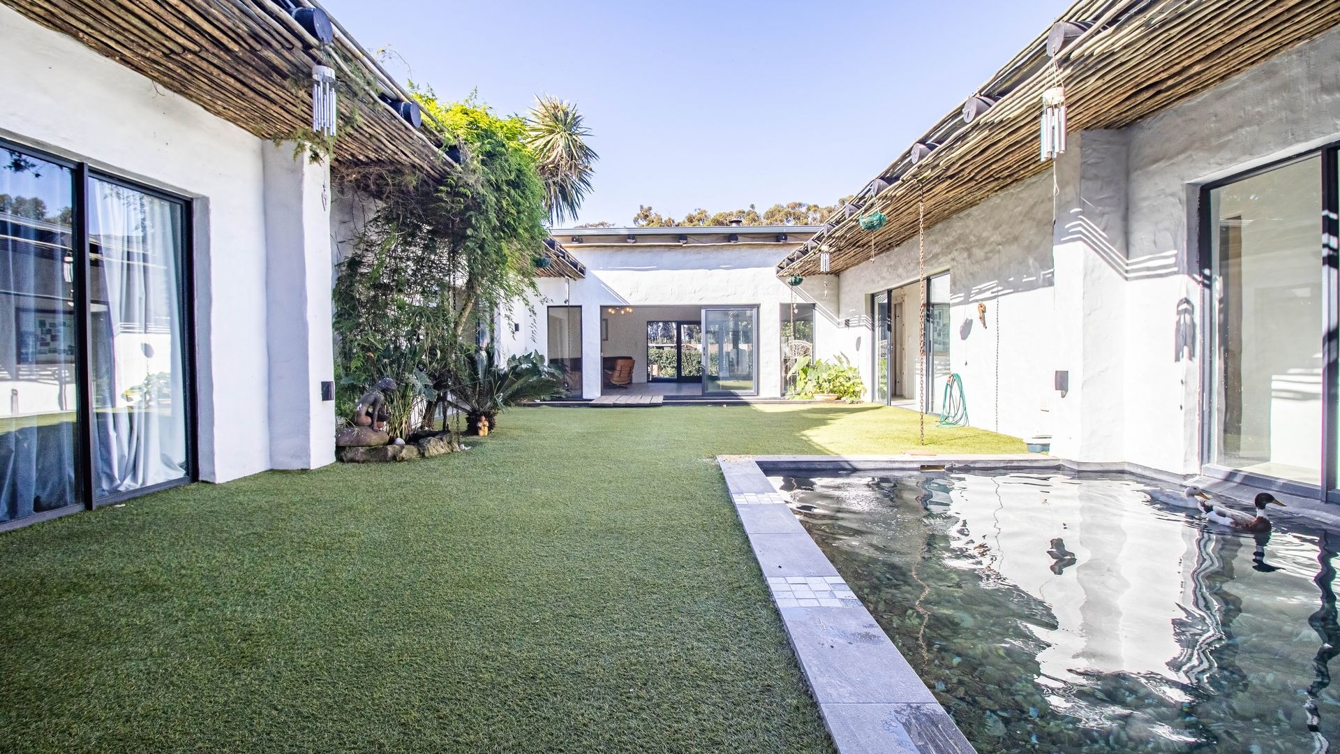 The outdoor area, includes a Fixed Bedouin tent and a built in braai and pizza oven. Great for the outdoor entertainment! There too is a indoor area which is ideal for the windy days if you just want to lay at the pool and relax. This is ideal as it is very private and too has a koi pond to add to the mood. The inside braai room is large and ideal as a games room as well.