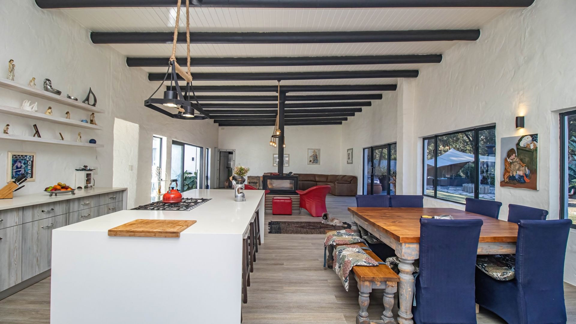There are 2 lounges and 2 dining areas. Ideal for the larger family gatherings or for the small at home get togethers. The living areas are open plan and offer a lot of light, making this area a really great one! For The cold winter nights you can light the wood burning fireplace which heats up the whole area.
