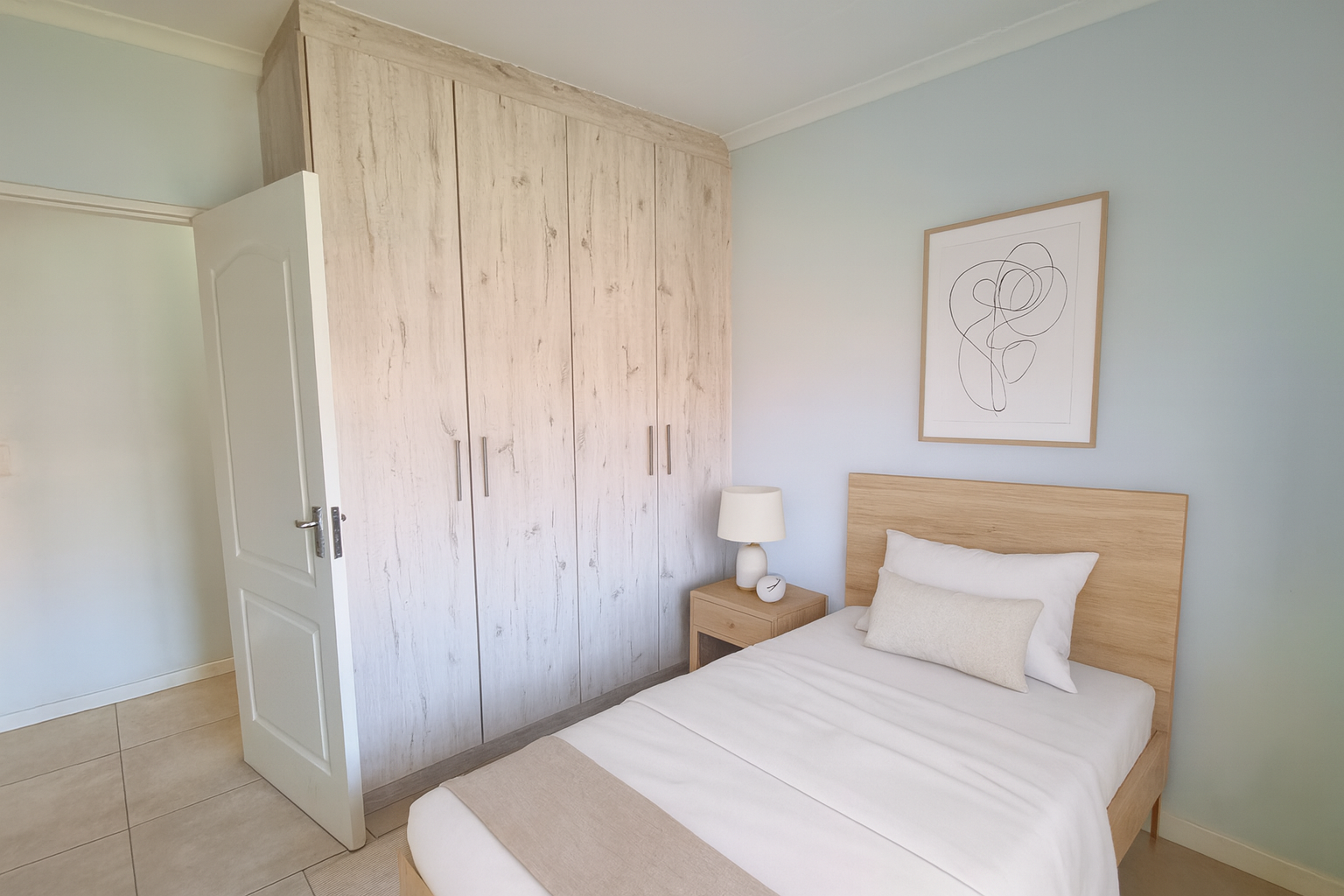 The private balcony boasts a built-in braai, perfect for outdoor entertaining and enjoying views of the communal garden. A dedicated garage and parking bay provides secure parking. With fibre connectivity and a modern design, this home offers easy suburban living.