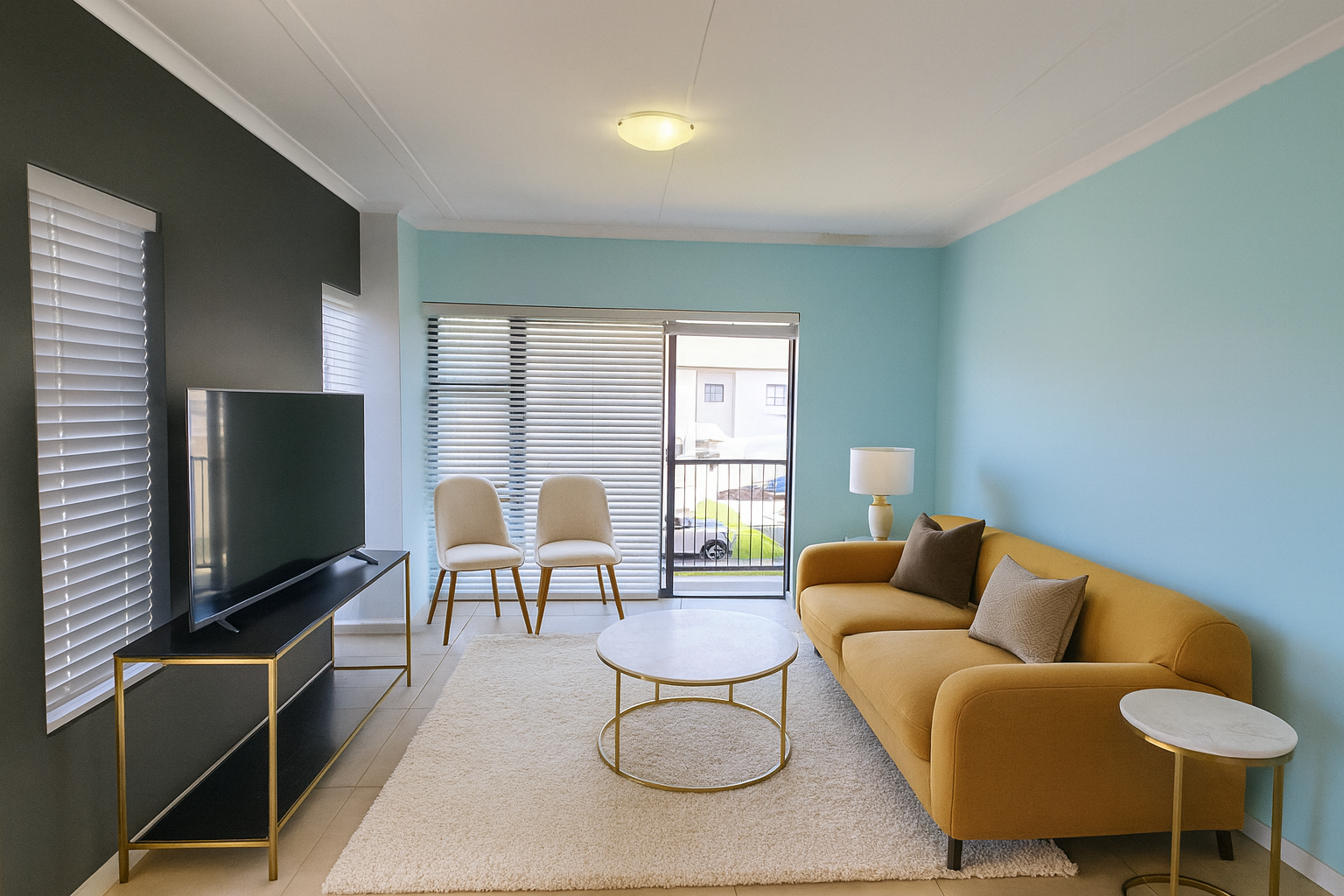 The private balcony boasts a built-in braai, perfect for outdoor entertaining and enjoying views of the communal garden. A dedicated garage and parking bay provides secure parking. With fibre connectivity and a modern design, this home offers easy suburban living.