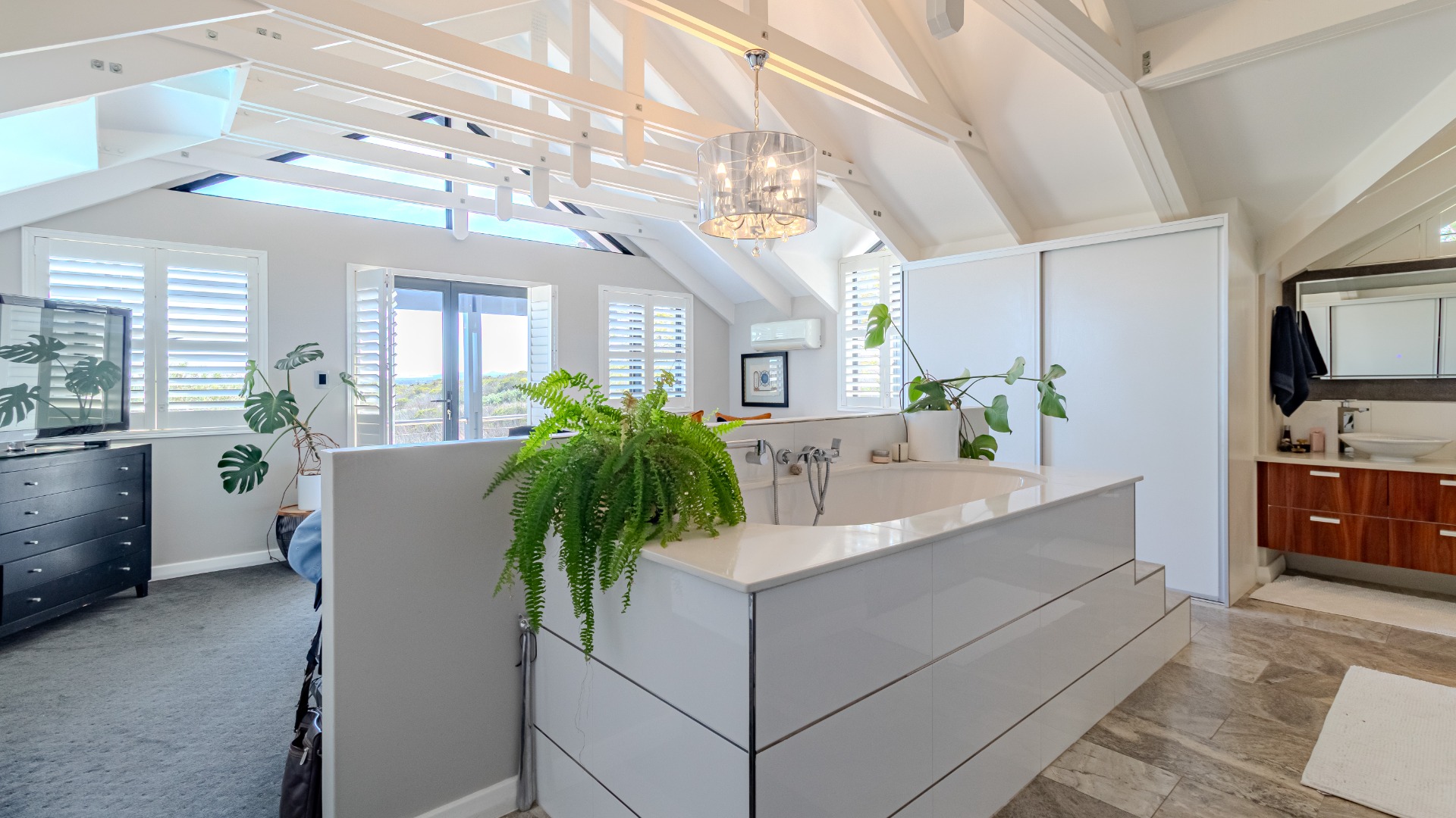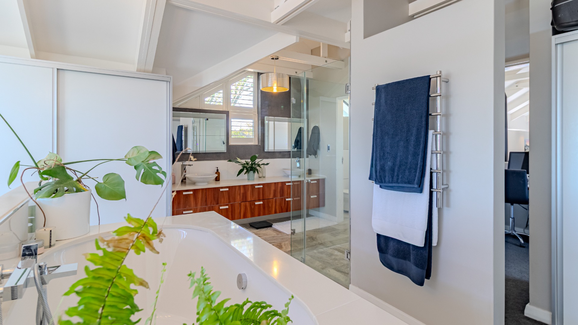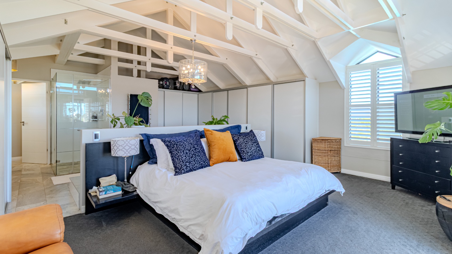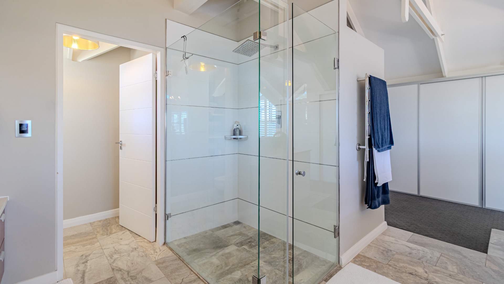There are 4 bedrooms in this home. All beautifully finished, from the lighting to the cupboard space, American shutters and more! The main bedroom is truly lovely. It has exposed trusses and is large and spacious with its own private balcony and large full en-suite bathroom. Heated towel rails and more. The other bedrooms are all en -suite too.