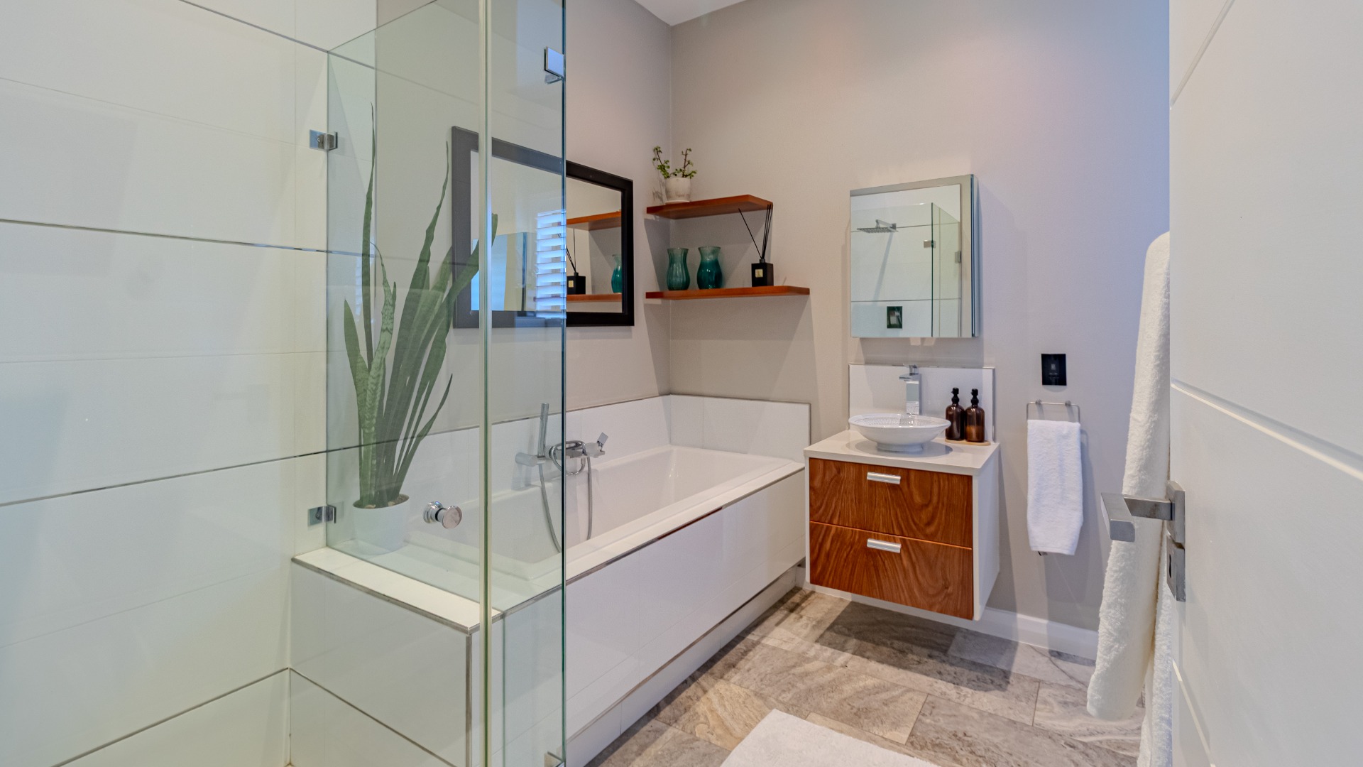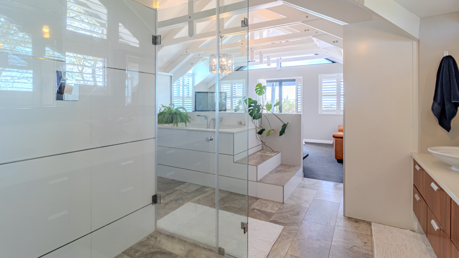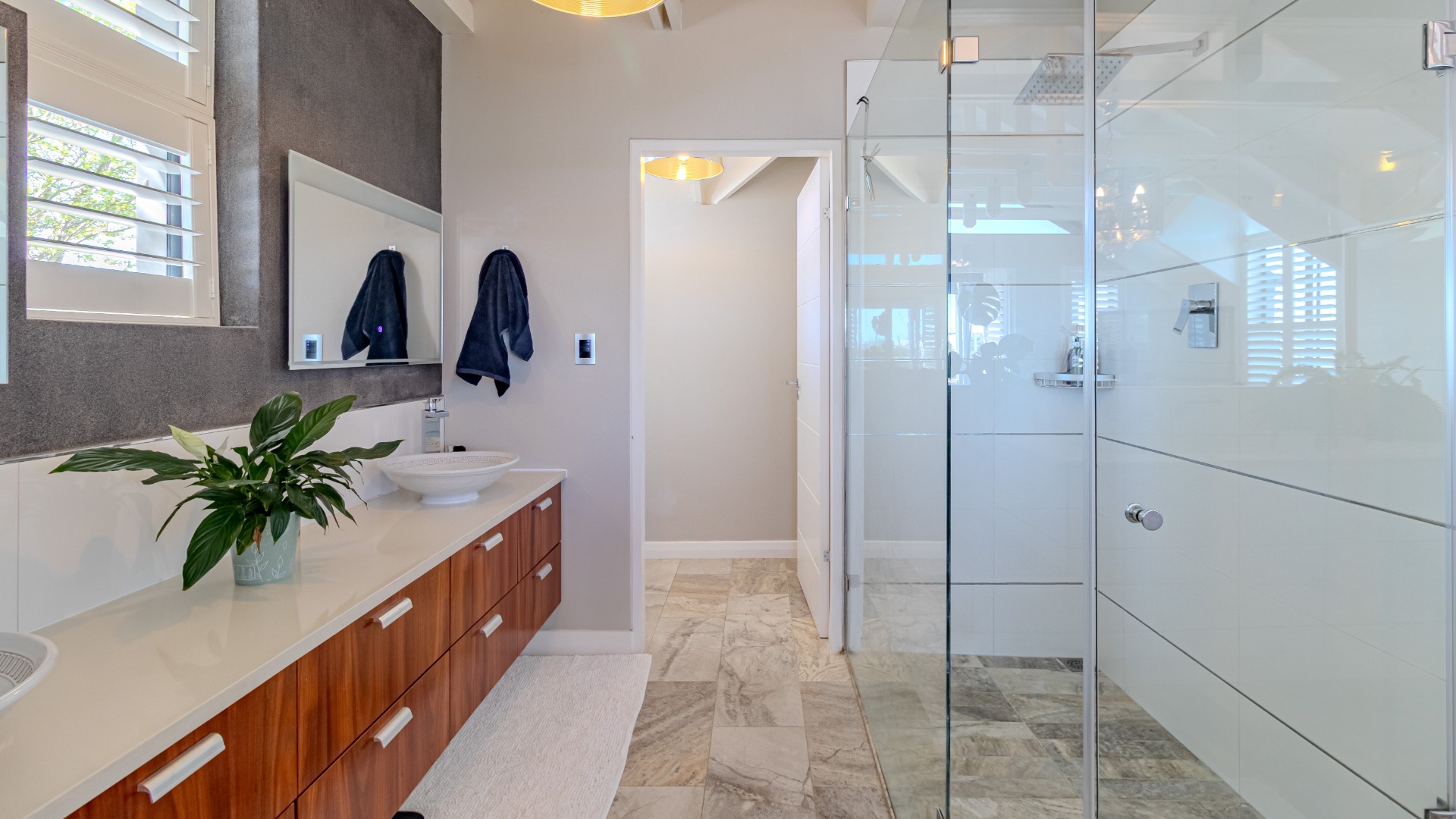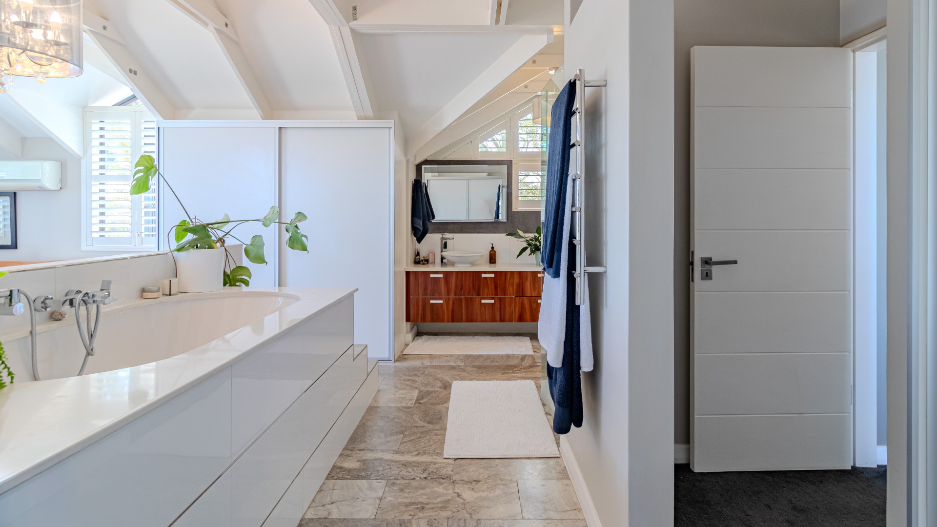There are 4 bedrooms in this home. All beautifully finished, from the lighting to the cupboard space, American shutters and more! The main bedroom is truly lovely. It has exposed trusses and is large and spacious with its own private balcony and large full en-suite bathroom. Heated towel rails and more. The other bedrooms are all en -suite too.