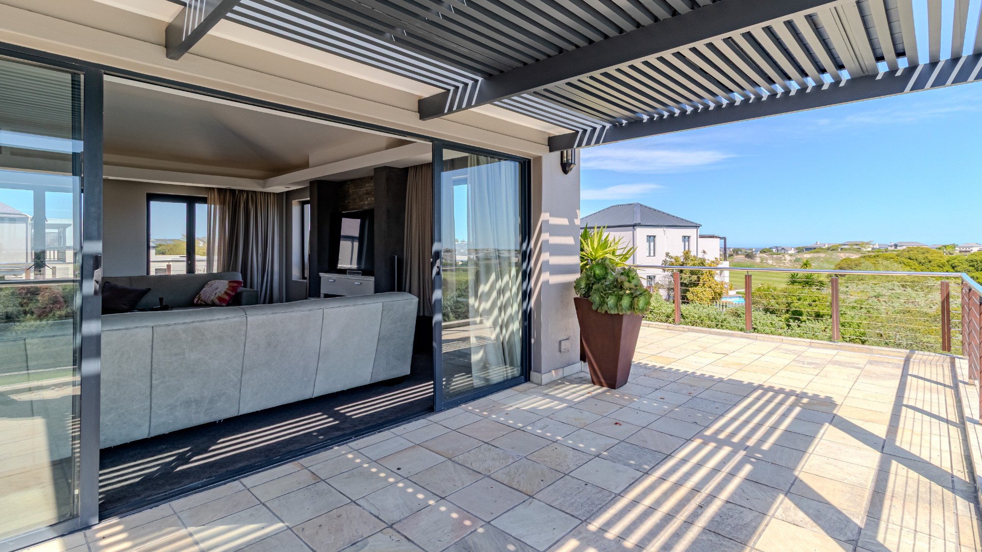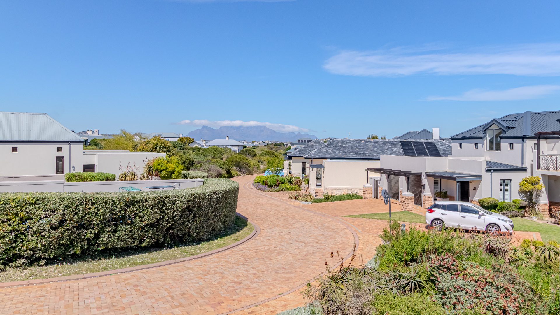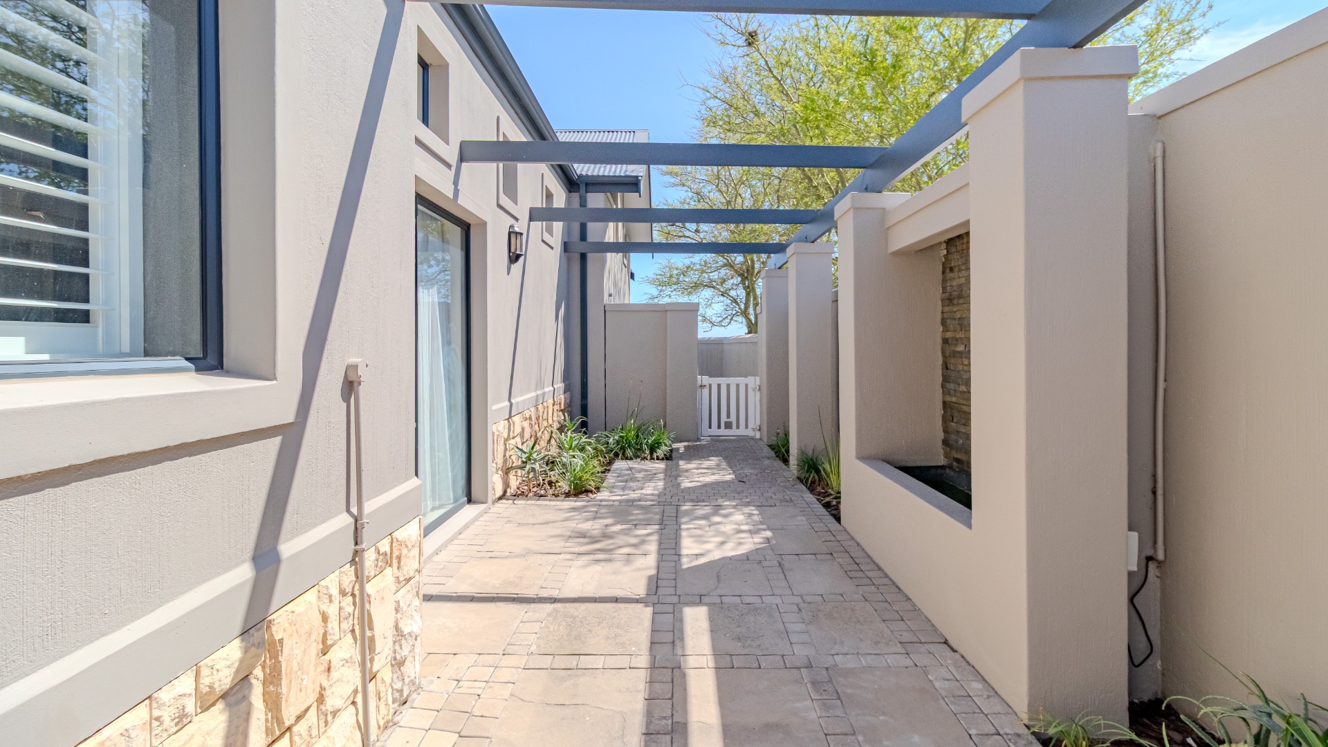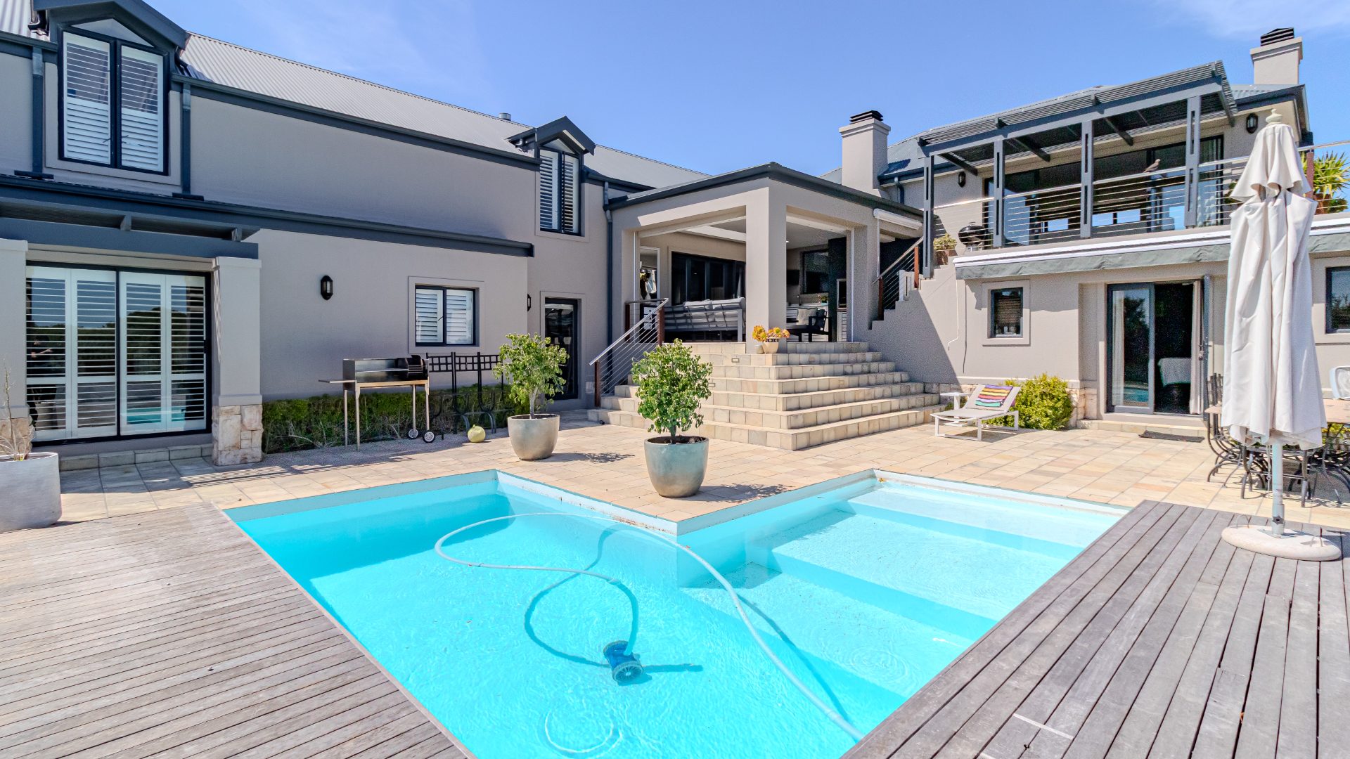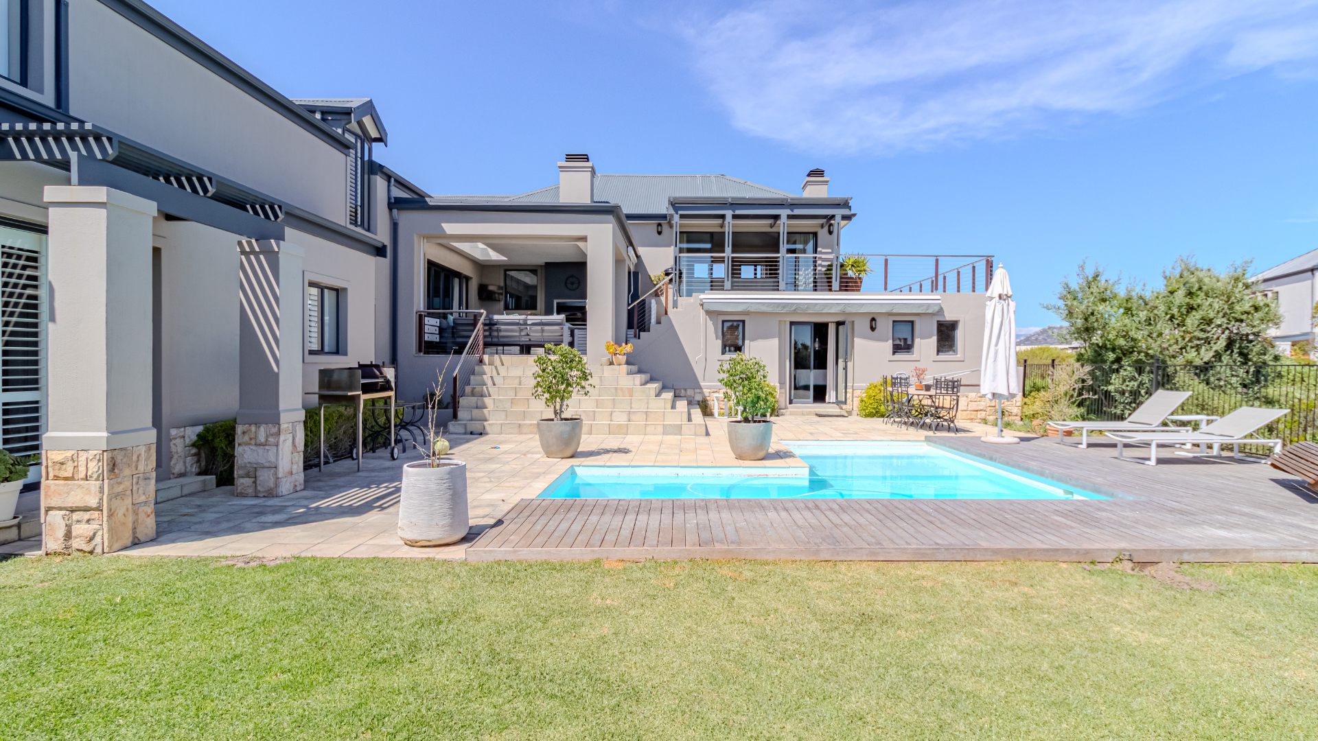 The dining and lounge area flow well out to the undercover patio with built in braai and drop down blinds. It has lovely views that sweep across the Estate. You have more than 180 degree views. Whilst enjoying the outdoor space, you overlook the pool and garden that are well maintained.