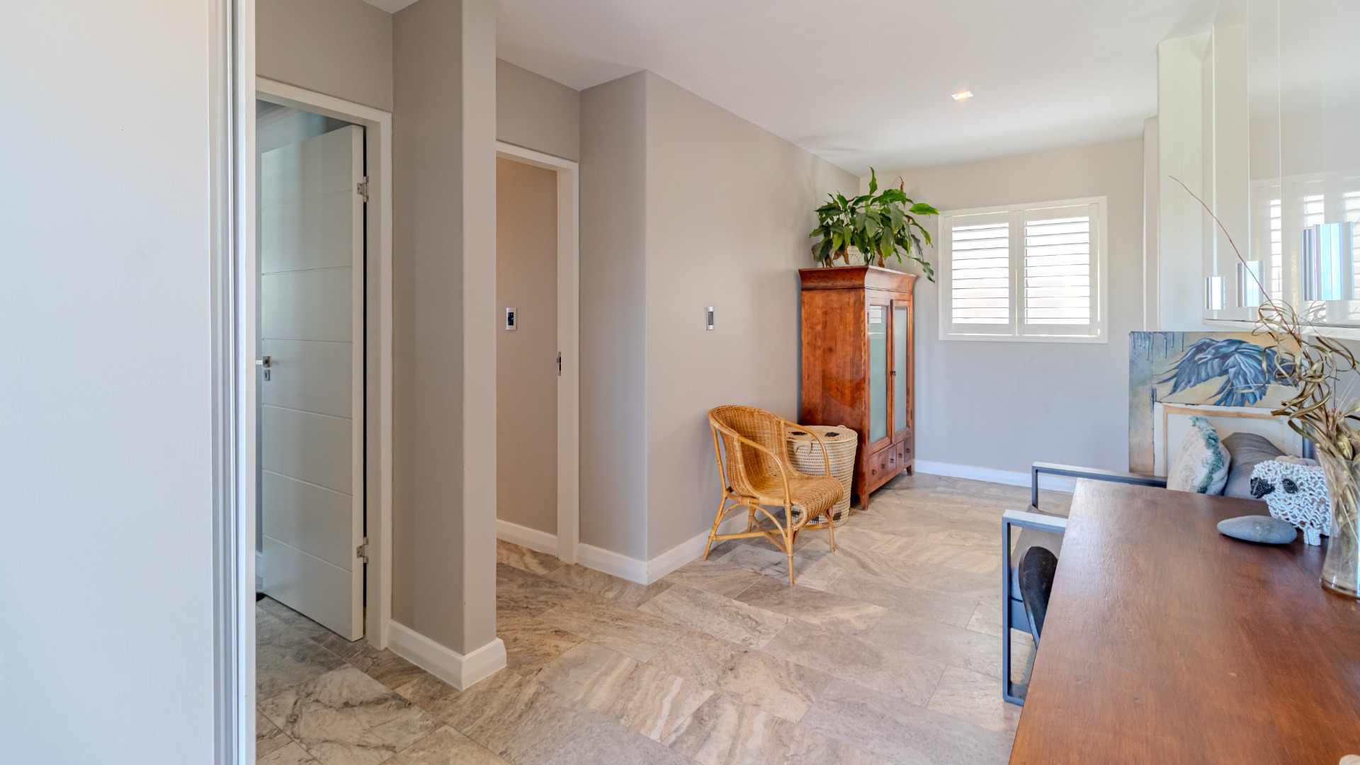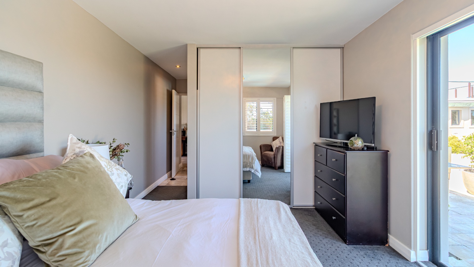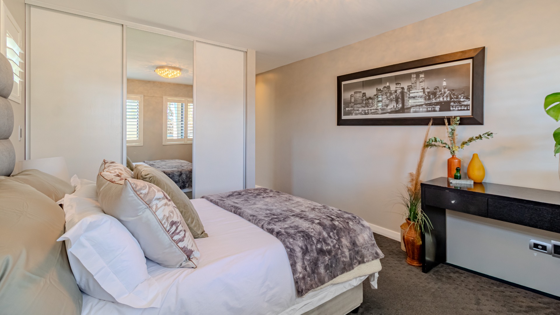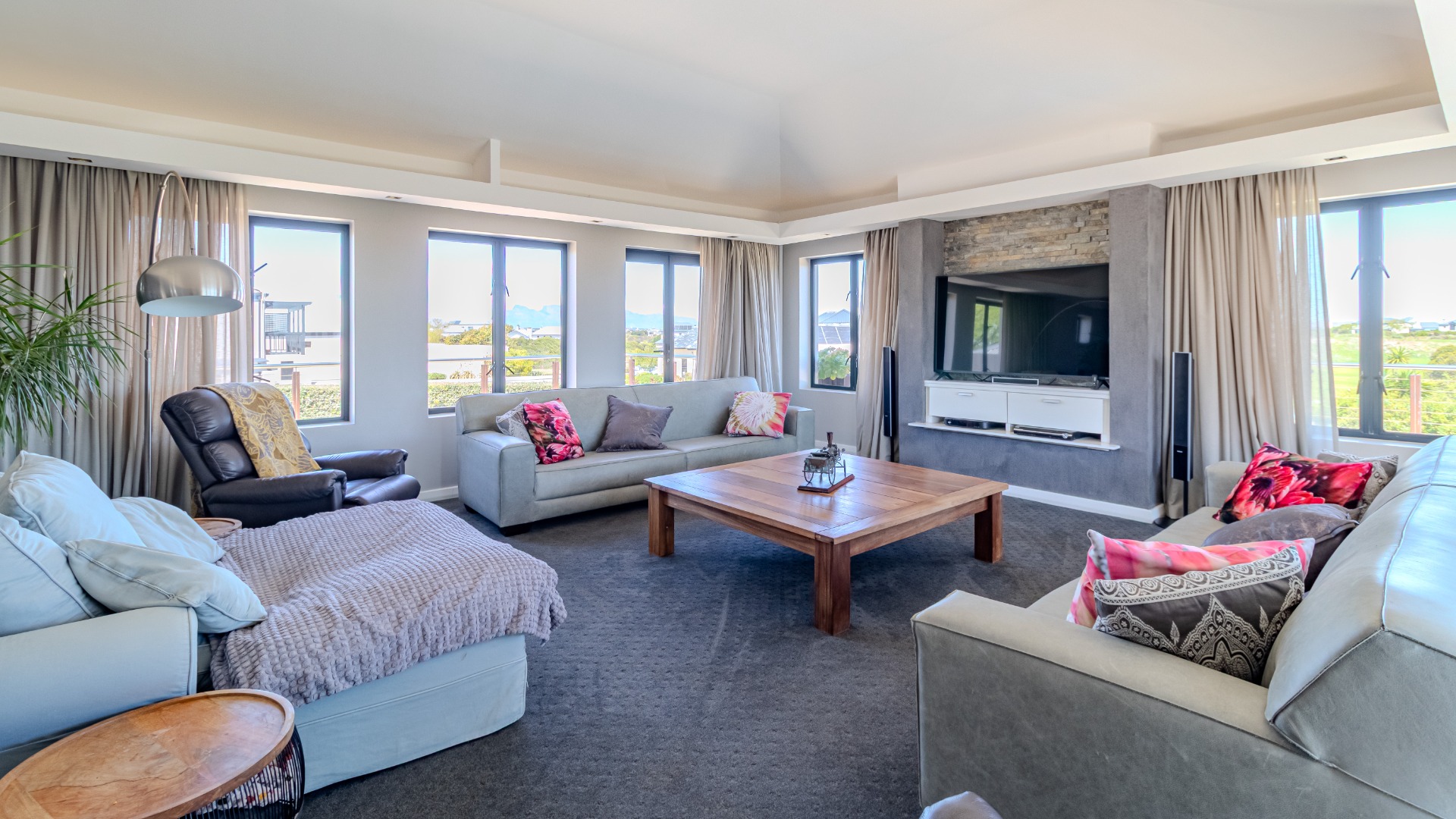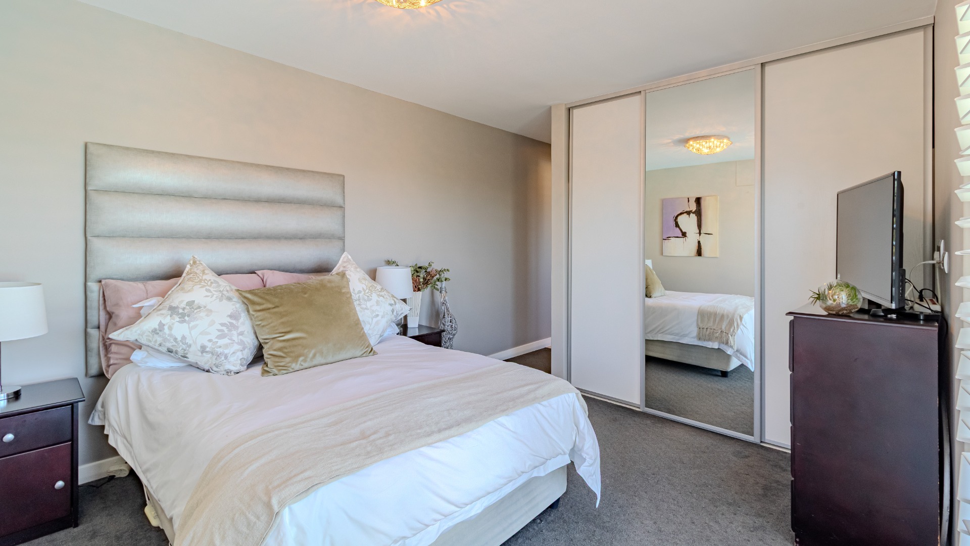 The dining and lounge area flow well out to the undercover patio with built in braai and drop down blinds. It has lovely views that sweep across the Estate. You have more than 180 degree views. Whilst enjoying the outdoor space, you overlook the pool and garden that are well maintained.