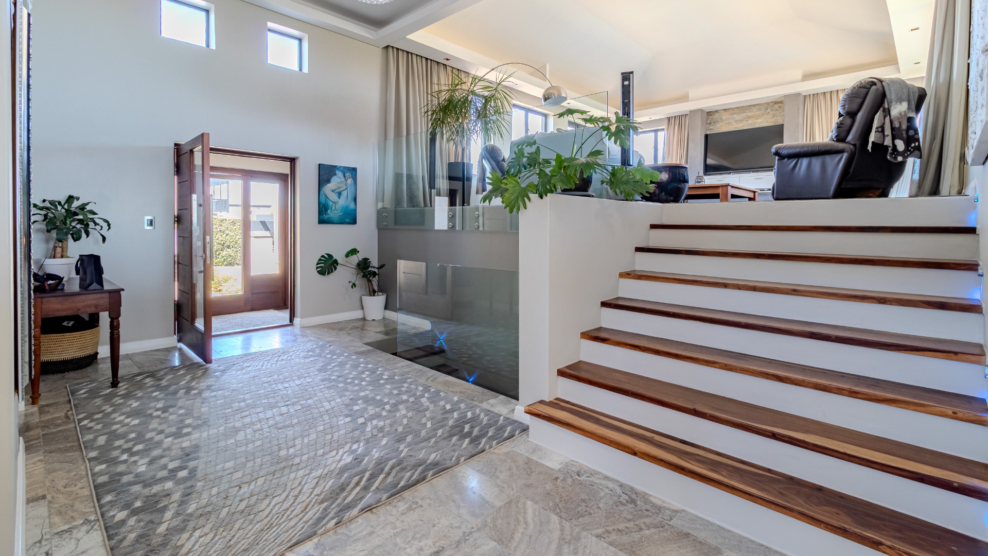 The upstairs lounge area has a full wrap around balcony wth amazing views. It is large and ideal for sundowners or just to relax or entertain. Talking about entertaining..... let look at the "man cave" ideally set out for entertaining. From the built in bar to the low noise or no noise it has. This leads into the garden and pool area as well. There is a side drive through gate for a trailer or a extra car.