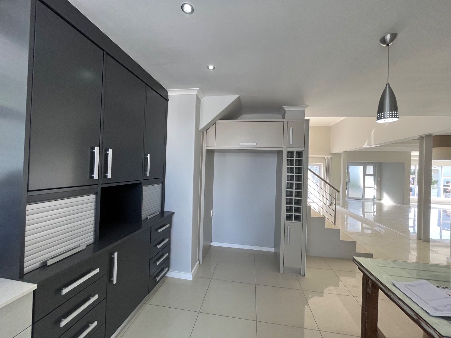 Outdoor living is a defining feature of this exceptional property. Set on a 1,079 sqm erf, the home boasts an expansive balcony and patio, perfectly positioned to capture sweeping sea views and unforgettable sunsets. The landscaped garden is fully irrigated and supported by a borehole, while a built-in braai creates an idyllic setting for alfresco entertaining. Paved surrounds and a generous driveway provide access to a double garage and six additional parking bays.