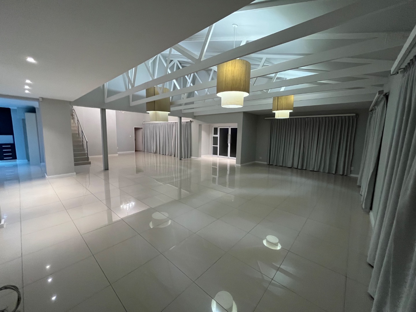 Spanning an expansive 440 sqm of sophisticated living space, the interior reveals a beautifully curated open-plan layout accentuated by soaring vaulted ceilings and exposed beams. Light-toned, contemporary tiled flooring enhances the sense of space and airiness throughout. The residence offers exceptional versatility with two generous lounges, two refined dining areas, and two well-appointed kitchens, ideal for both intimate family living and effortless entertaining on a grand scale.