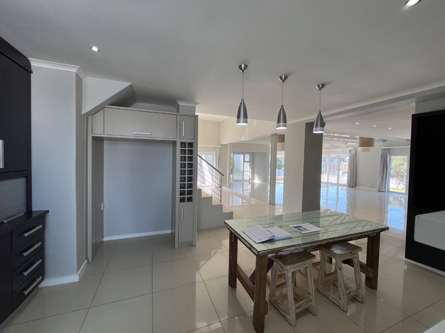 Outdoor living is a defining feature of this exceptional property. Set on a 1,079 sqm erf, the home boasts an expansive balcony and patio, perfectly positioned to capture sweeping sea views and unforgettable sunsets. The landscaped garden is fully irrigated and supported by a borehole, while a built-in braai creates an idyllic setting for alfresco entertaining. Paved surrounds and a generous driveway provide access to a double garage and six additional parking bays.