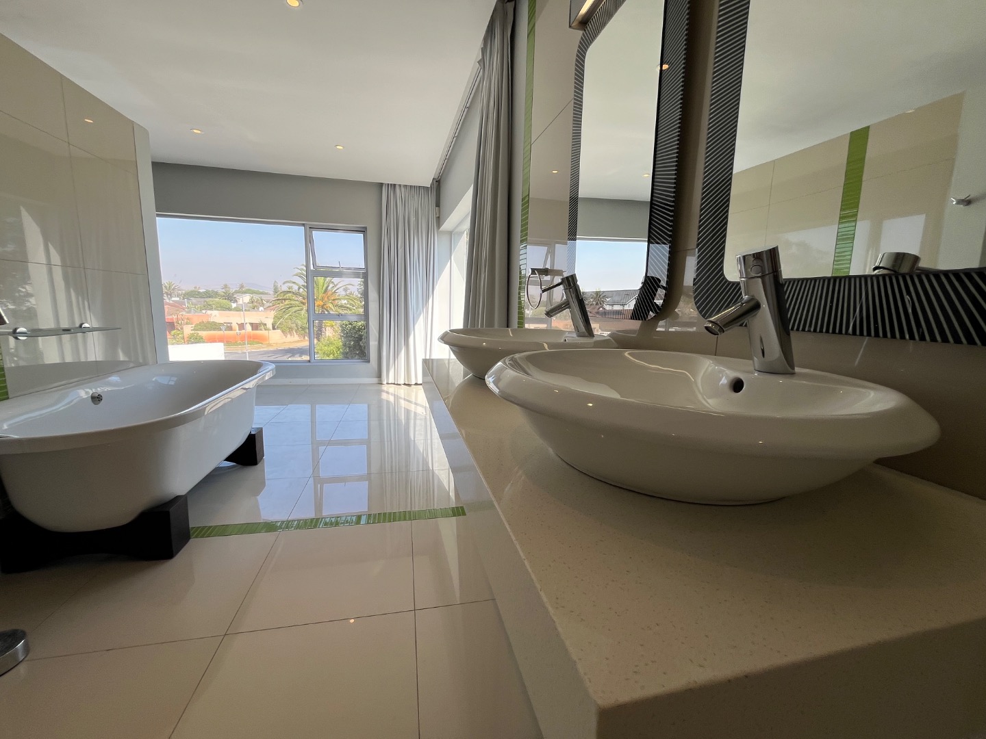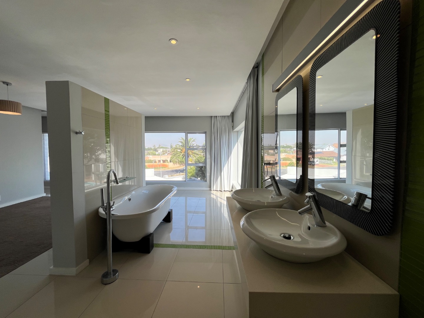 Positioned in the highly sought-after coastal enclave of Van Riebeeckstrand, Melkbosstrand, this striking multi-level contemporary residence presents a rare opportunity to secure an exclusive seaside lifestyle. Enjoying direct access to a nearby servitude leading to the beach — just a two-minute walk from the home, this property offers effortless connectivity to pristine sandy shores, making it ideal as both a luxurious permanent residence or an elegant coastal retreat.
