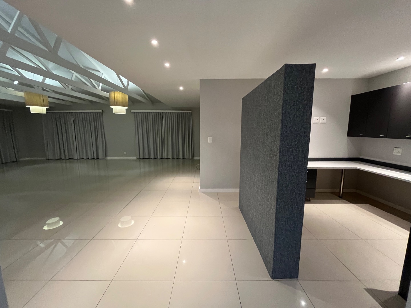 Spanning an expansive 440 sqm of sophisticated living space, the interior reveals a beautifully curated open-plan layout accentuated by soaring vaulted ceilings and exposed beams. Light-toned, contemporary tiled flooring enhances the sense of space and airiness throughout. The residence offers exceptional versatility with two generous lounges, two refined dining areas, and two well-appointed kitchens, ideal for both intimate family living and effortless entertaining on a grand scale.