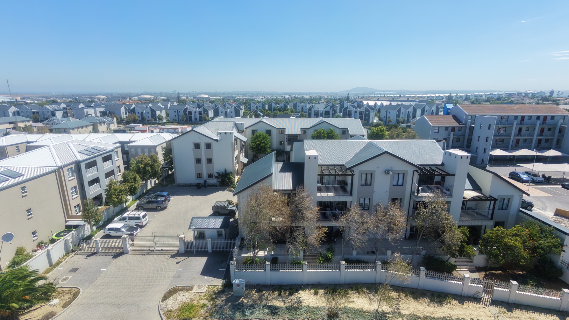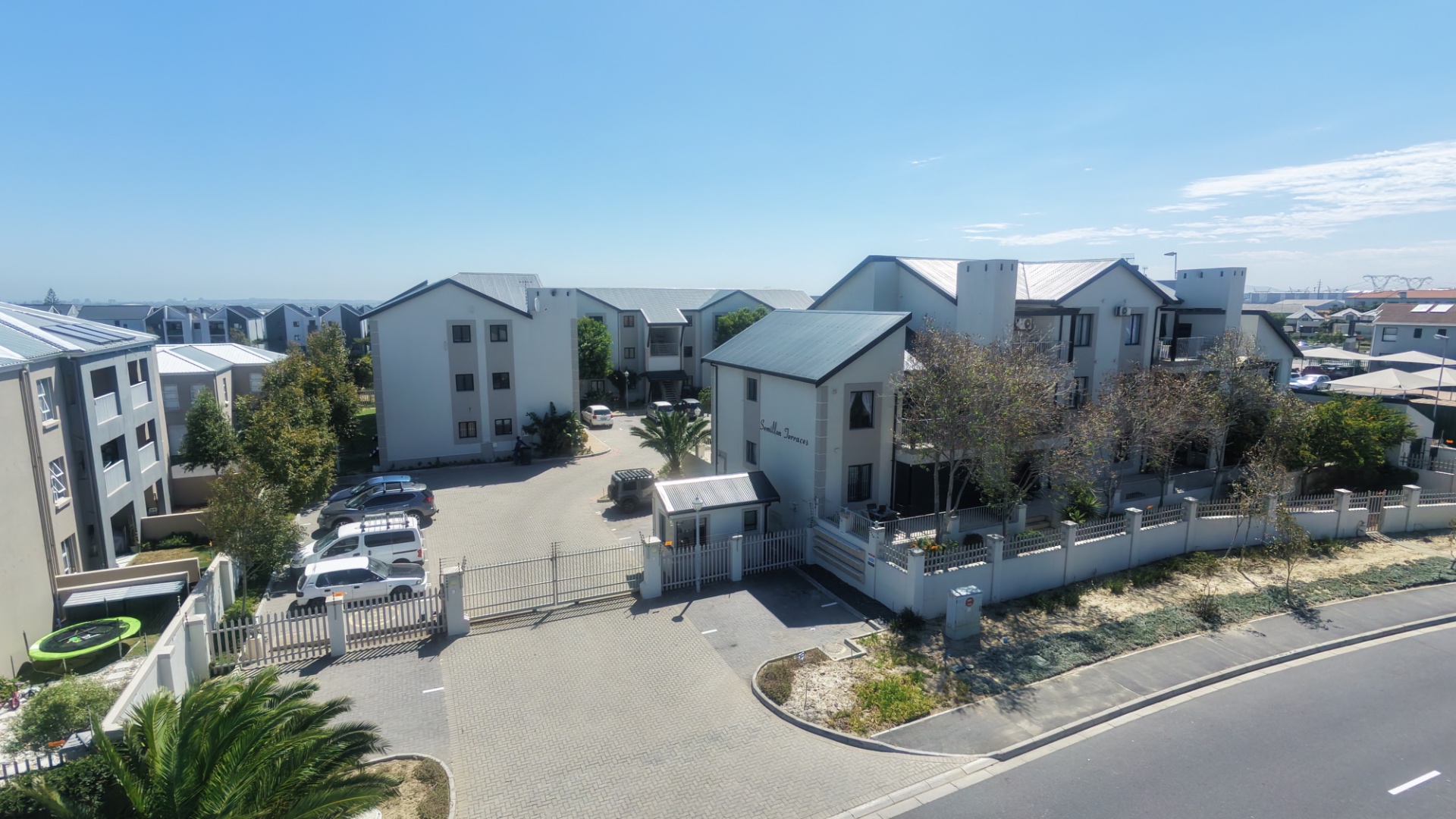This apartment is situated within a secure complex, offering residents peace of mind with gated access, a guard house, and electric fencing. The modern architectural style of the complex, known as Semillon Terraces, is complemented by well-maintained common areas.