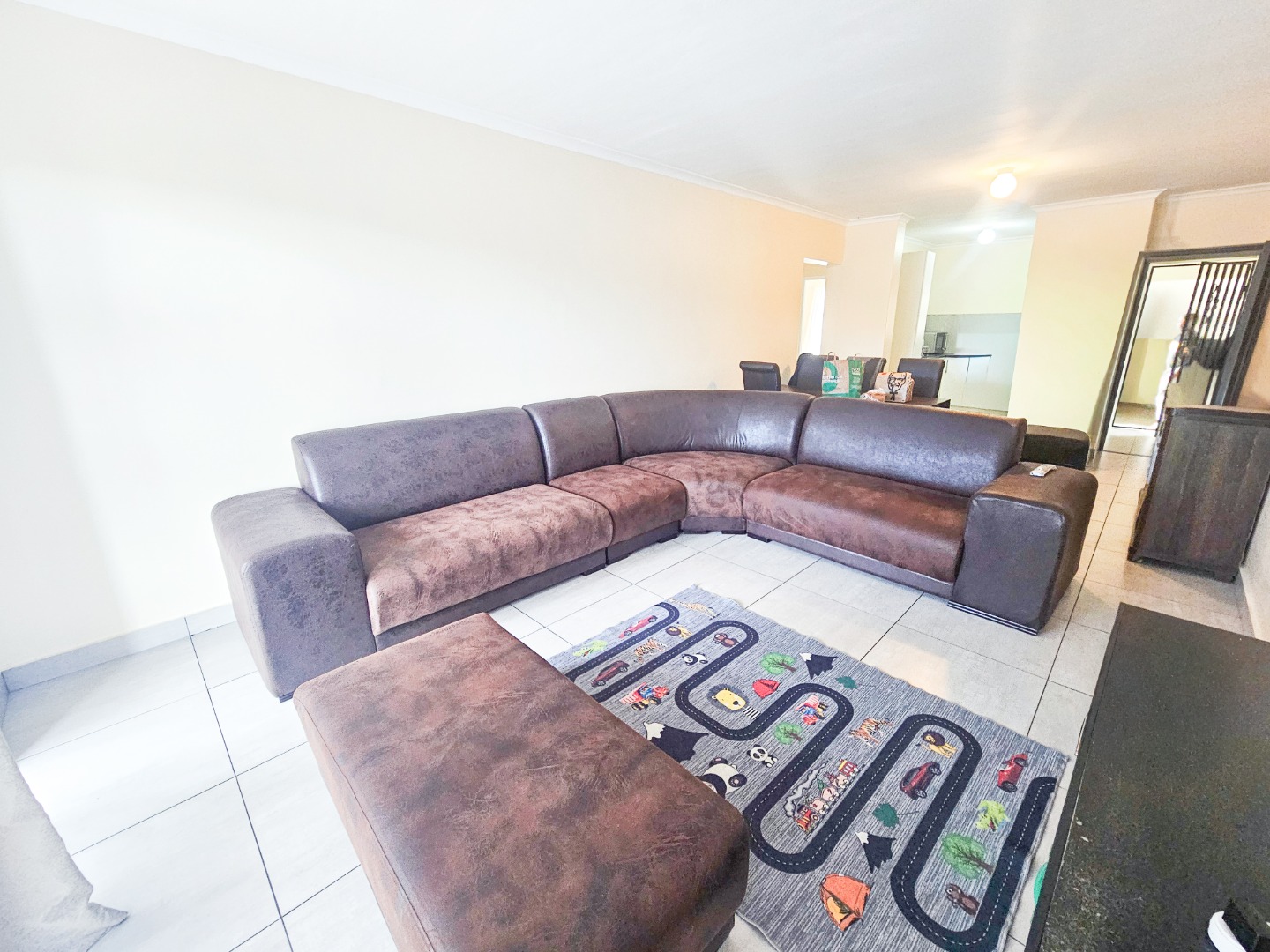 The property features 3 spacious bedrooms and 2 bathrooms (one main en-suite and a full family bathroom), a practical kitchen, and an open-plan lounge and dining area that flows seamlessly to a covered patio — ideal for relaxing or entertaining.