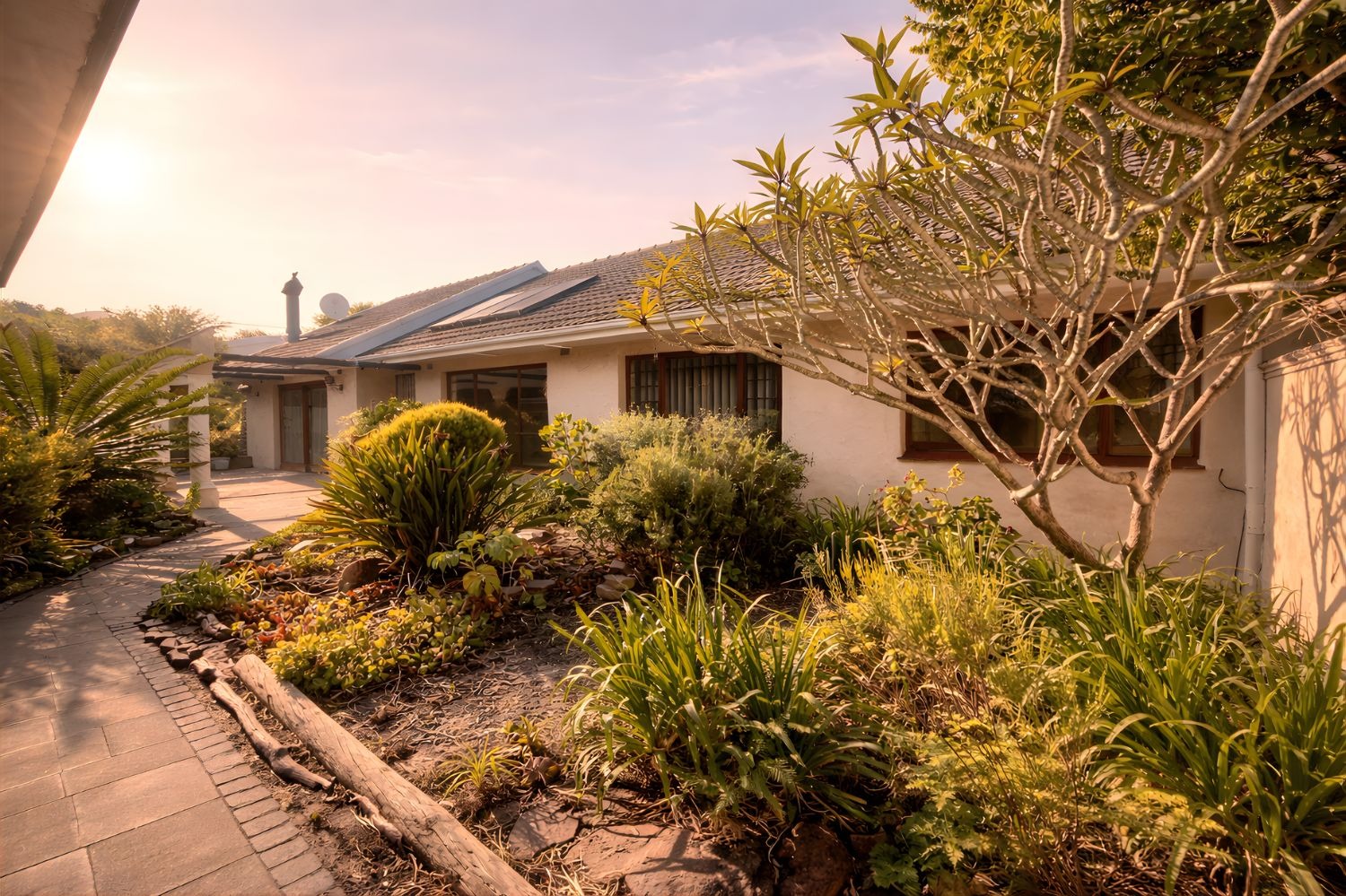 This suburban property offers a lush garden, perfect for outdoor enjoyment, alongside practical parking solutions with a double garage and two additional spaces. It presents an ideal family home within this desirable Cape Town location.