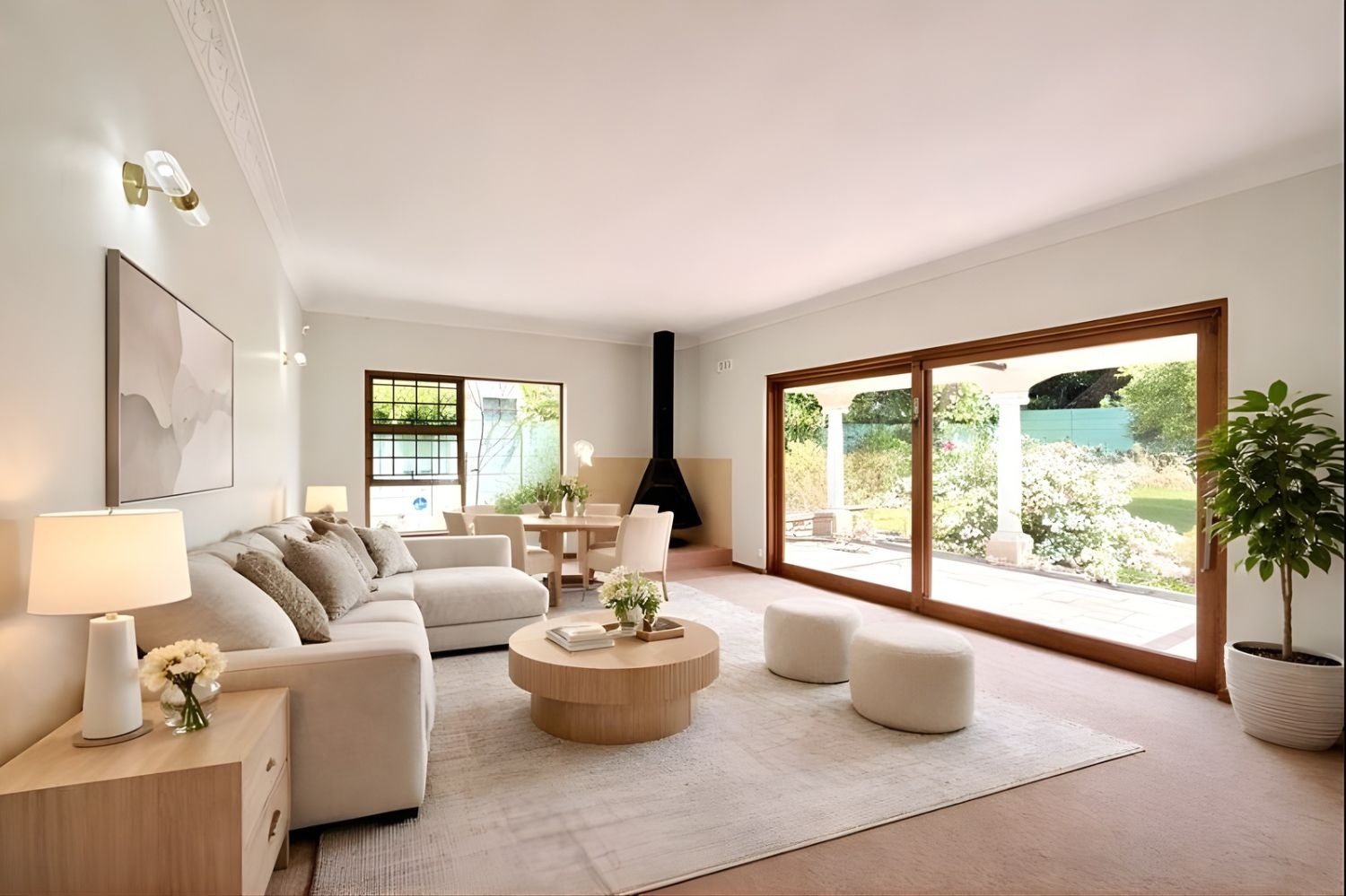 Discover this inviting 4-bedroom, 2-bathroom rental home in the sought-after Constantia suburb of Cape Town. The residence features a bright, lounge and dining area, enhanced by a freestanding fireplace and abundant natural light.