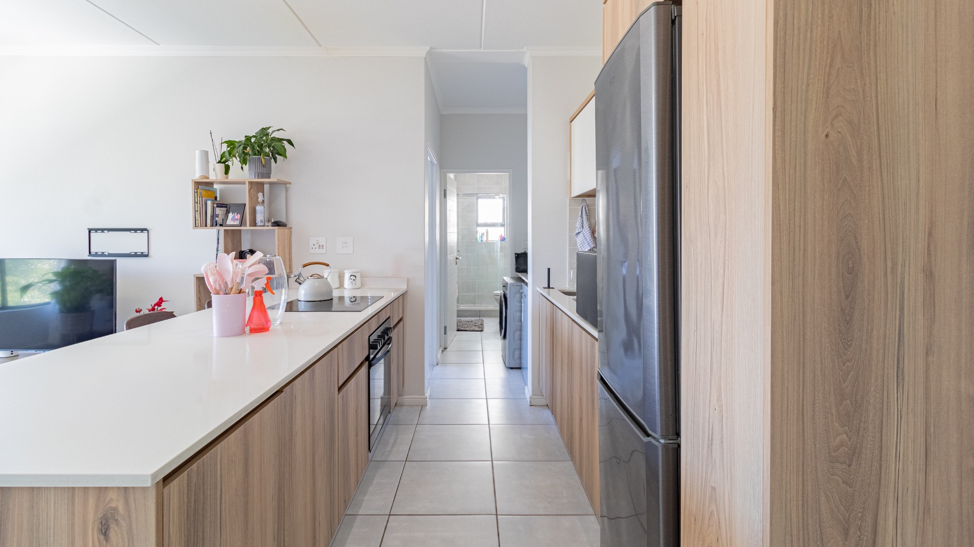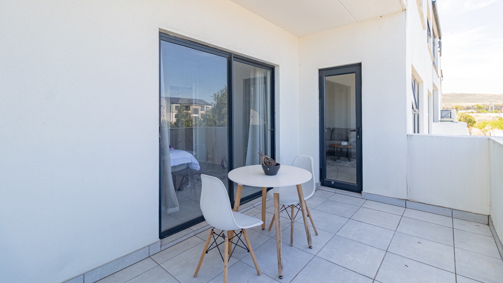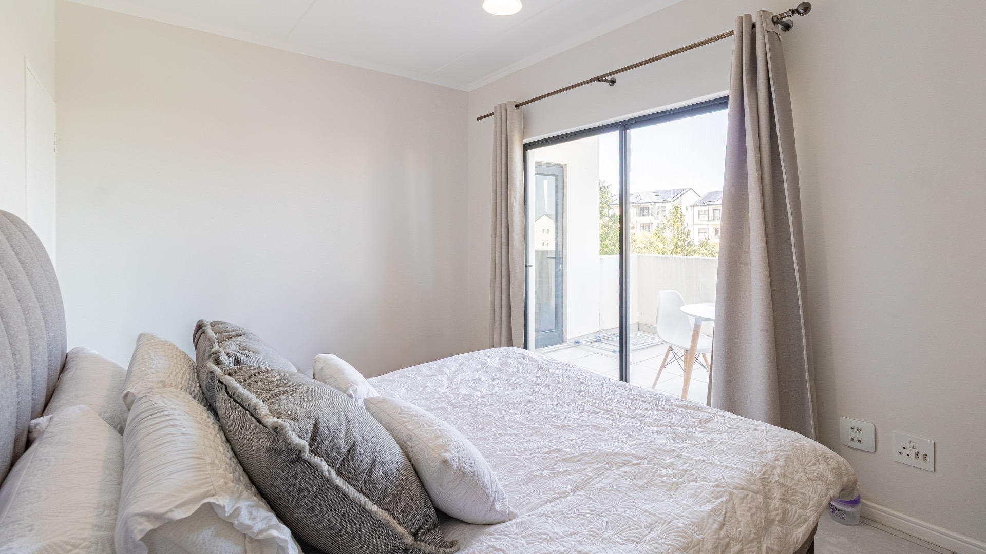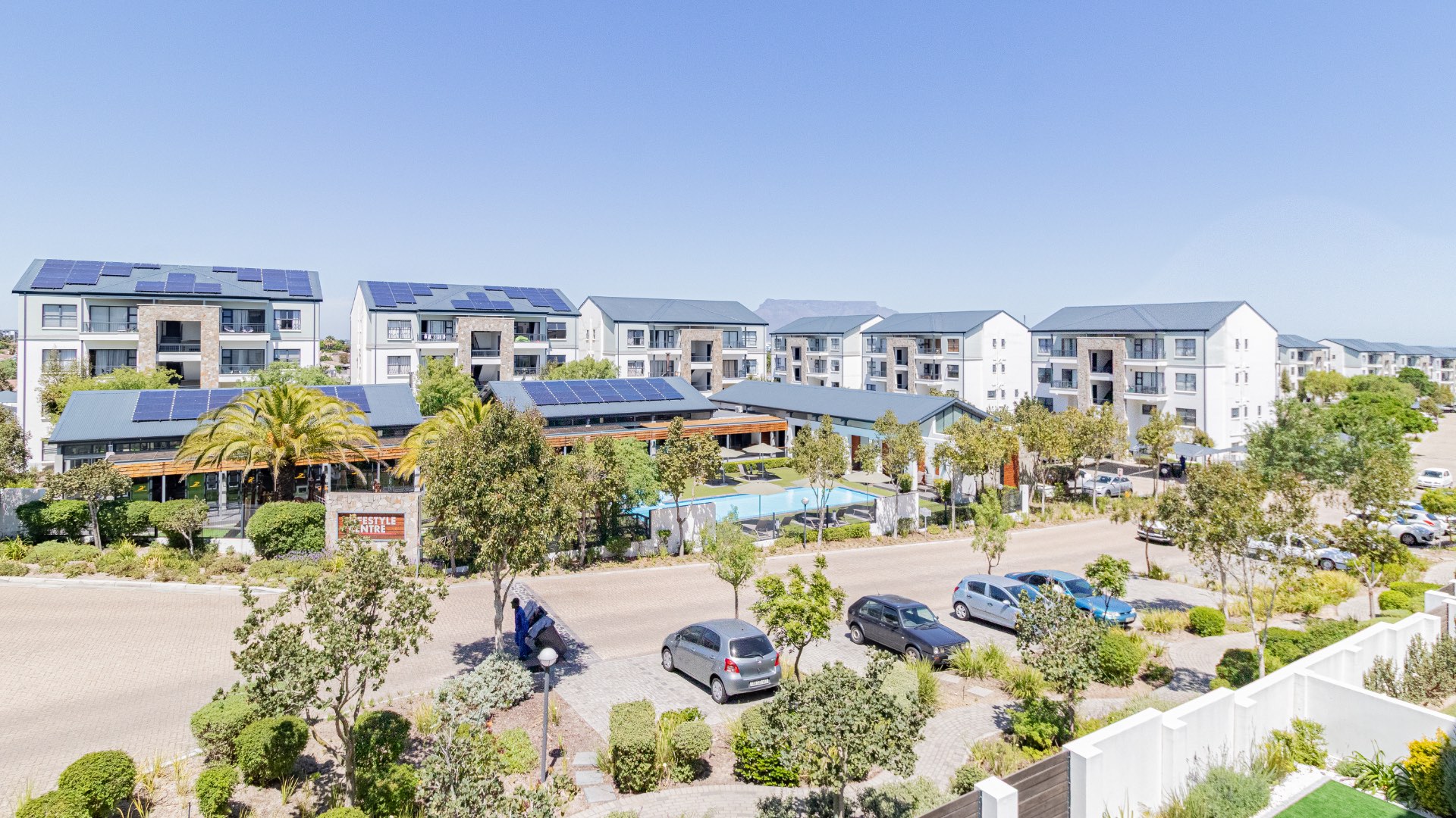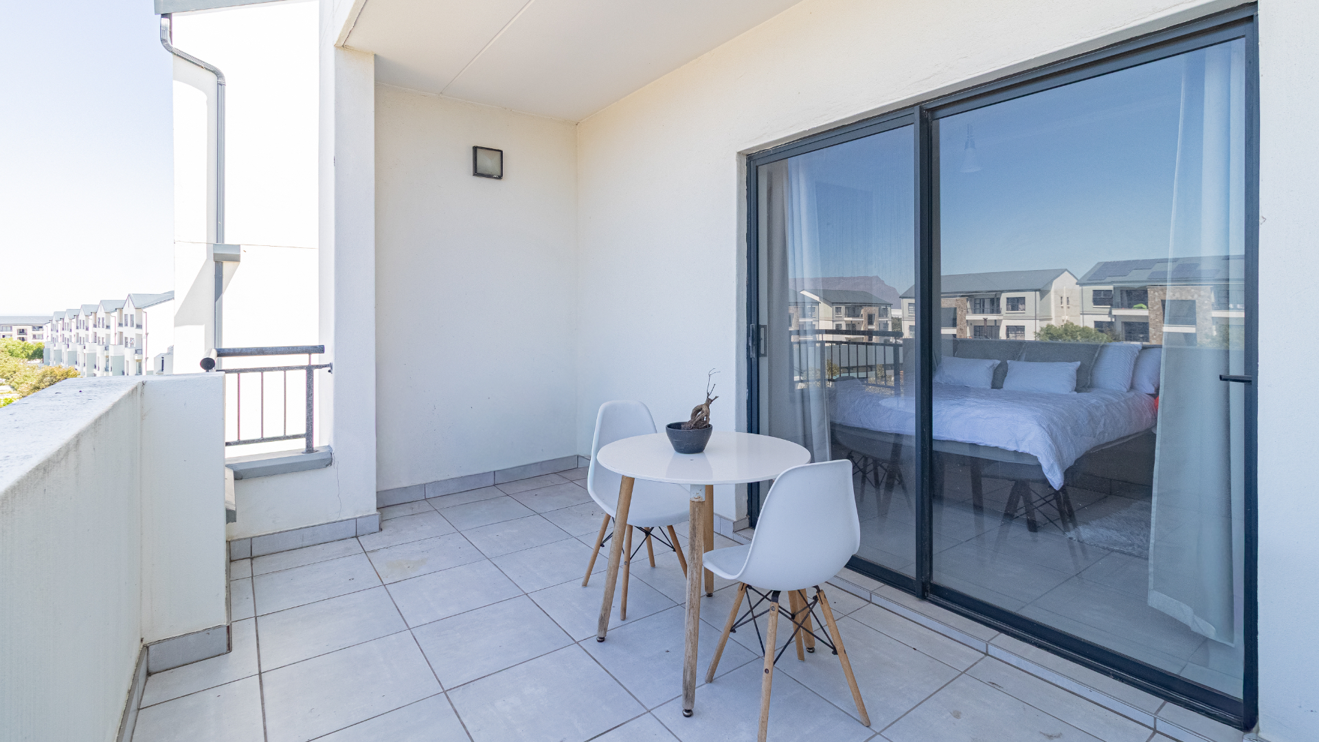 This modern apartment offers an open-plan kitchen and living area that flows onto a spacious balcony with stunning views of the lifestyle centre and Table Mountain - visible from both the living area and the bedroom! The bedroom includes generous built-in cupboards and direct access to the balcony.