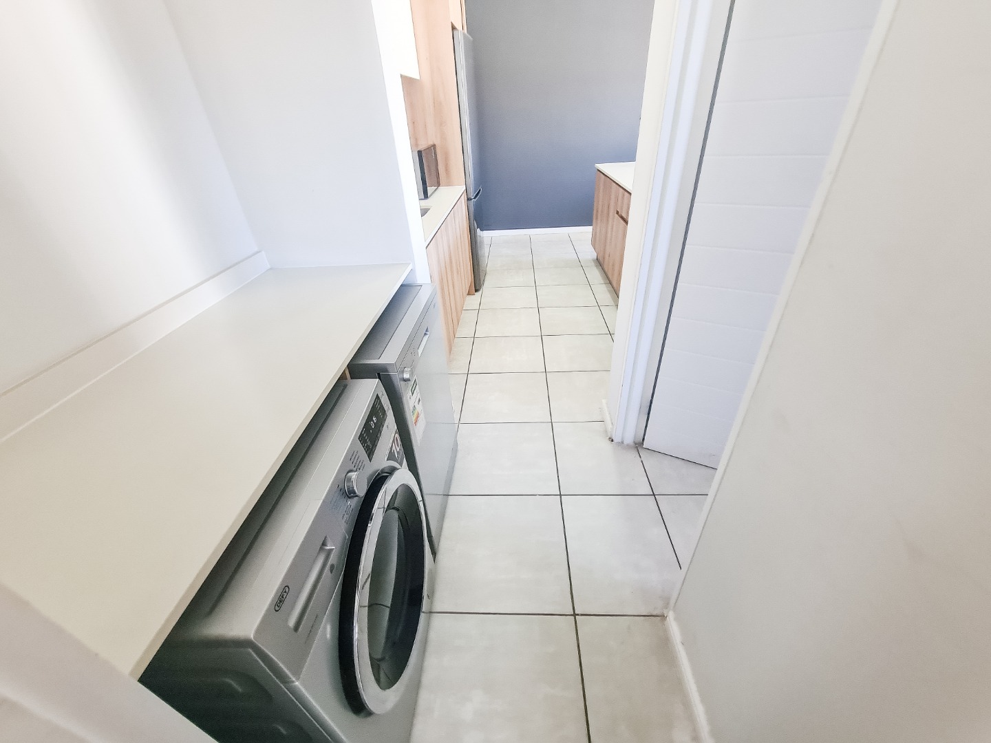 This spacious and light apartment offers a big open-plan living area, Scandinavian styled kitchen complete with island, spacious bedroom, one bathroom, a patio with drop-down canvas covers and an abundance of cupboard space.