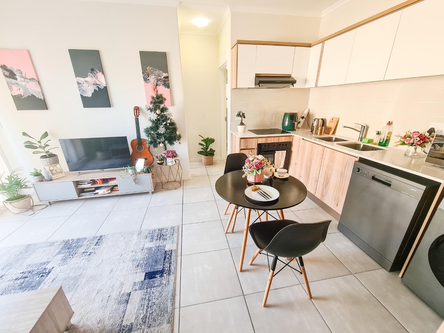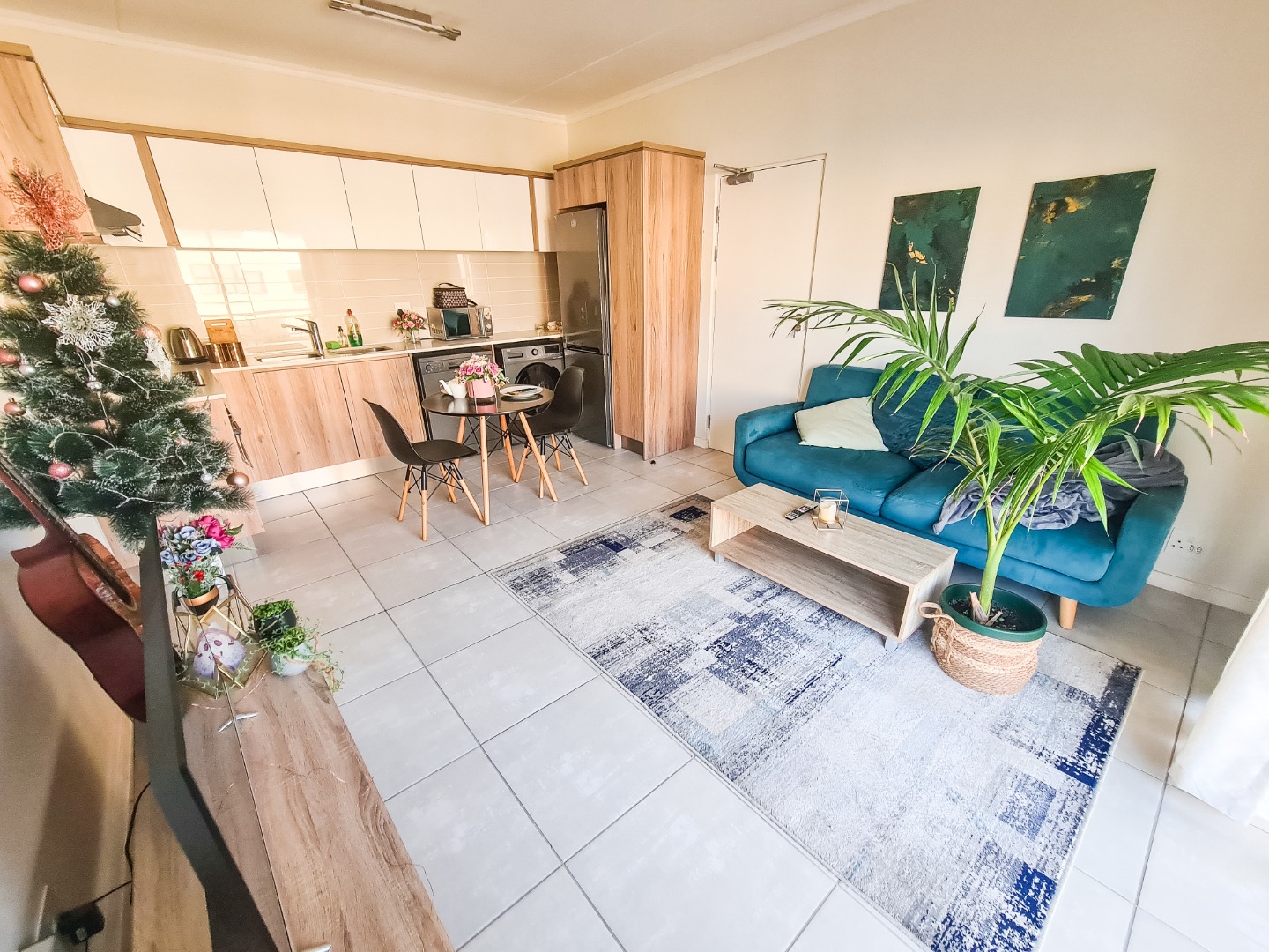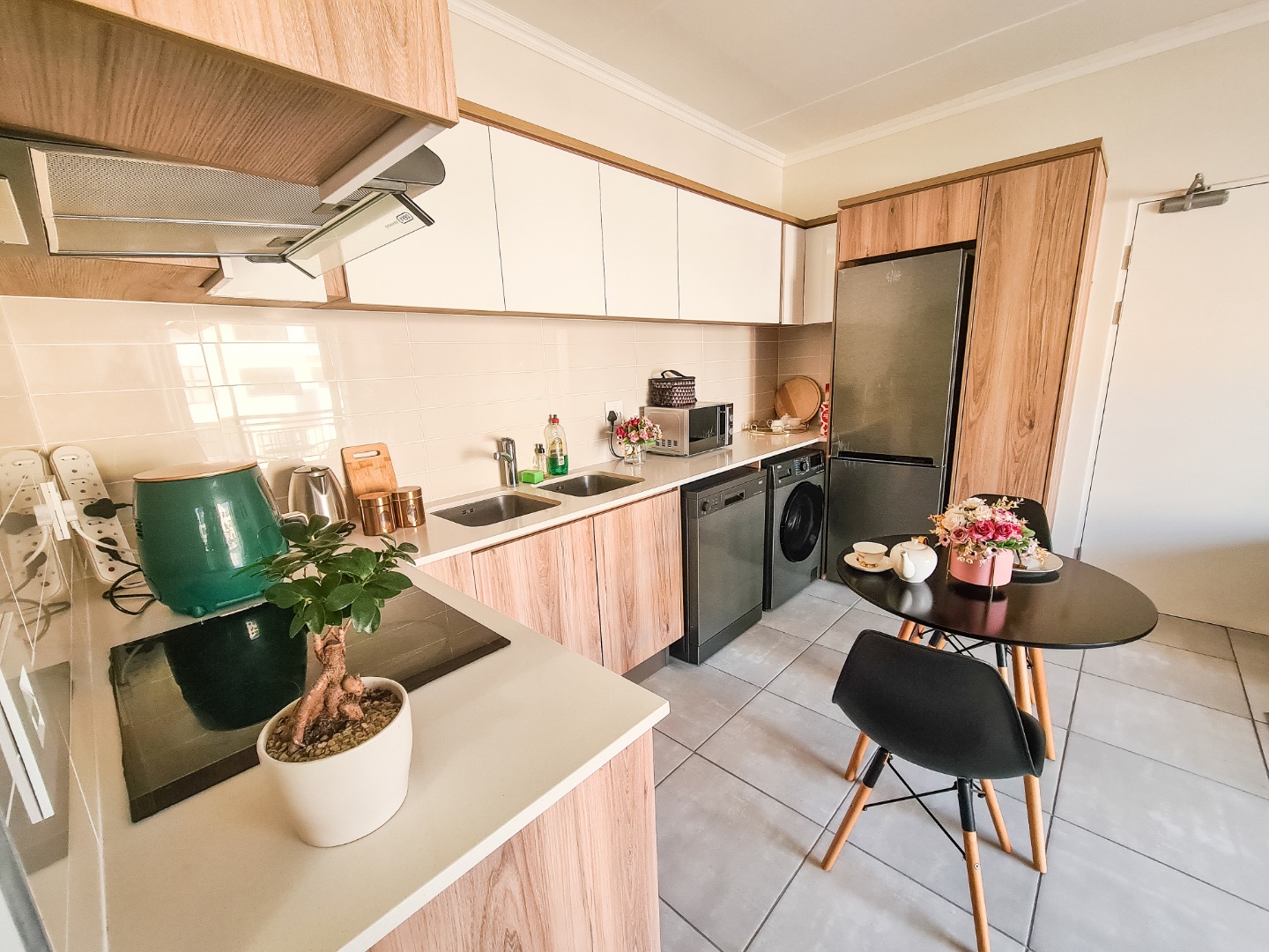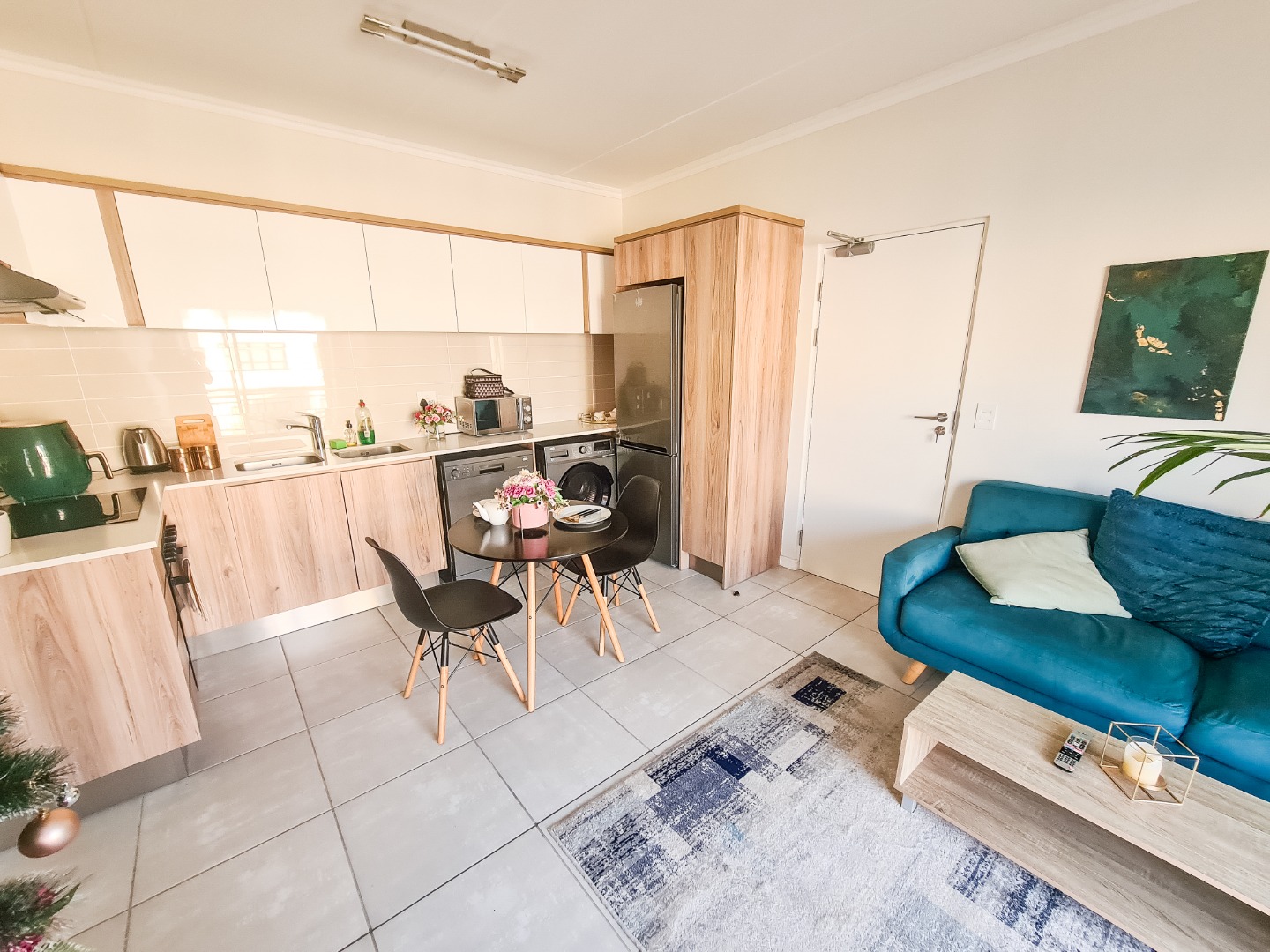 This modern apartment in De Zicht Estate offers comfortable and convenient living in a secure lifestyle estate. The open-plan lounge flows seamlessly into a well-appointed kitchen with contemporary finishes and integrated appliances, including a washing machine, washer-dryer and fridge. Tiled flooring throughout makes for easy maintenance, while large sliding doors open onto a balcony.