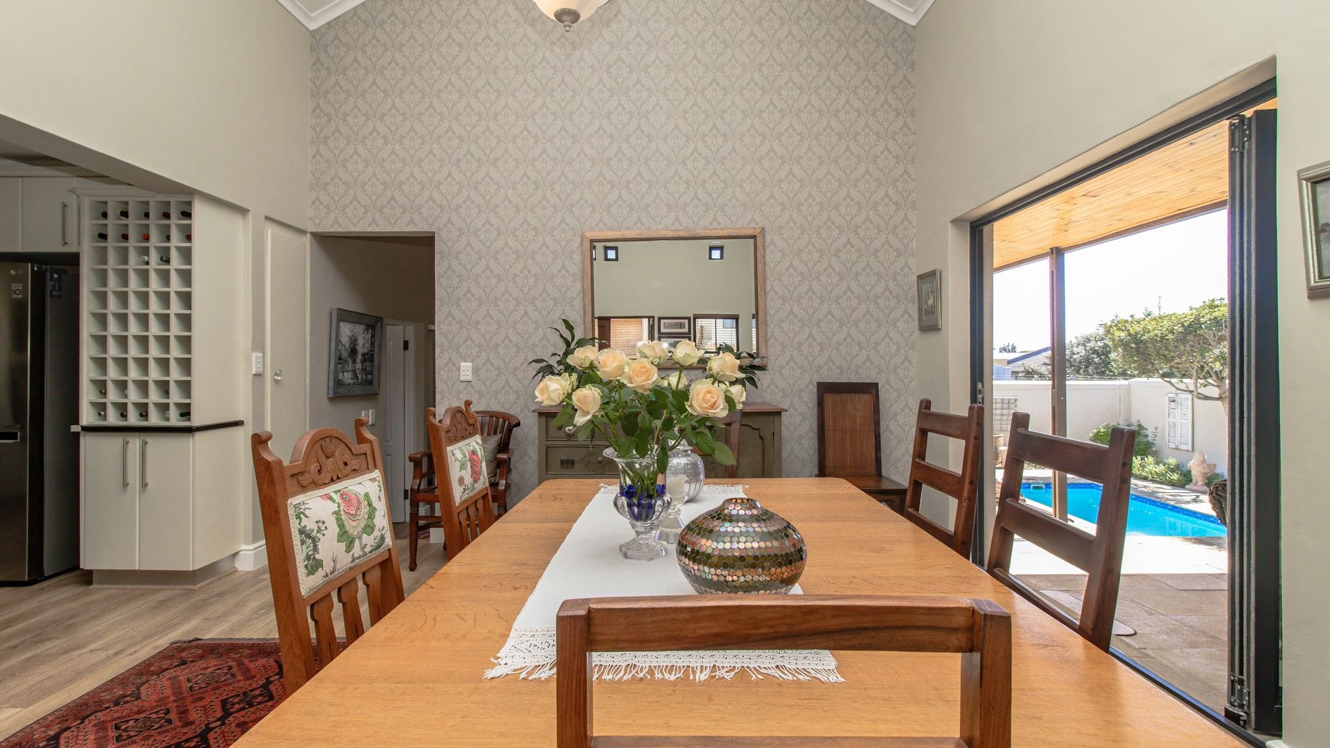 Well proportioned open plan living areas which creates a lovely flow via stack away doors to the protected patio and garden areas.