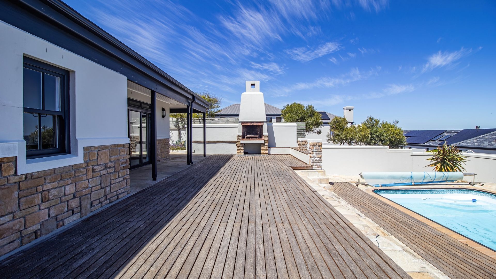 The living space offers a large open plan lounge/dining room. With sliding doors on both sides. Both lead out to the garden and the outdoor braai area and pool set in a fully walled garden. Set in a quiet road and offers Fabulous sunsets from the patio.