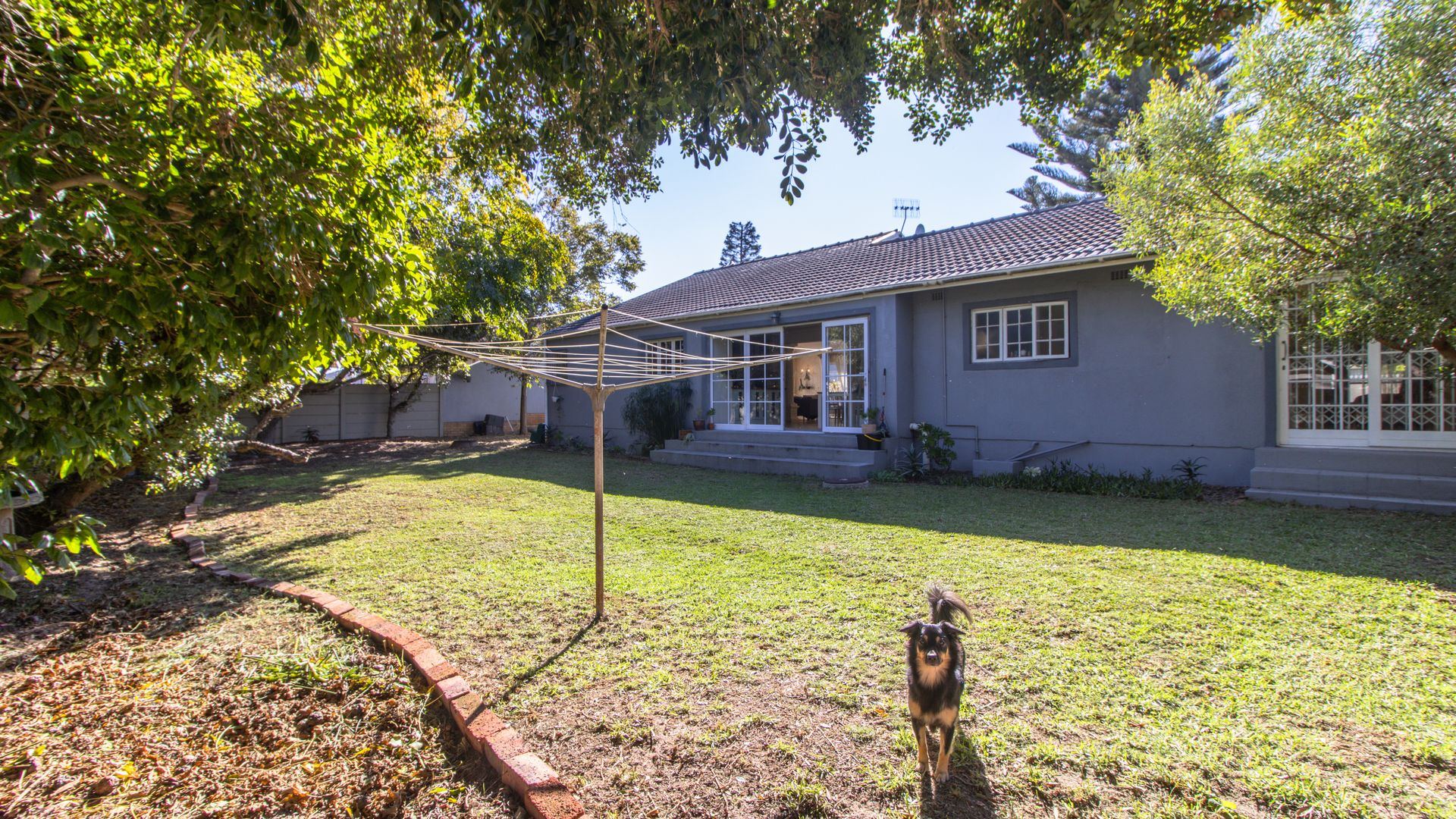 The expansive garden is a standout, beautifully landscaped with lush greenery and mature trees, offering both privacy and a serene atmosphere for outdoor living and entertaining.
