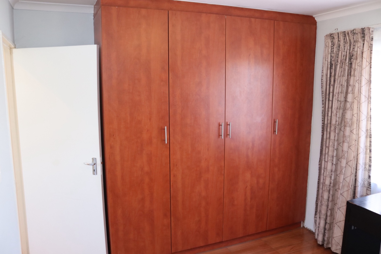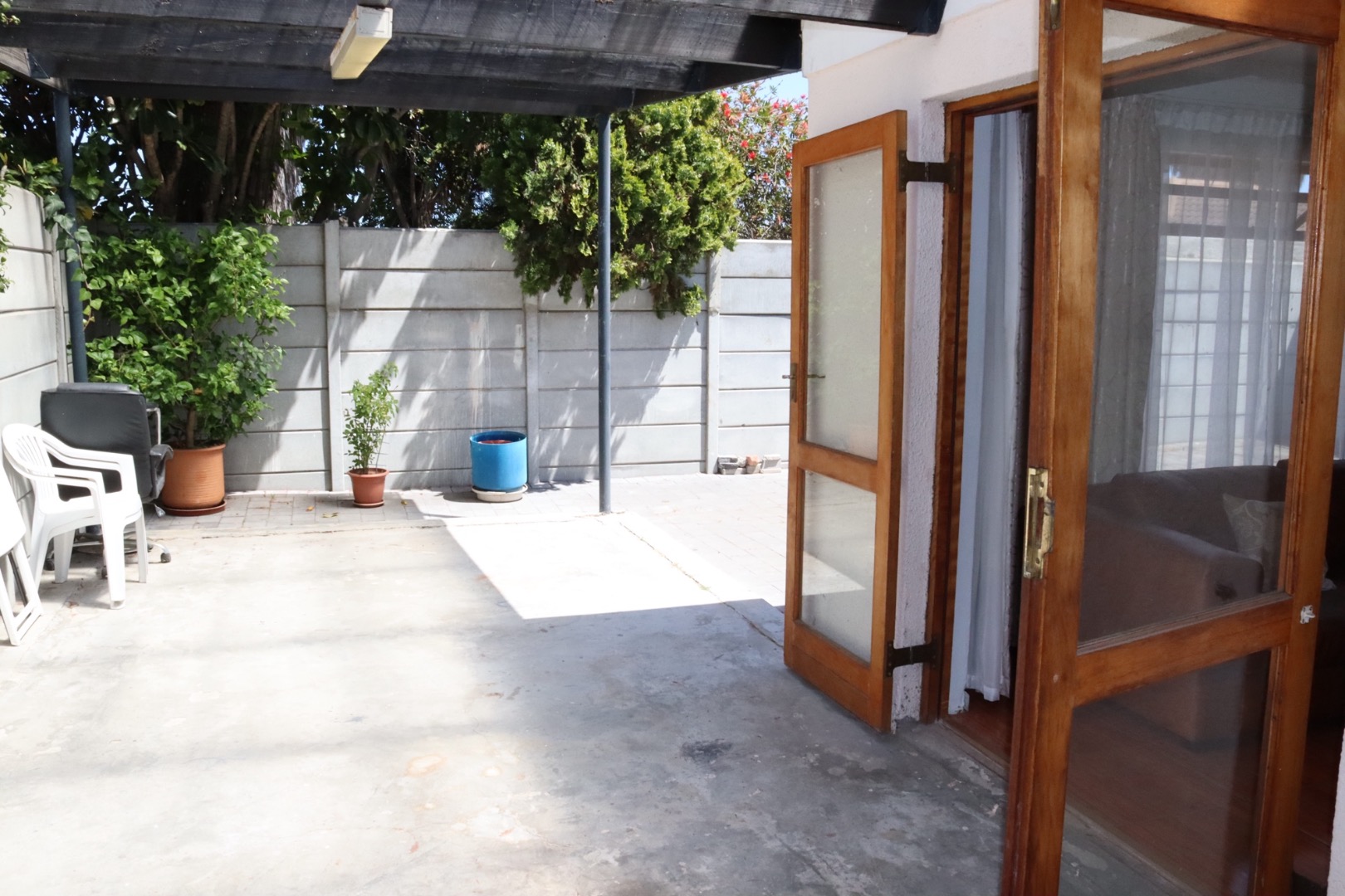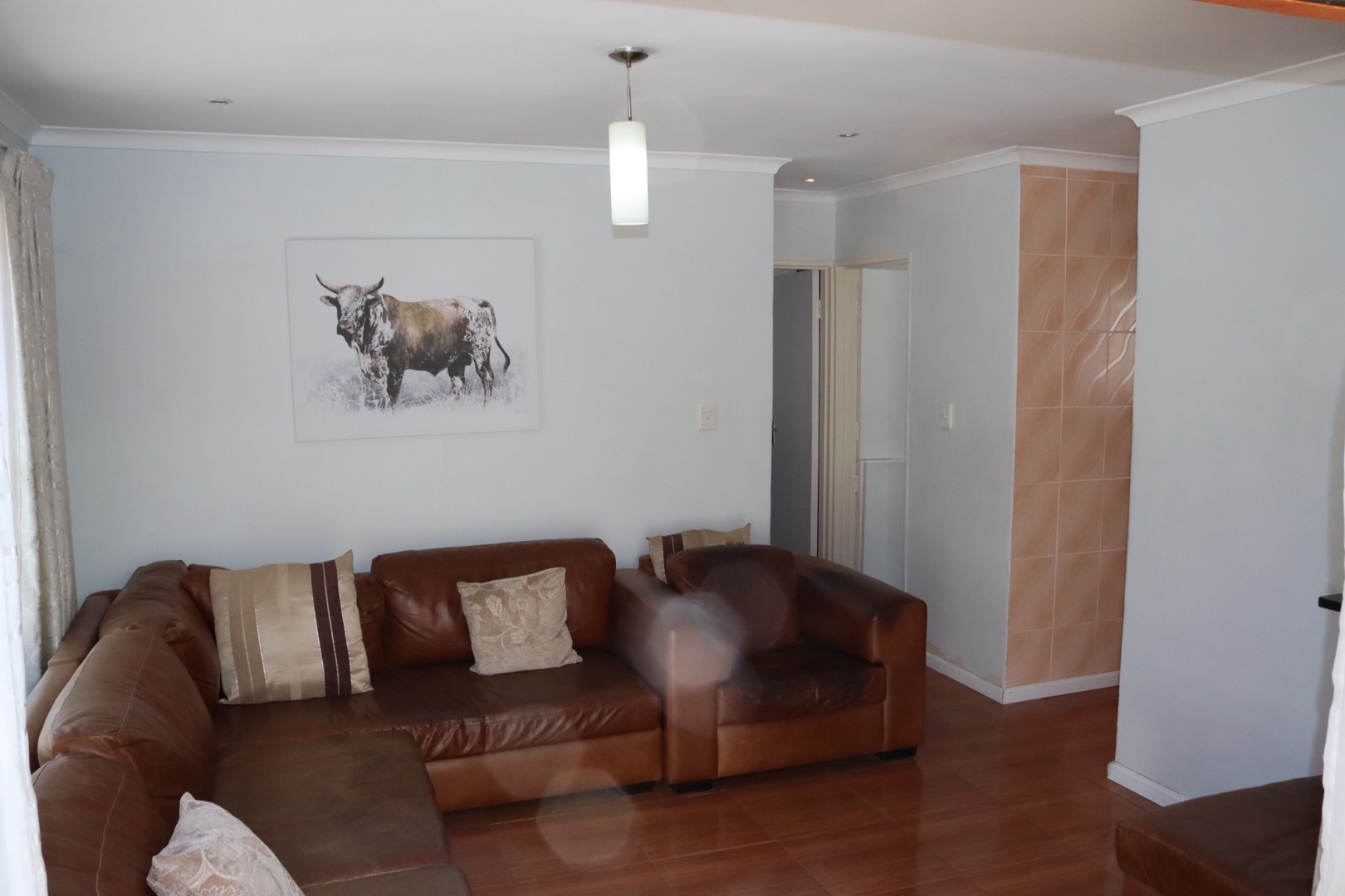Discover this charming 2-bedroom, 1-bathroom home perfect for first time home owners, young couples or if you are looking to downscale. This inviting residence features an open-plan living area with beautiful tile flooring and a contemporary pendant light, leading to a private paved patio with a single car port, ideal for outdoor enjoyment. The functional kitchen boasts warm-toned wooden cabinetry, dark countertops, an integrated Defy oven, hob, and extractor fan. Security is enhanced with burglar bars and a security gate. The property includes a single garage, additional parking, and is fibre-ready. Pets are welcome. This home offers a comfortable lifestyle on a 161 sqm erf with a 58 sqm floor size.