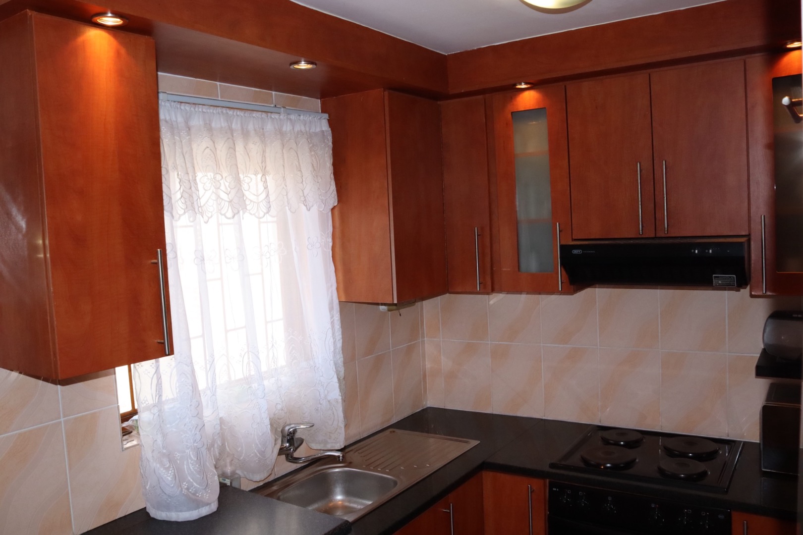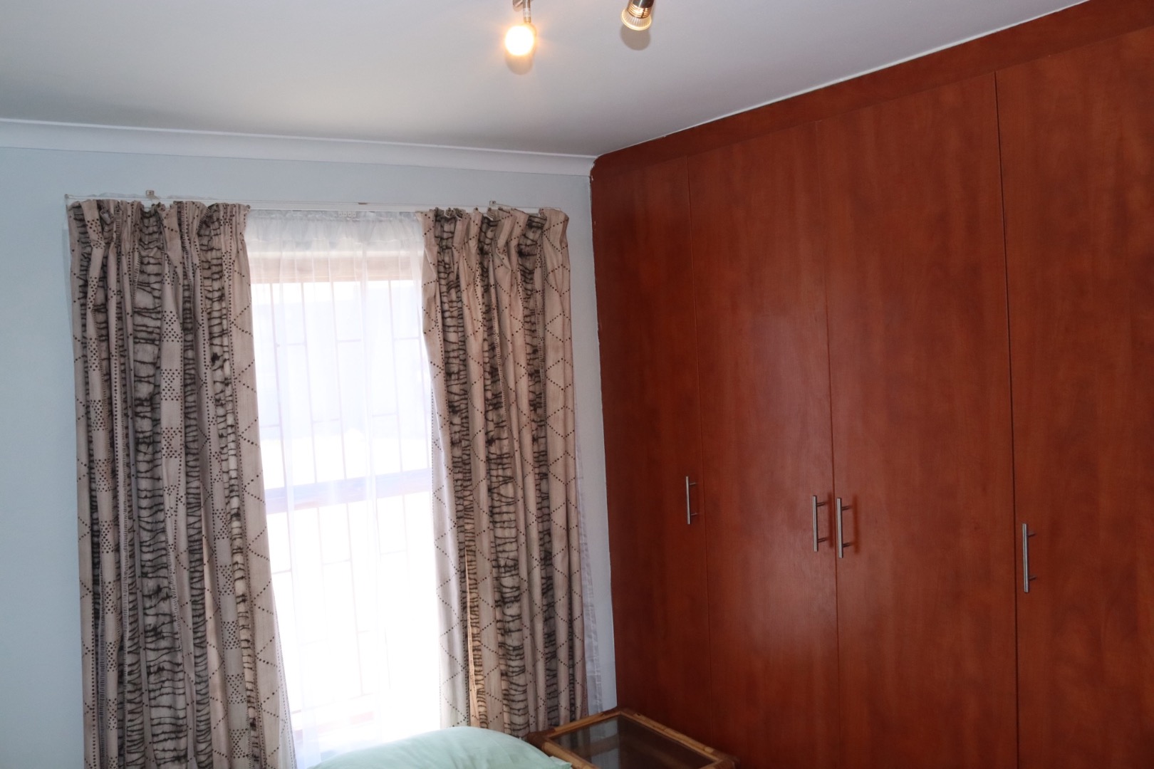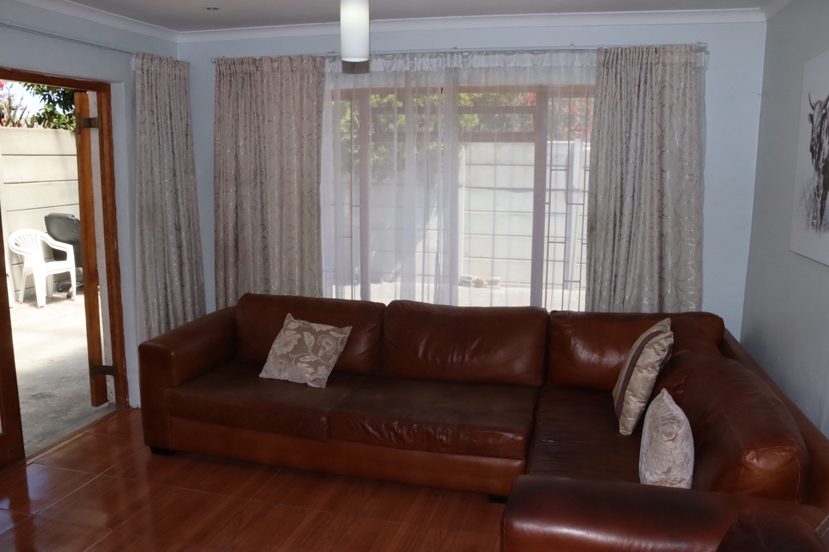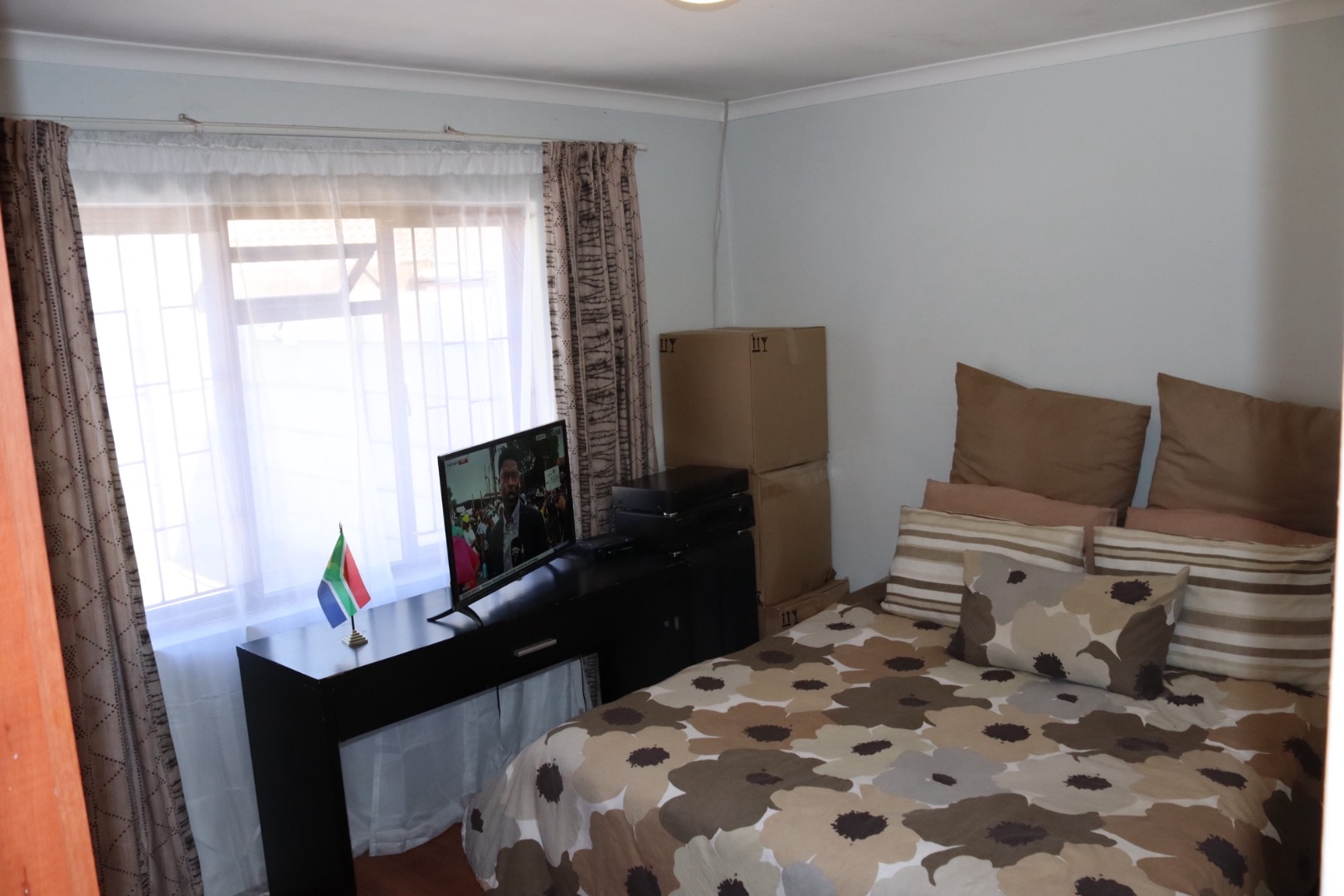 Discover this charming 2-bedroom, 1-bathroom home perfect for first time home owners, young couples or if you are looking to downscale. This inviting residence features an open-plan living area with beautiful tile flooring and a contemporary pendant light, leading to a private paved patio with a single car port, ideal for outdoor enjoyment. The functional kitchen boasts warm-toned wooden cabinetry, dark countertops, an integrated Defy oven, hob, and extractor fan. Security is enhanced with burglar bars and a security gate. The property includes a single garage, additional parking, and is fibre-ready. Pets are welcome. This home offers a comfortable lifestyle on a 161 sqm erf with a 58 sqm floor size.