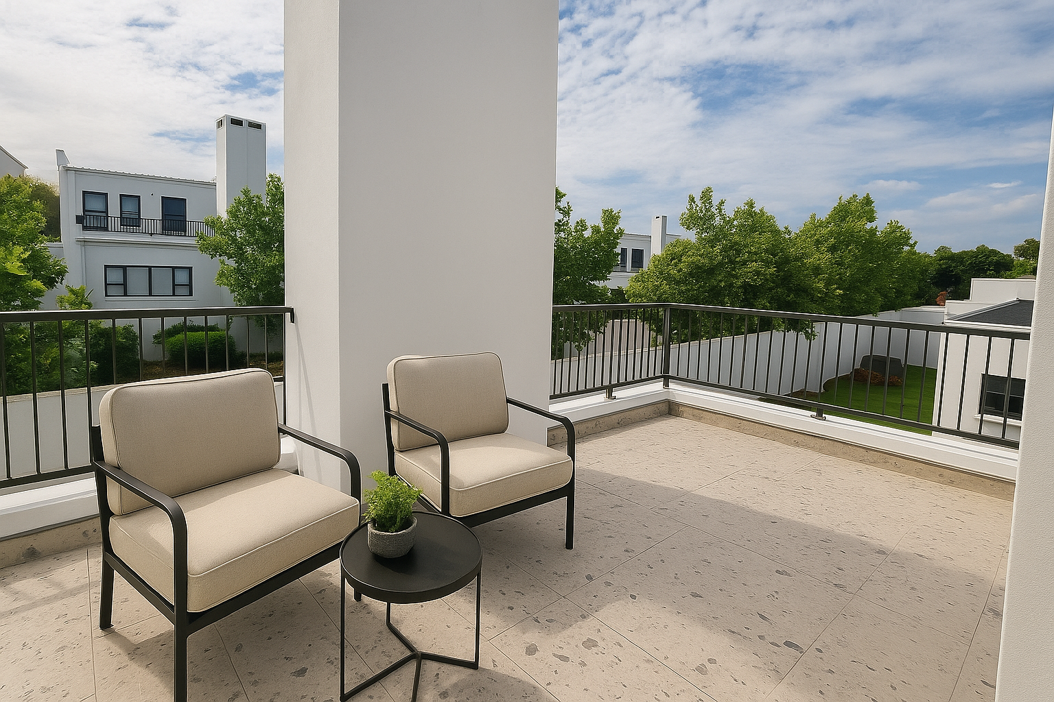A private balcony leading from the main bedroom serves as a beautiful sanctury for a blissful morning coffee.