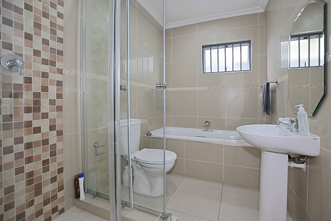 The tiled garage is a standout feature with a built-in laundry area, a second built-in fridge, and plenty of extra storage space in custom cupboards. The property has excellent security, providing peace of mind for tenants.