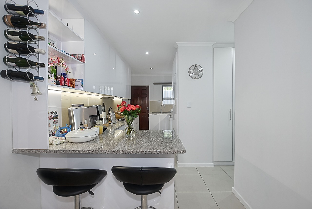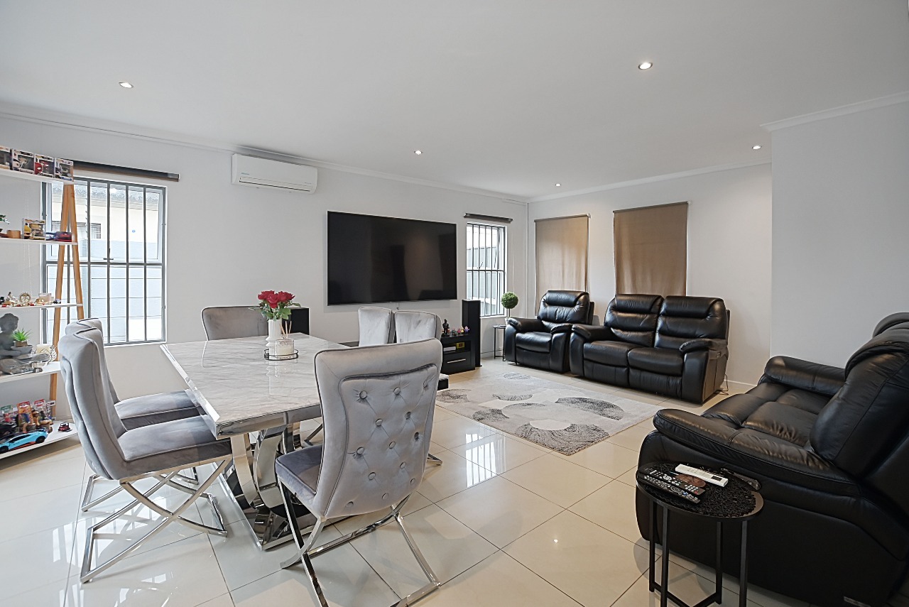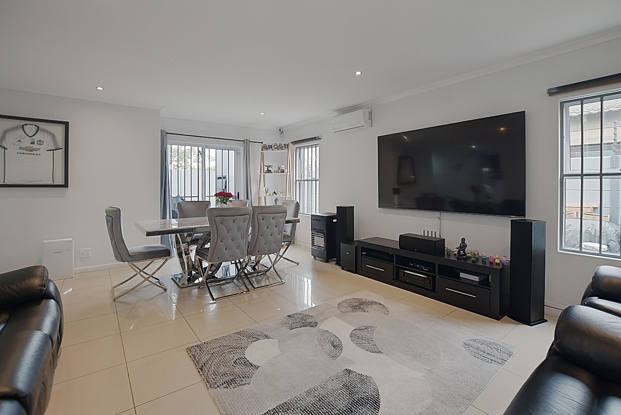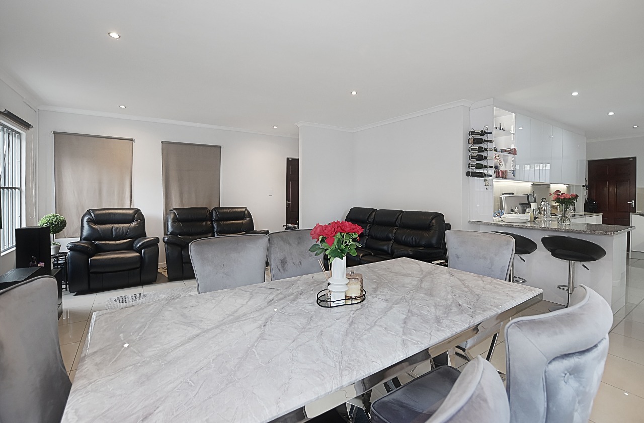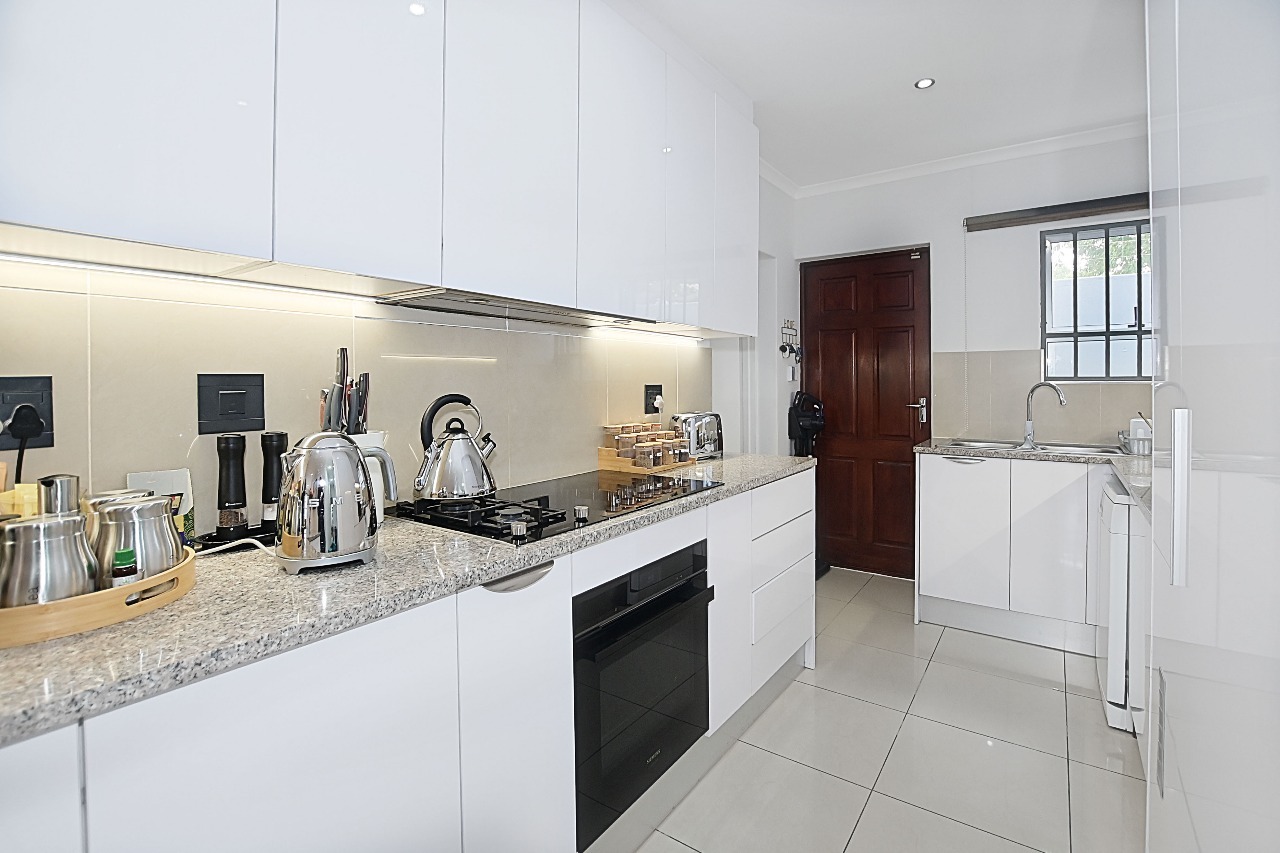 This modern and well-maintained 3-bedroom, 2-bathroom home offers comfort, style, and practical living. The open-plan kitchen is fitted with sleek white wrapped cupboards, a gas and electric hob, and a built-in fridge.
