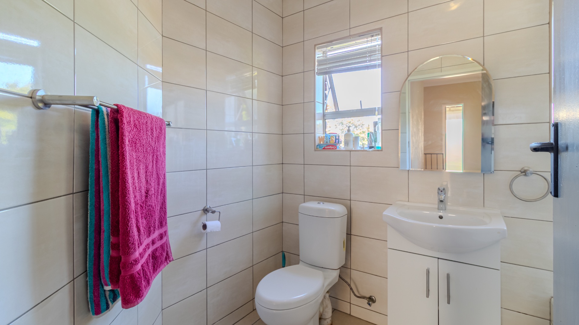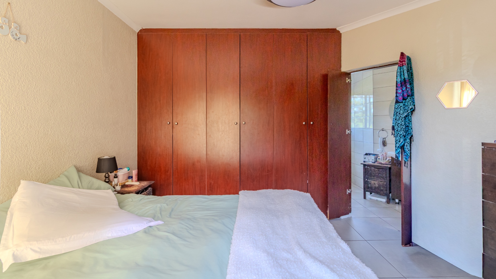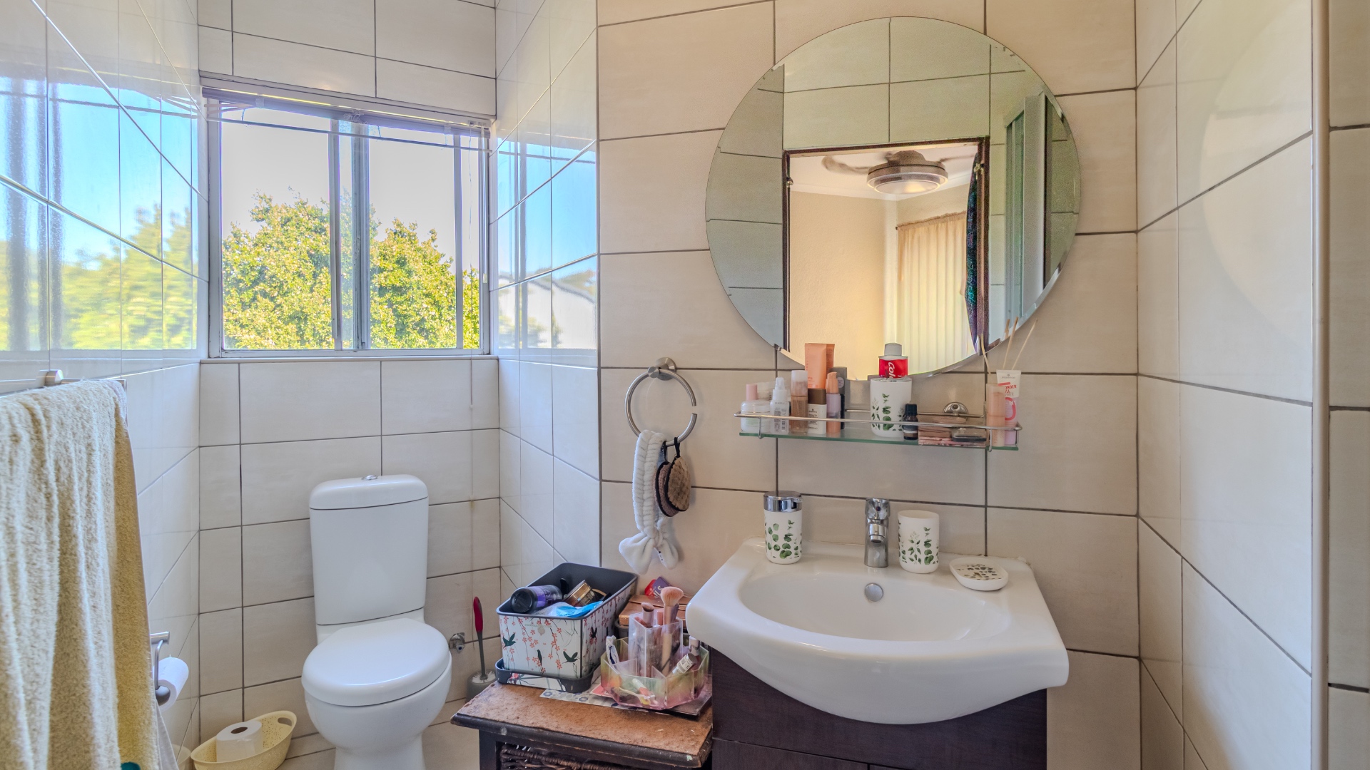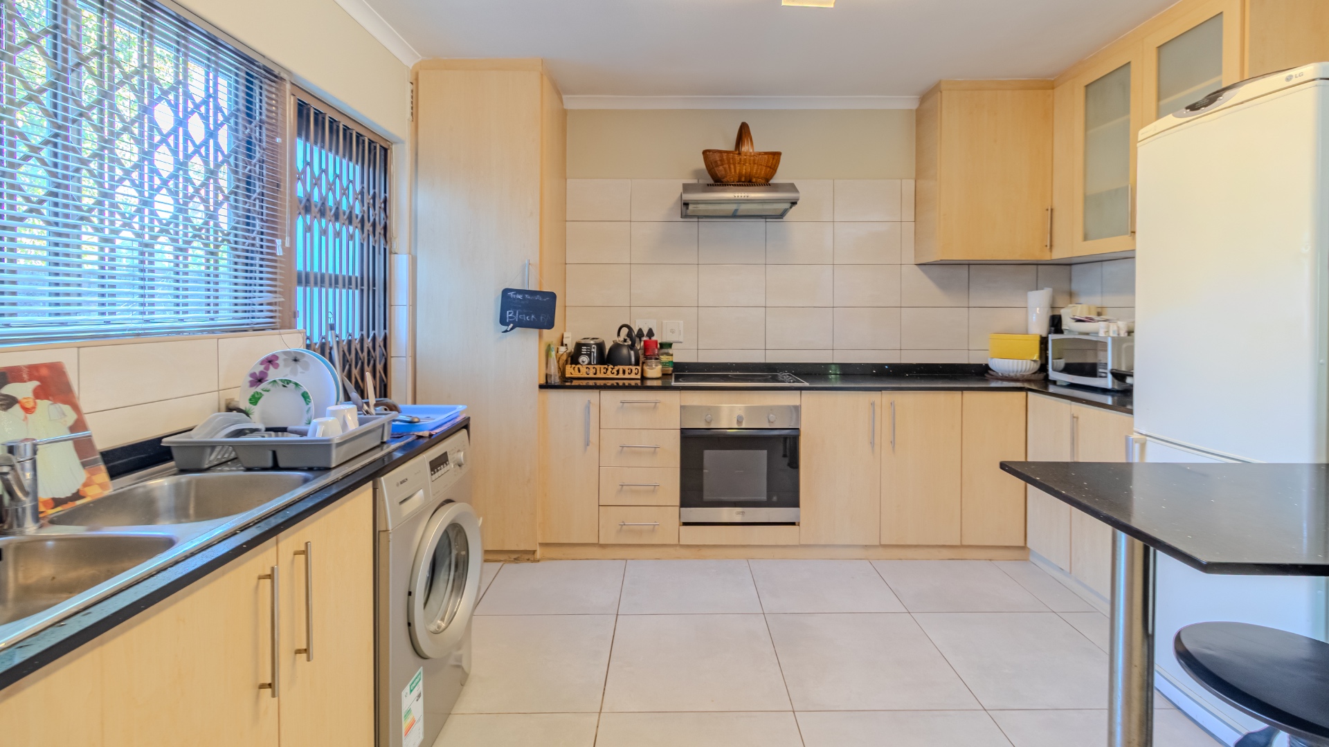 One of only three units in a secure complex, this double-storey home features three bedrooms upstairs. The main bedroom includes built-in cupboards, tiled flooring, a private balcony and an en-suite bathroom. The second and third bedrooms are fitted with built-in cupboards and laminated flooring, and they share a second bathroom equipped with a bath and shower. A convenient guest bathroom is located on the lower level, right by the front door and entertainment.