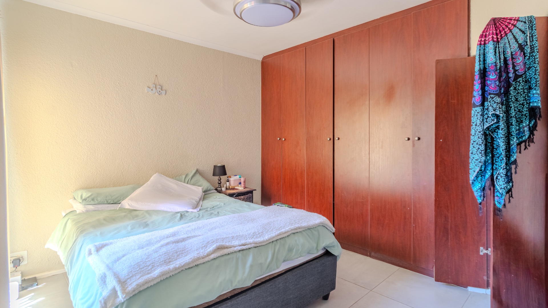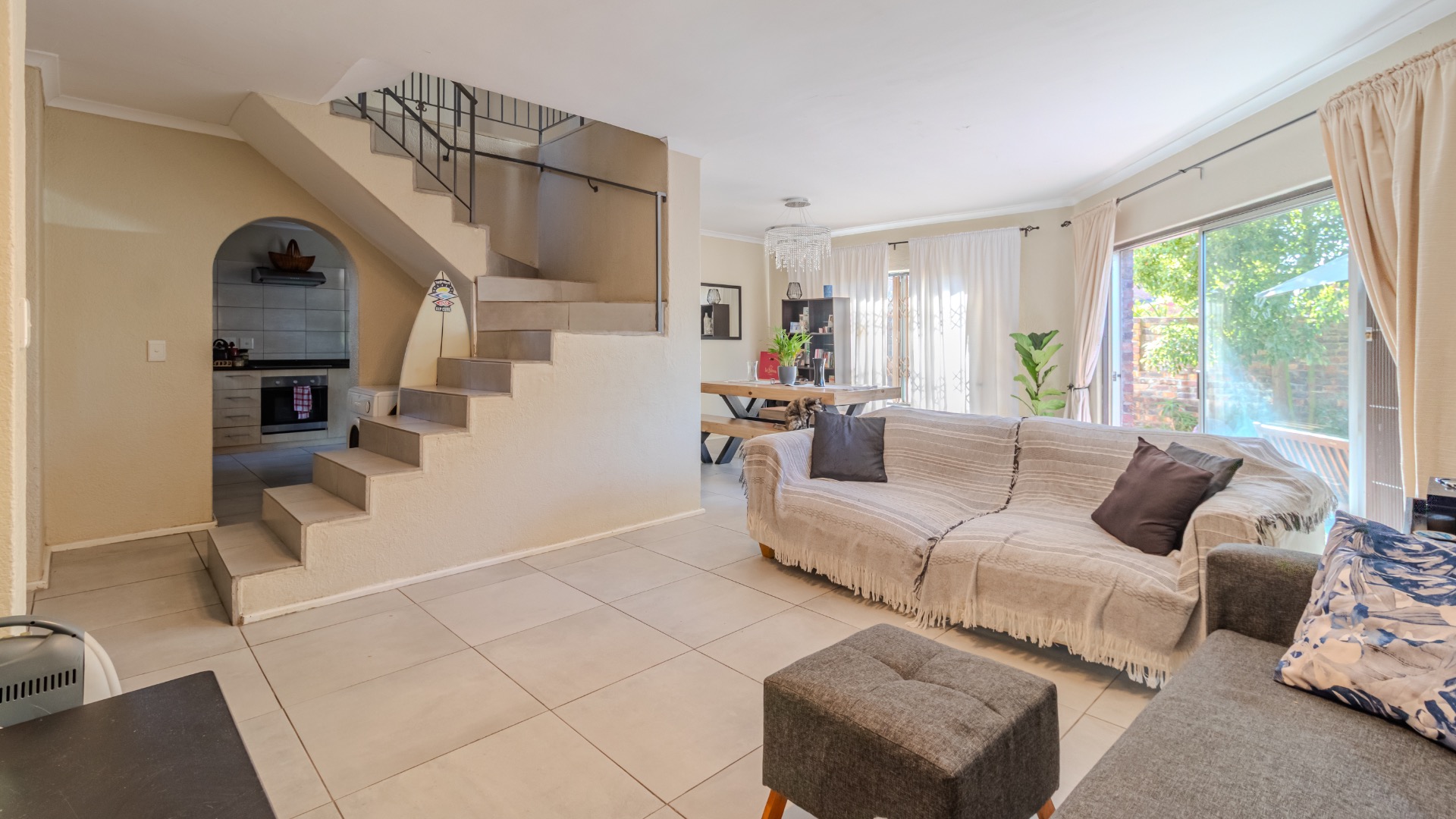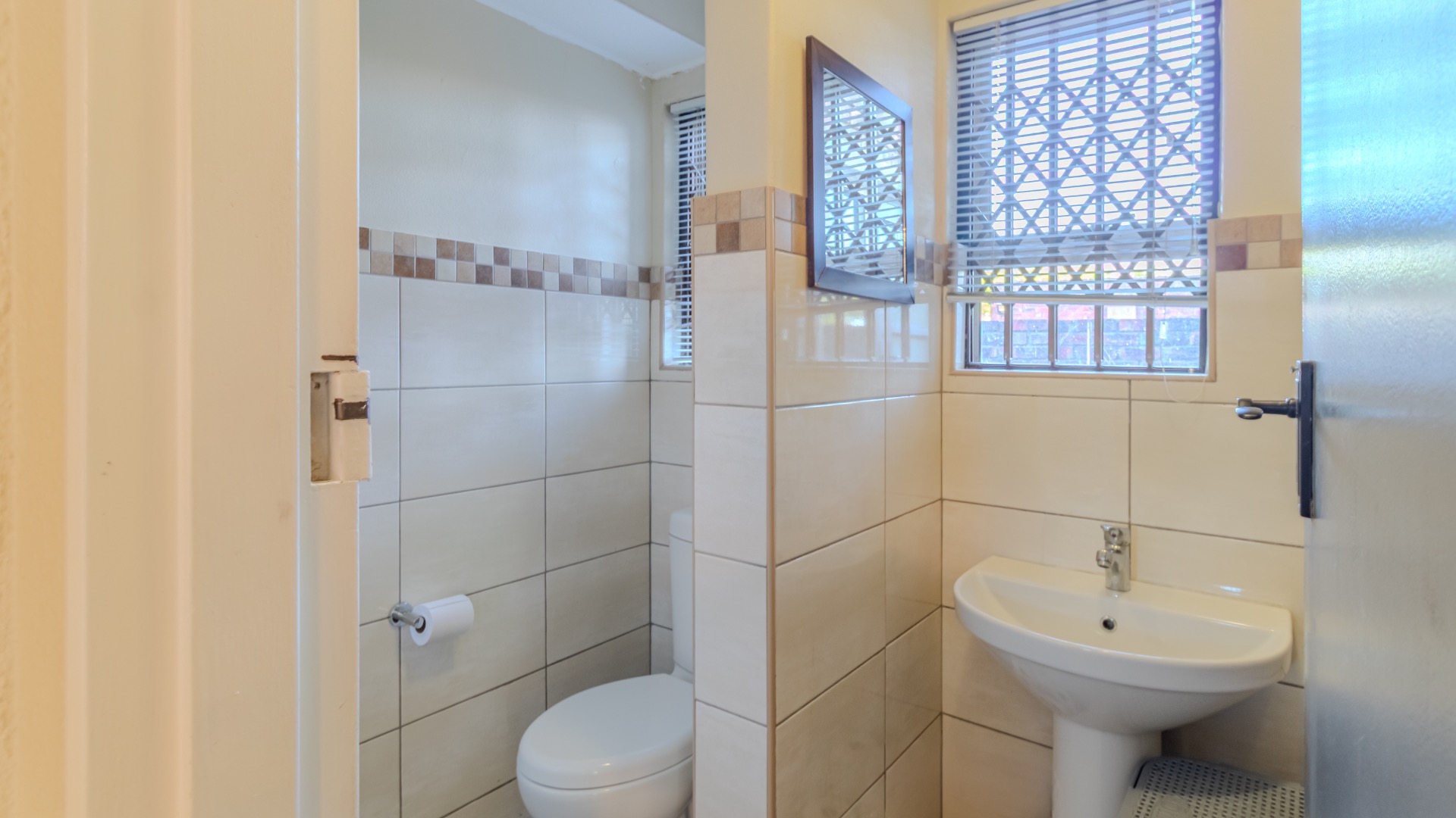 One of only three units in a secure complex, this double-storey home features three bedrooms upstairs. The main bedroom includes built-in cupboards, tiled flooring, a private balcony and an en-suite bathroom. The second and third bedrooms are fitted with built-in cupboards and laminated flooring, and they share a second bathroom equipped with a bath and shower. A convenient guest bathroom is located on the lower level, right by the front door and entertainment.