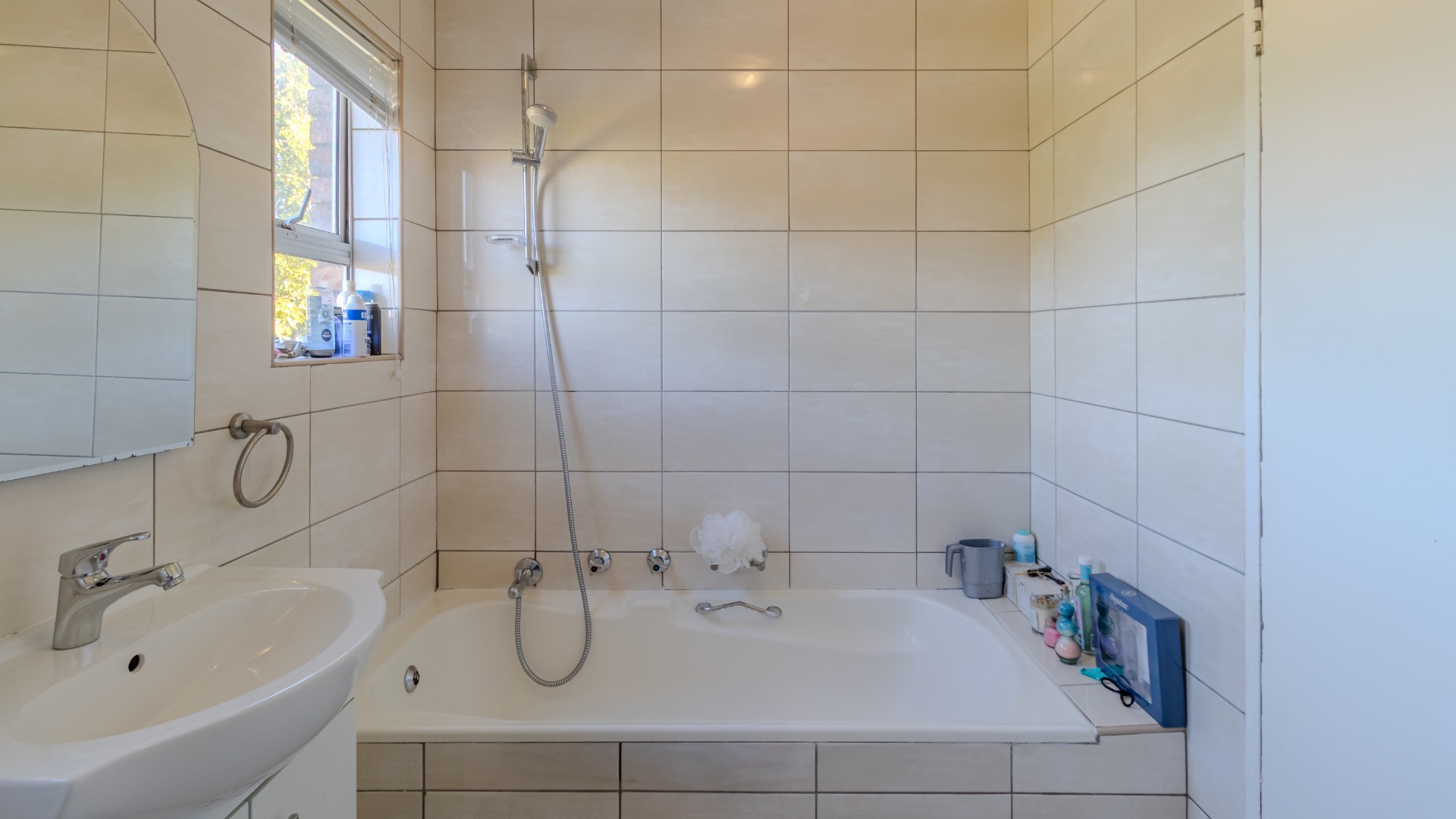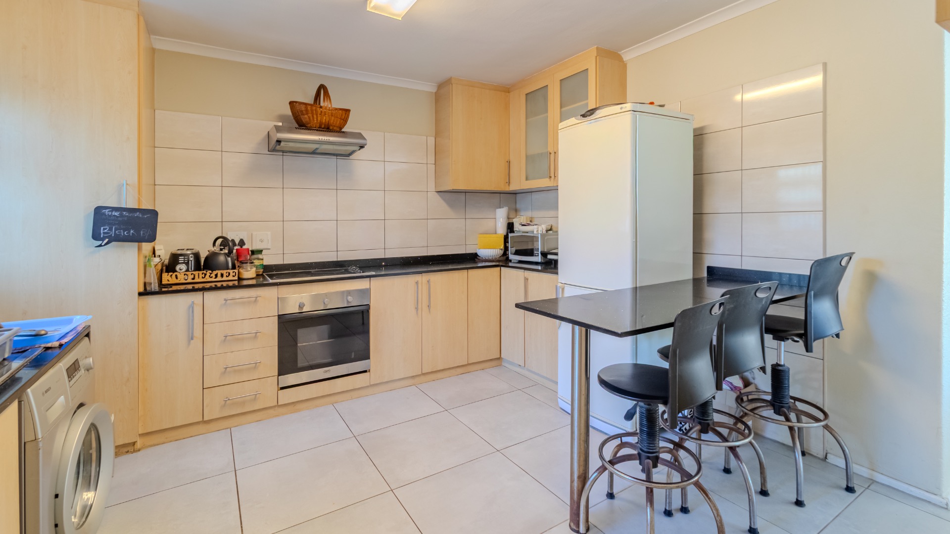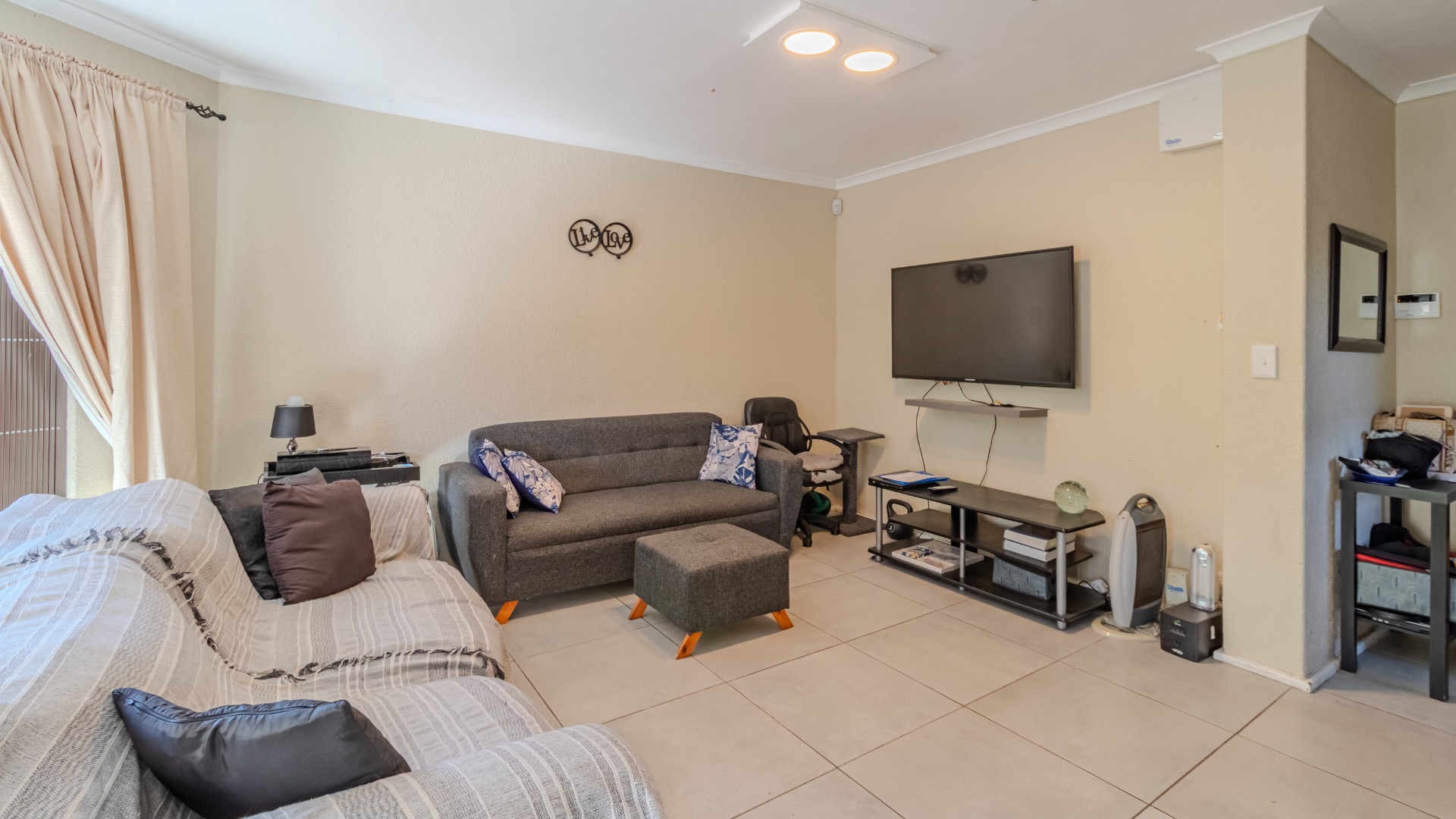 One of only three units in a secure complex, this double-storey home features three bedrooms upstairs. The main bedroom includes built-in cupboards, tiled flooring, a private balcony and an en-suite bathroom. The second and third bedrooms are fitted with built-in cupboards and laminated flooring, and they share a second bathroom equipped with a bath and shower. A convenient guest bathroom is located on the lower level, right by the front door and entertainment.
