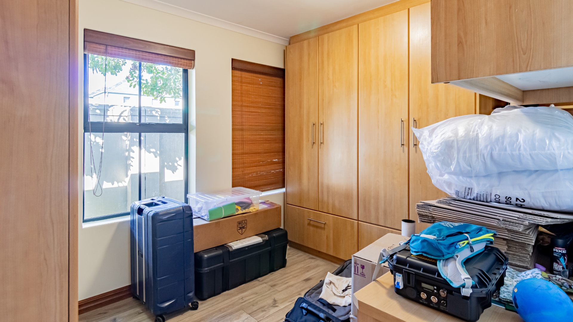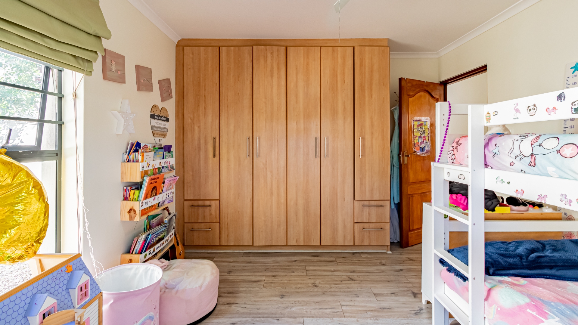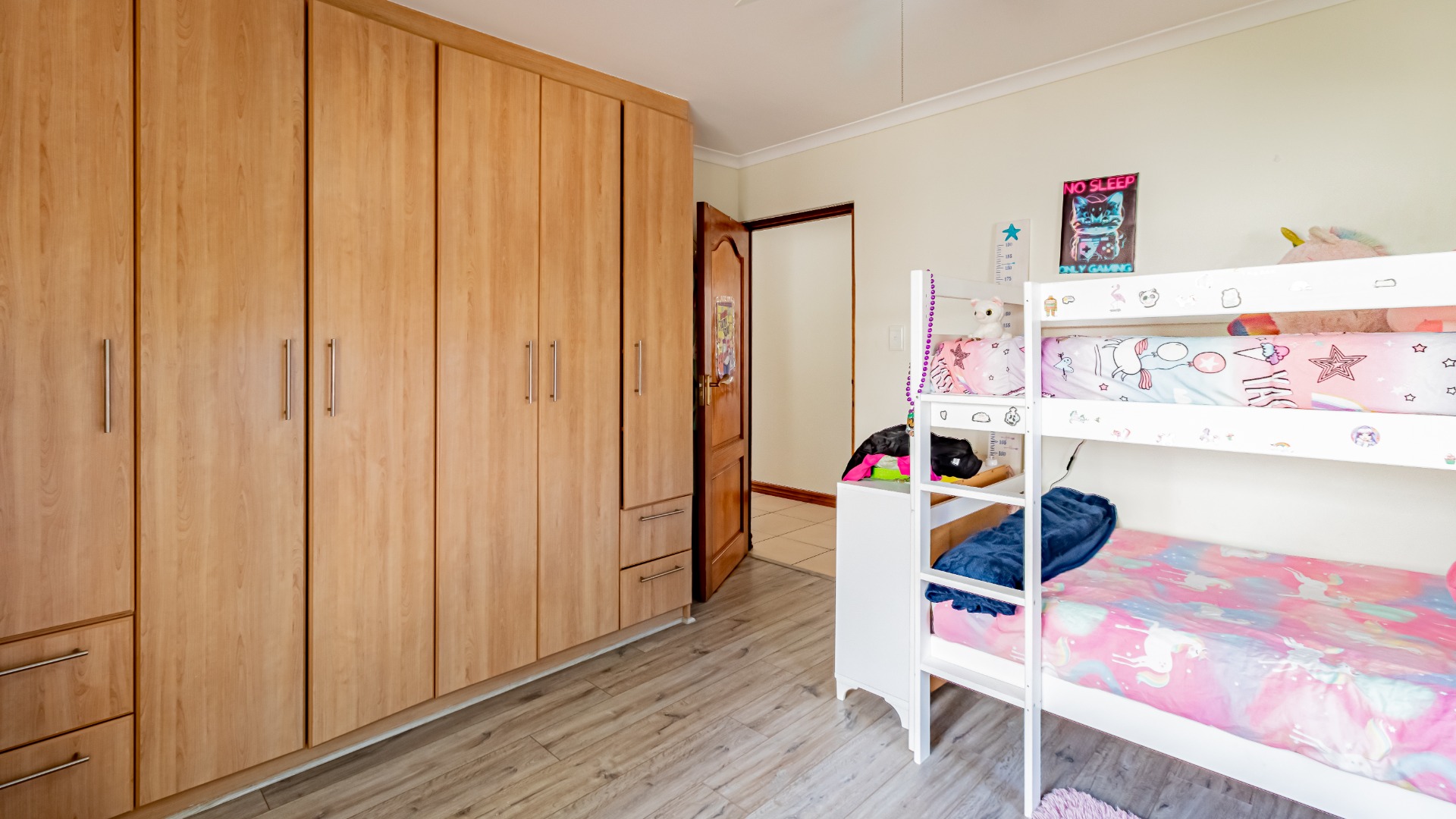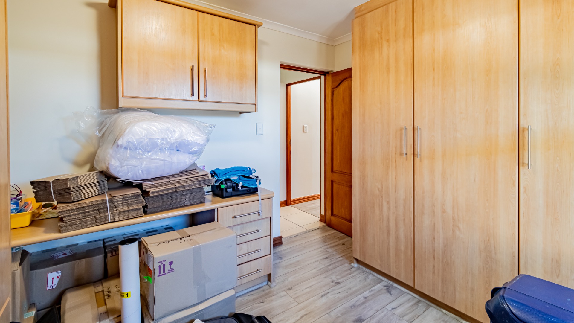 The other bedroom downstairs (4th) also has built in cupboards. The 5th can be used as a study or a smaller bedroom. There is a bedroom upstairs which can be a guest bedroom.