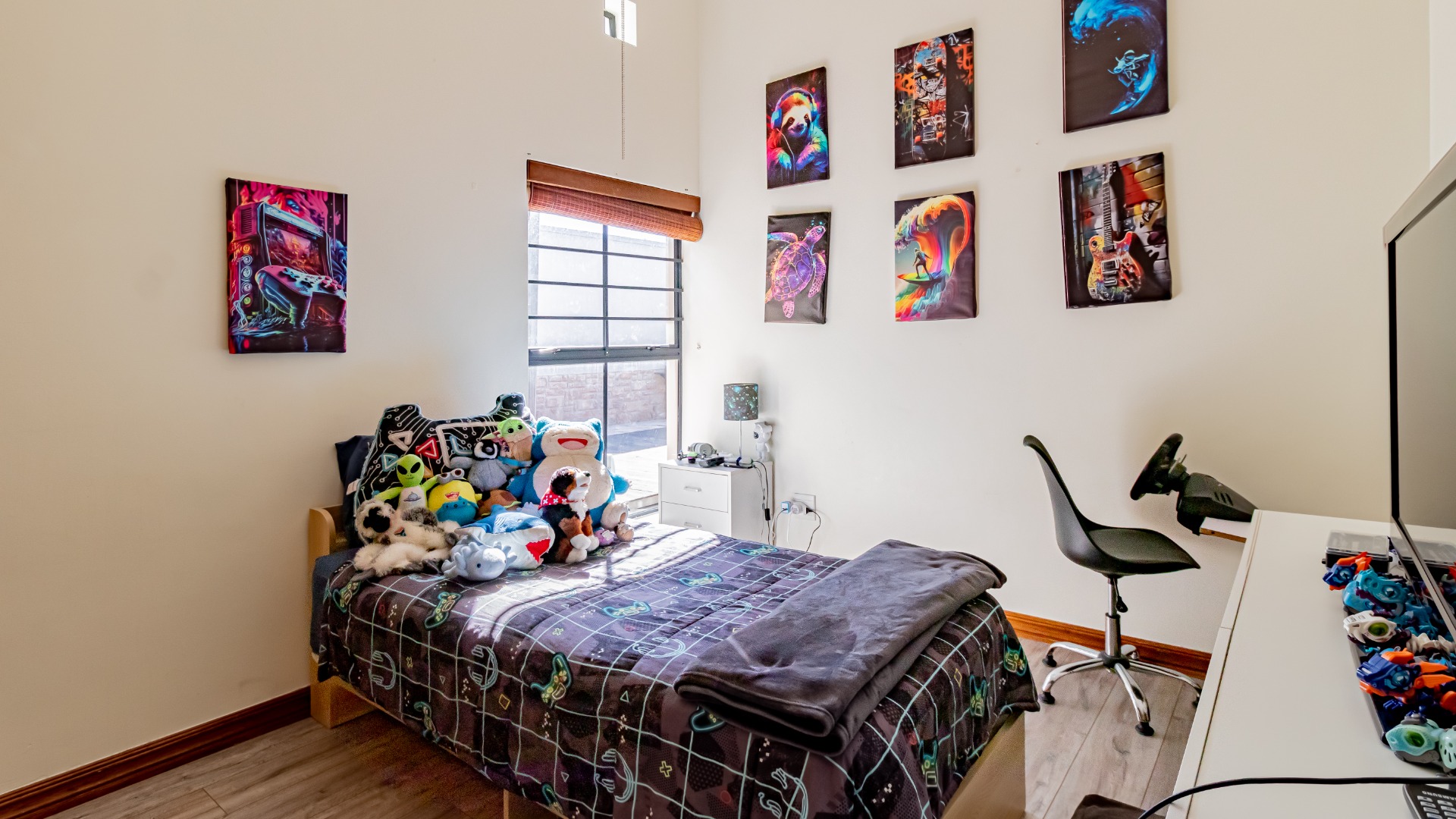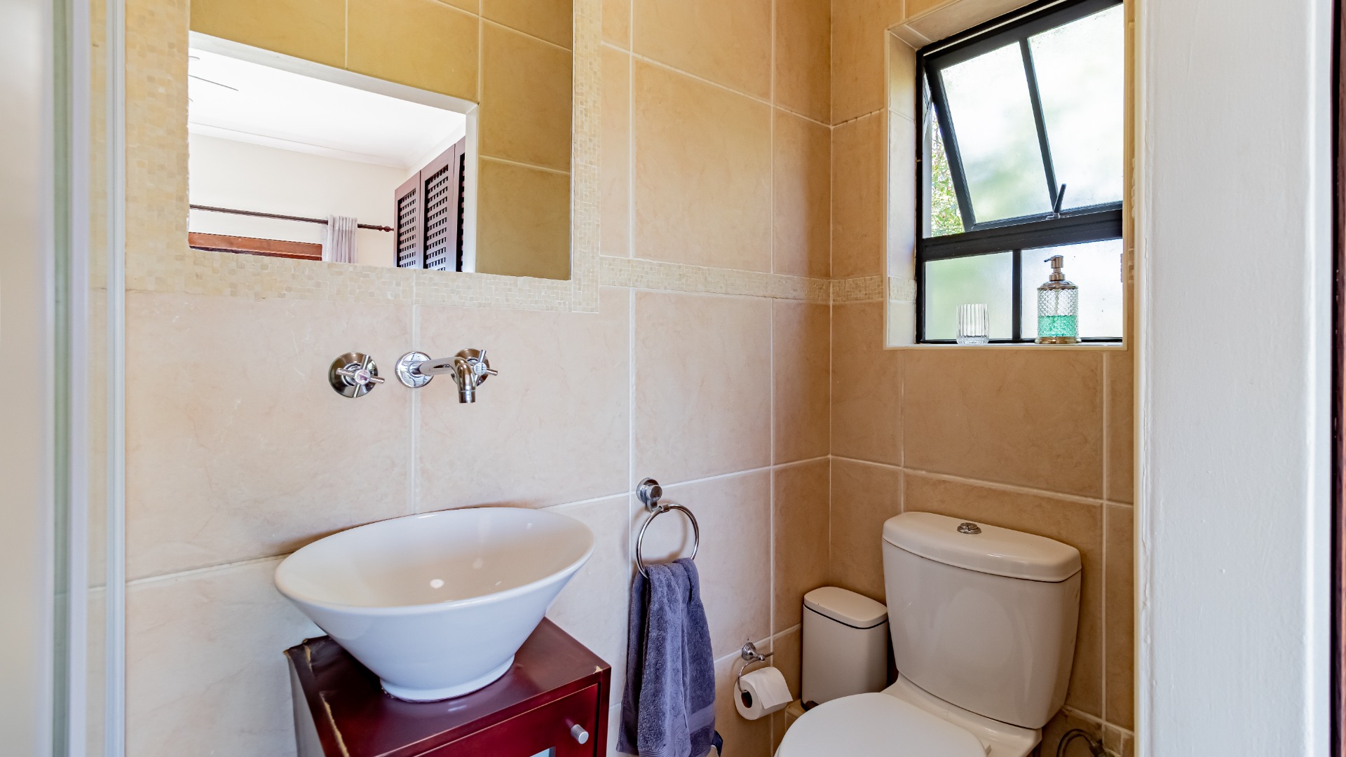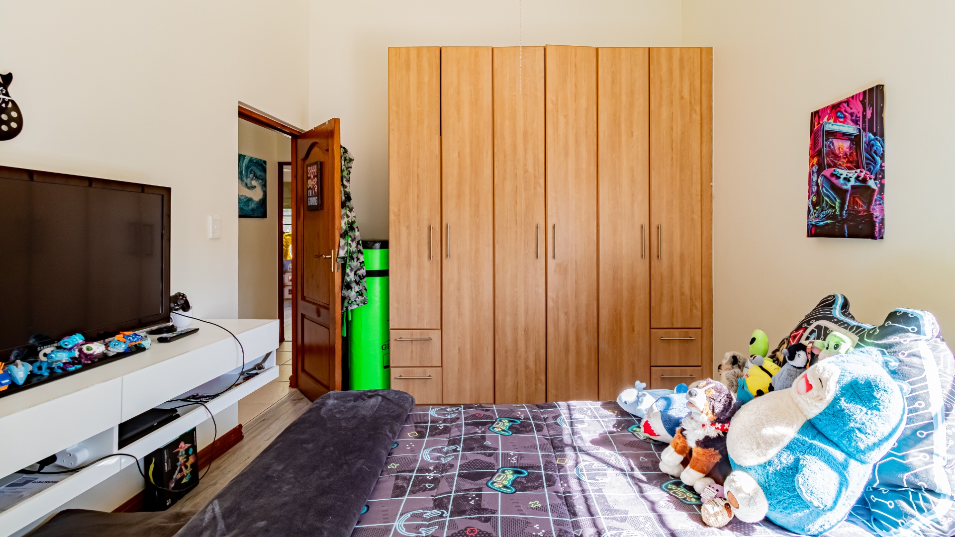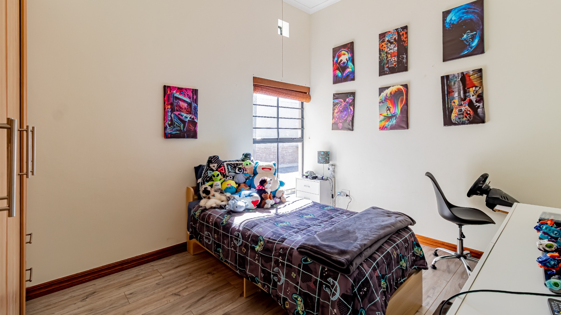 The other bedroom downstairs (4th) also has built in cupboards. The 5th can be used as a study or a smaller bedroom. There is a bedroom upstairs which can be a guest bedroom.
