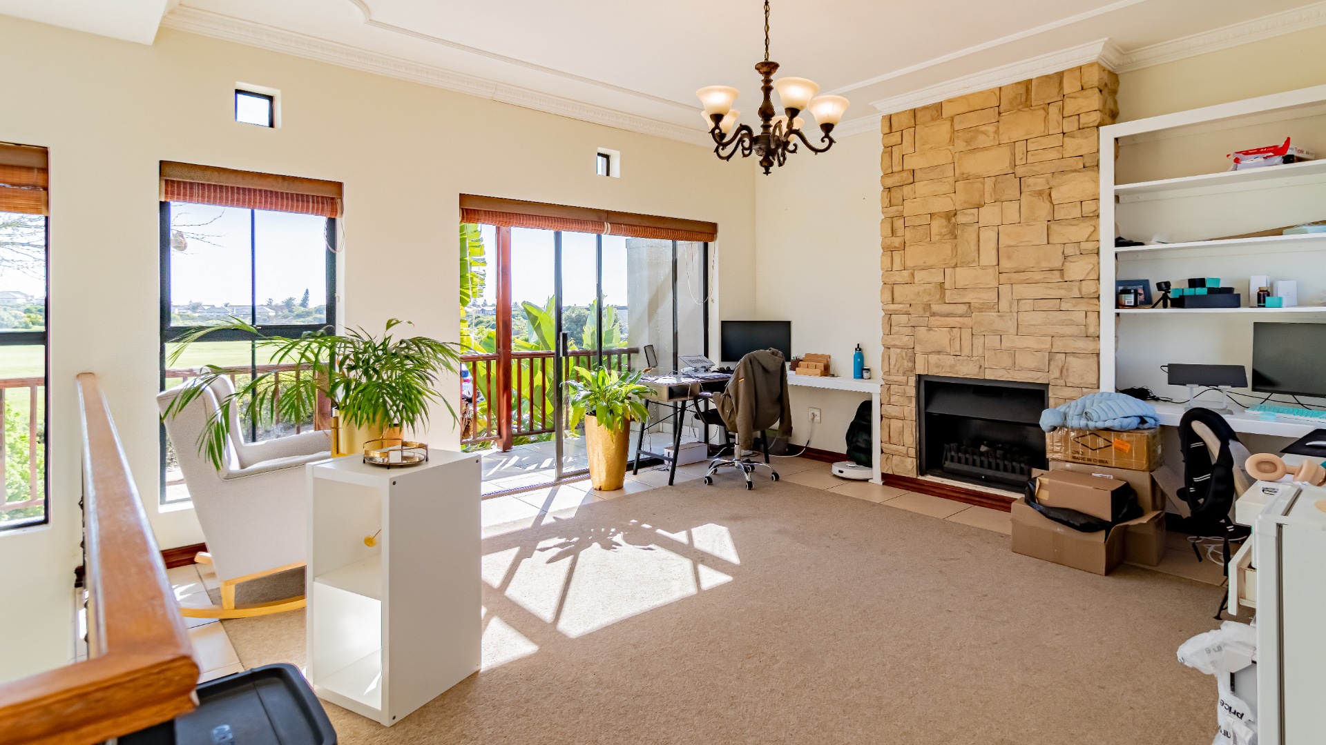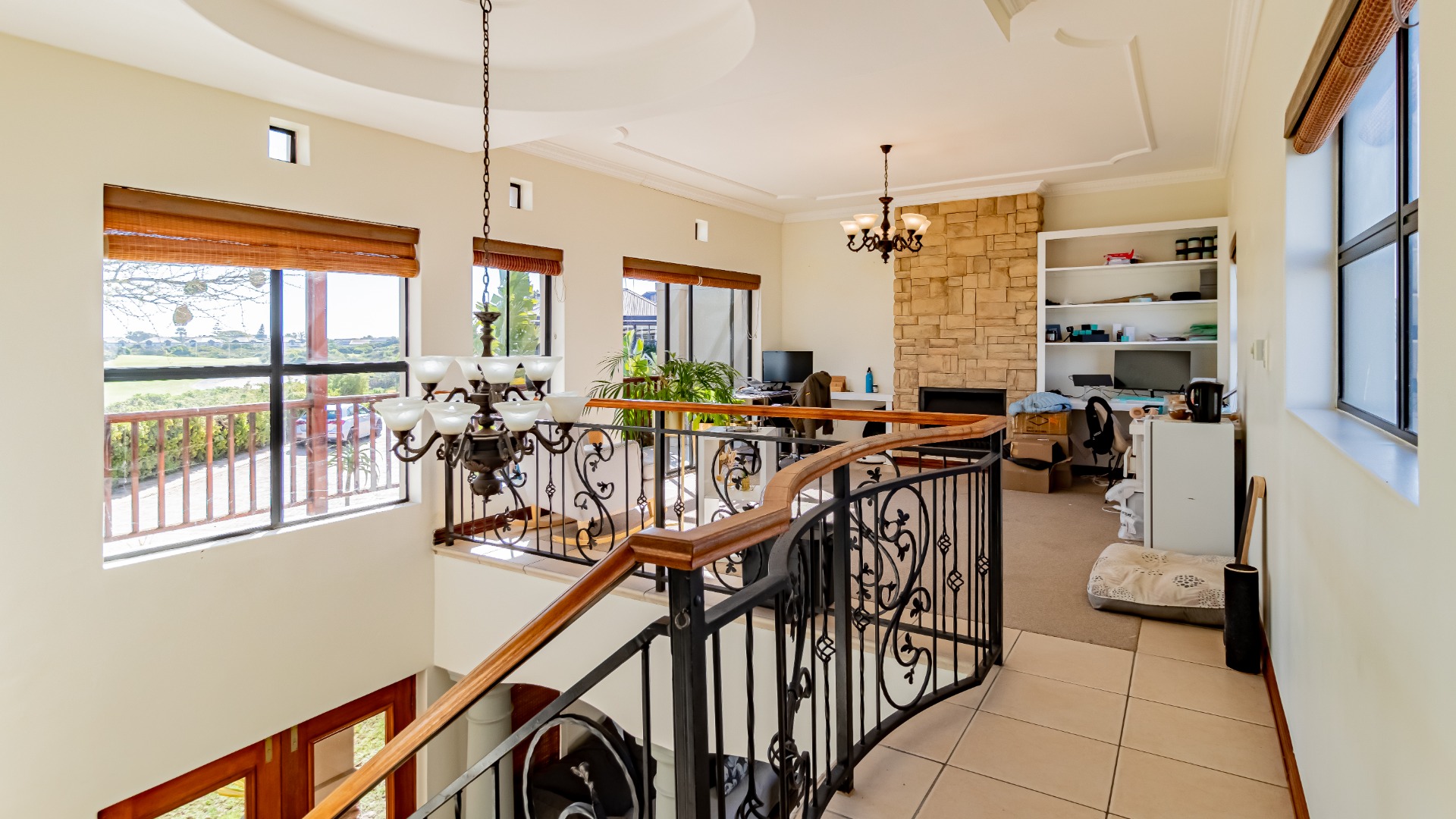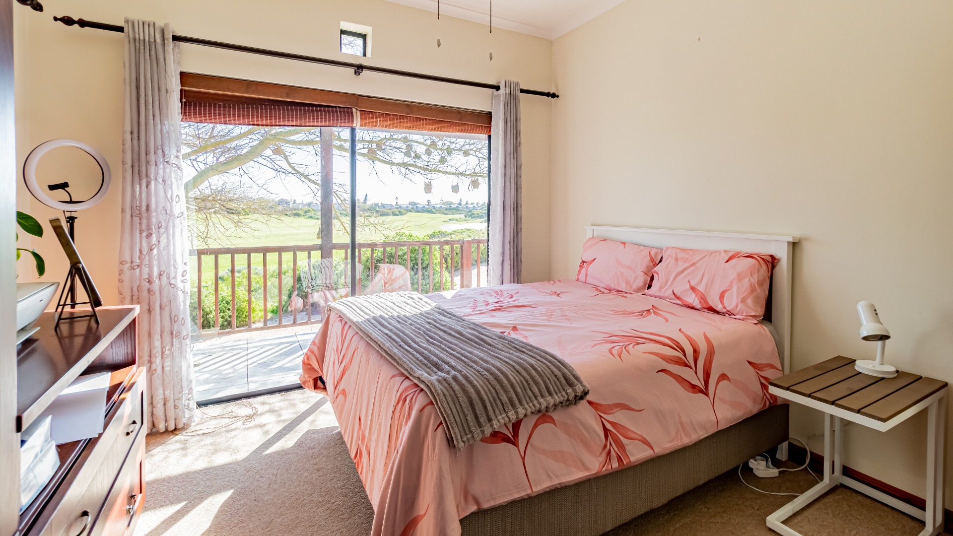 Upstairs is a family lounge with a gas fireplace and a large balcony that leads off the guest room and lounge area. Beautiful views across the fairways and lovely sunset evenings.
