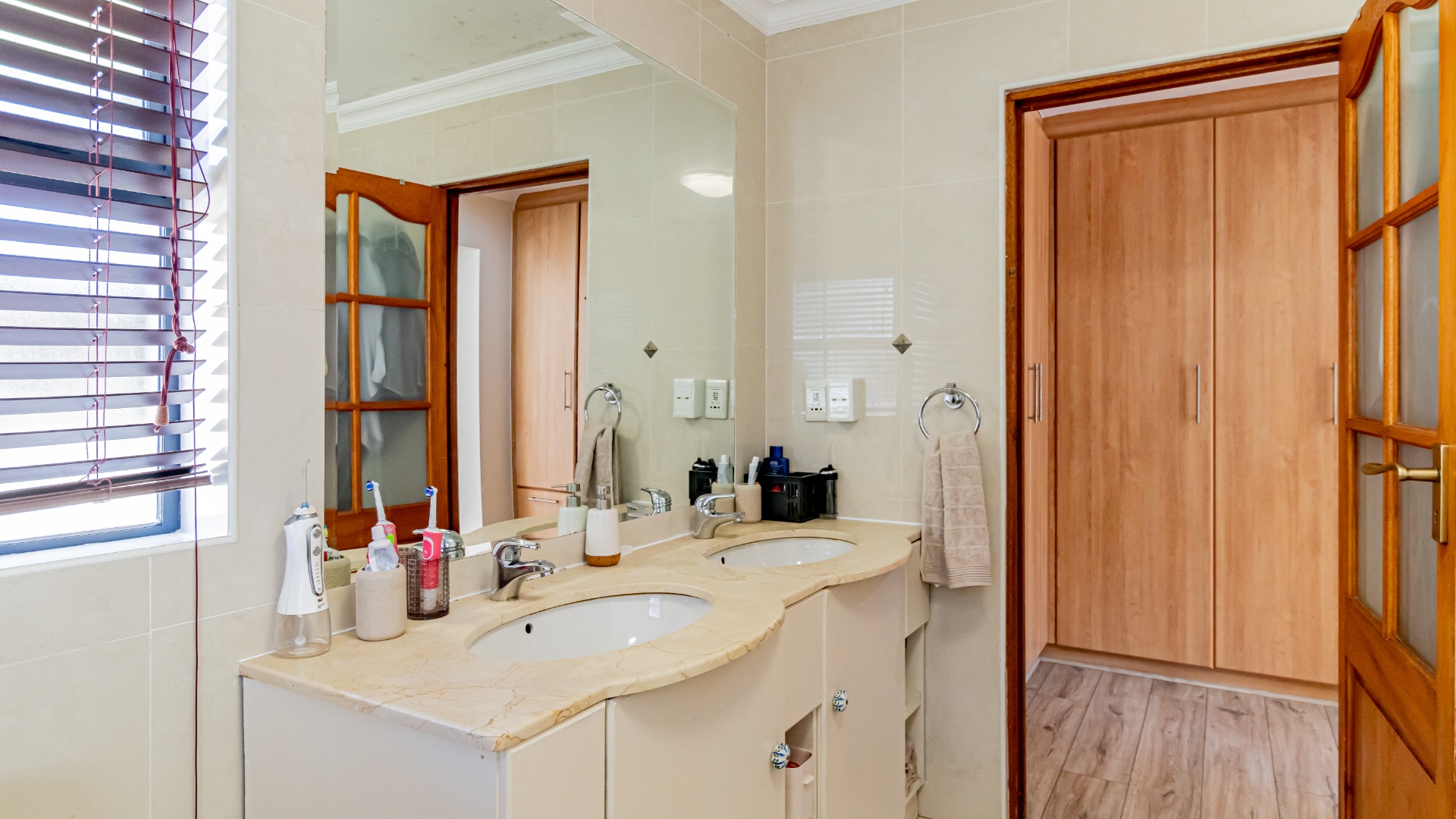 4 Spacious bedrooms, 2 bedrooms have en-suite bathrooms. The 2 other bedrooms share a full family bathroom. The main bedroom has a separate dressing area with ample built in cupboards. A Large en-suite too!