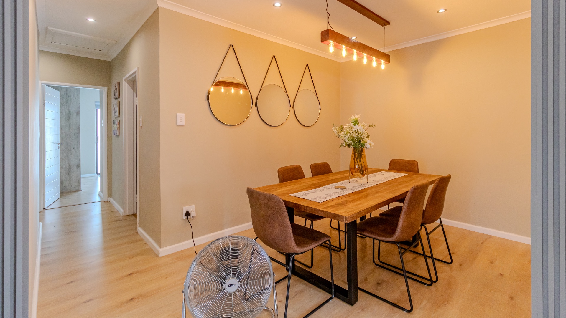 - Dining table and chairs, fridge and mirrors included,