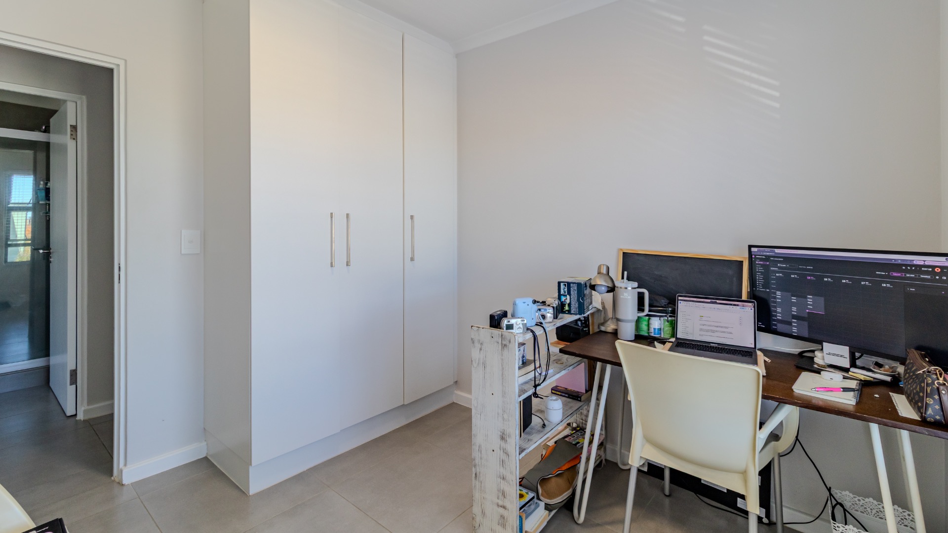 Both bedrooms include built-in cupboards, and the bathroom is neatly finished with both a bath and a shower.